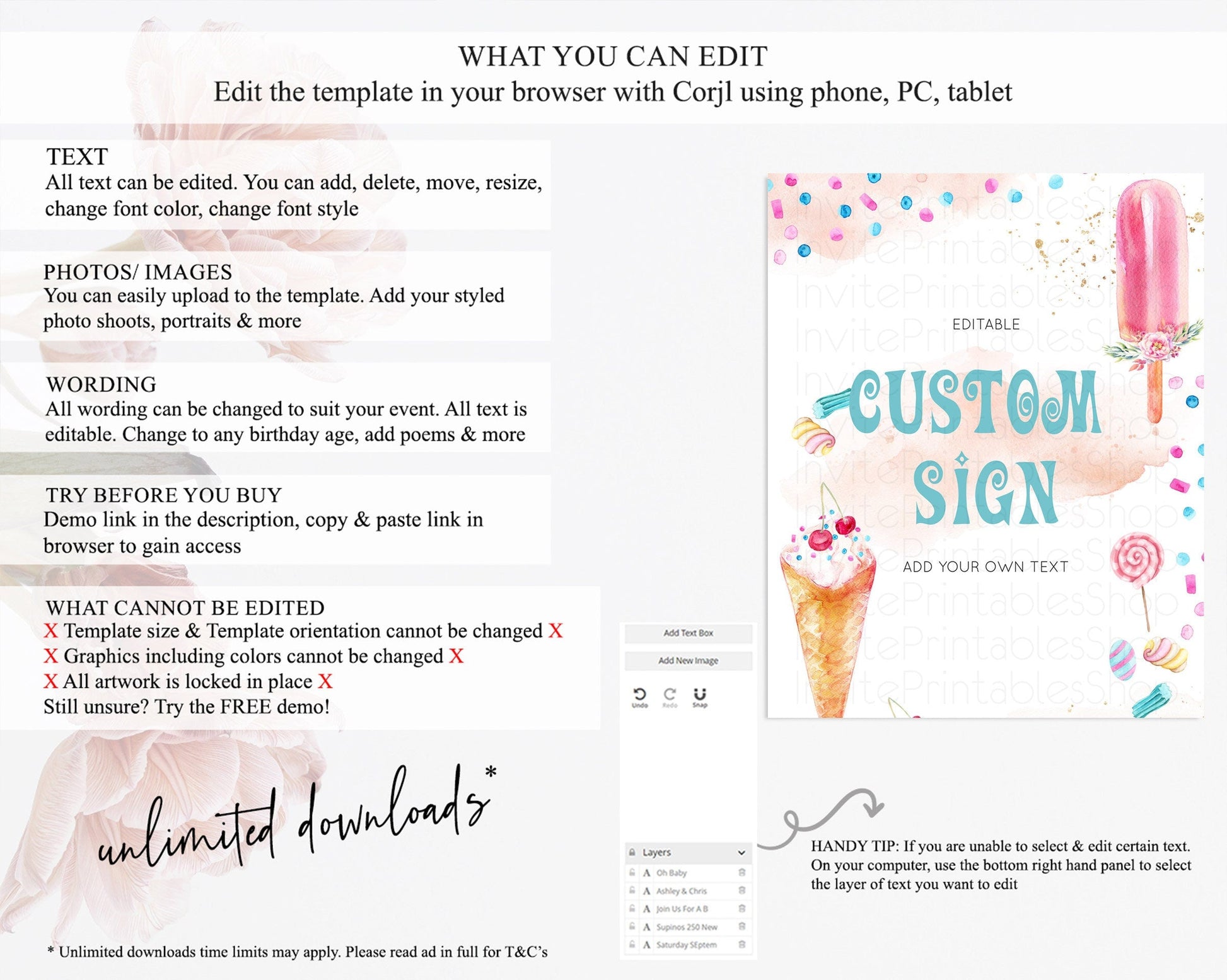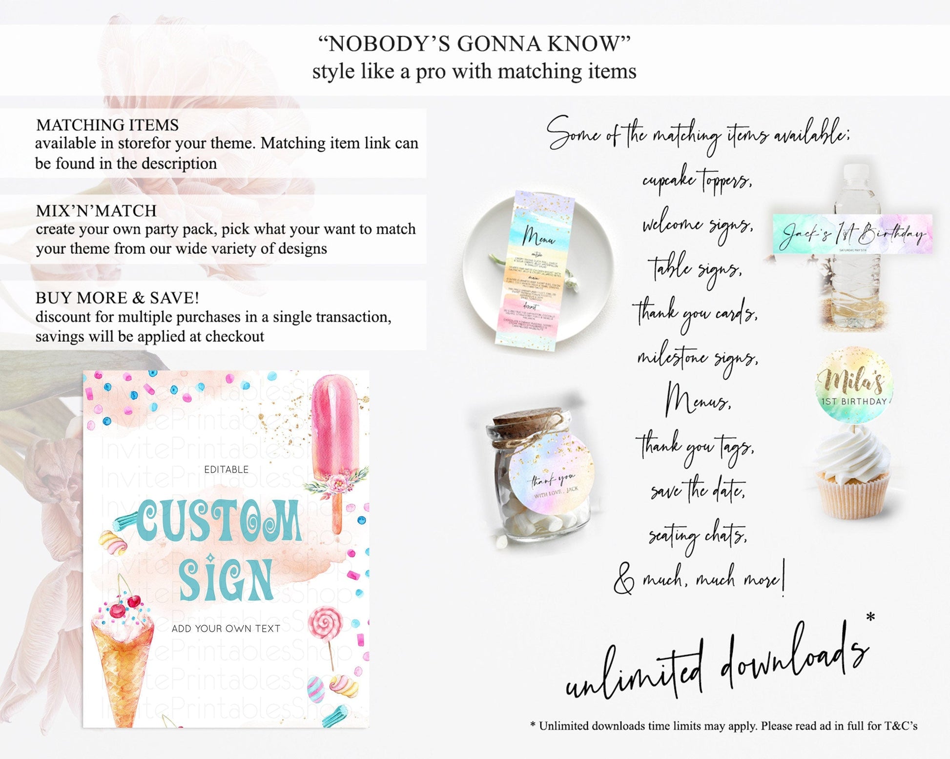 Ice Cream Sign Template Sweet One Sign Candy Table Sign Decor Heres The Scoop Party Pastel Candy Theme Birthday Baptism Baby Shower D10554