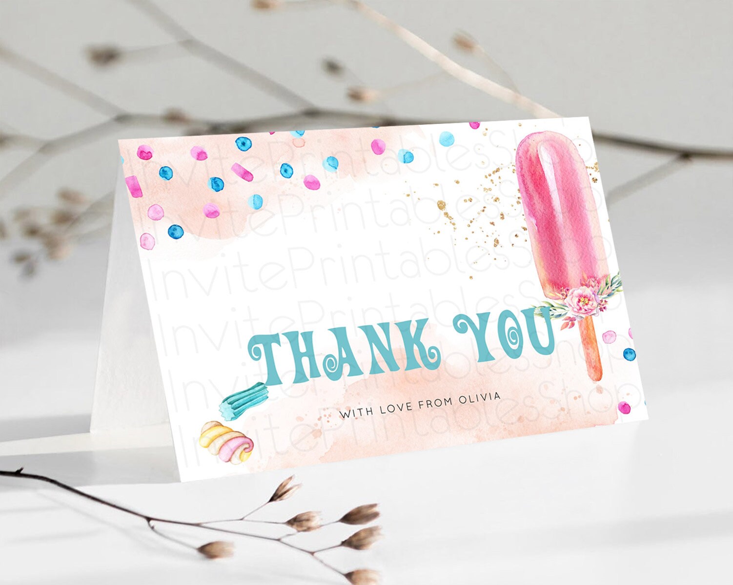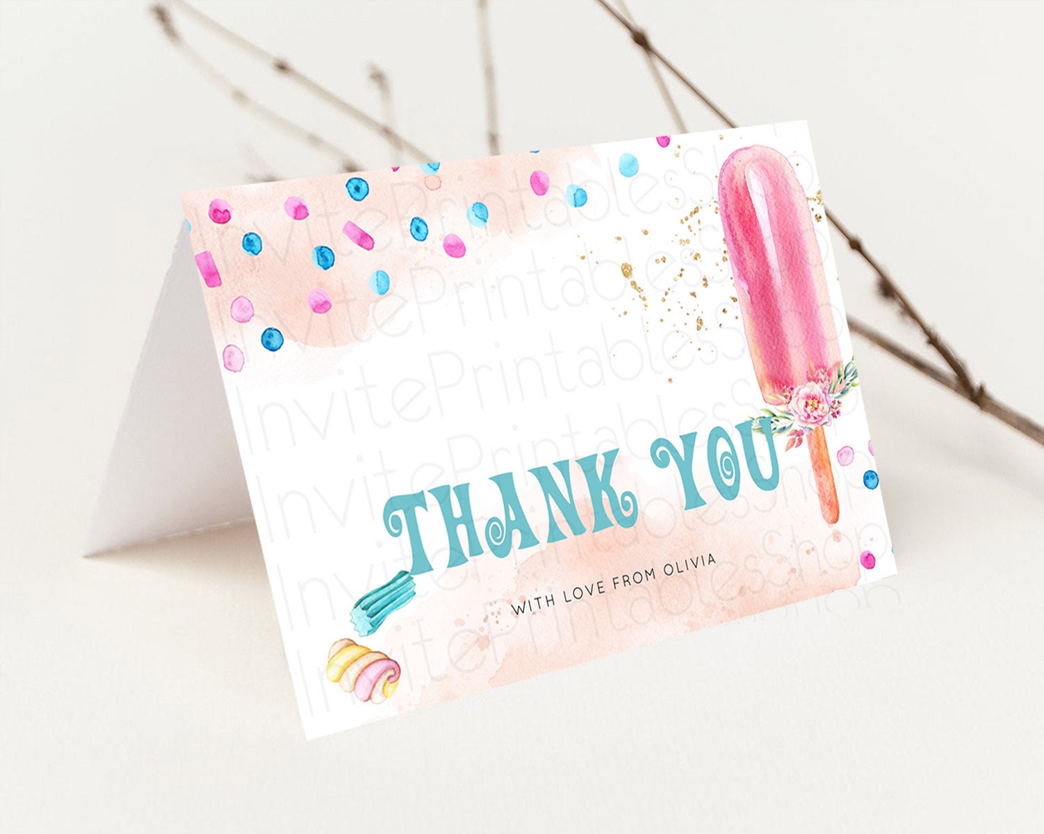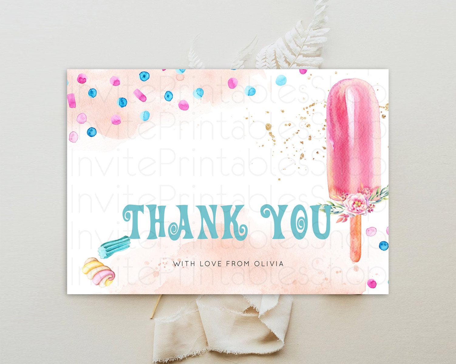 Ice Cream Thank You Sweet One Thank You Card Heres The Scoop Decor Pastel Candy Birthday Thank You Card Candy Teacher Thank You Card D10554