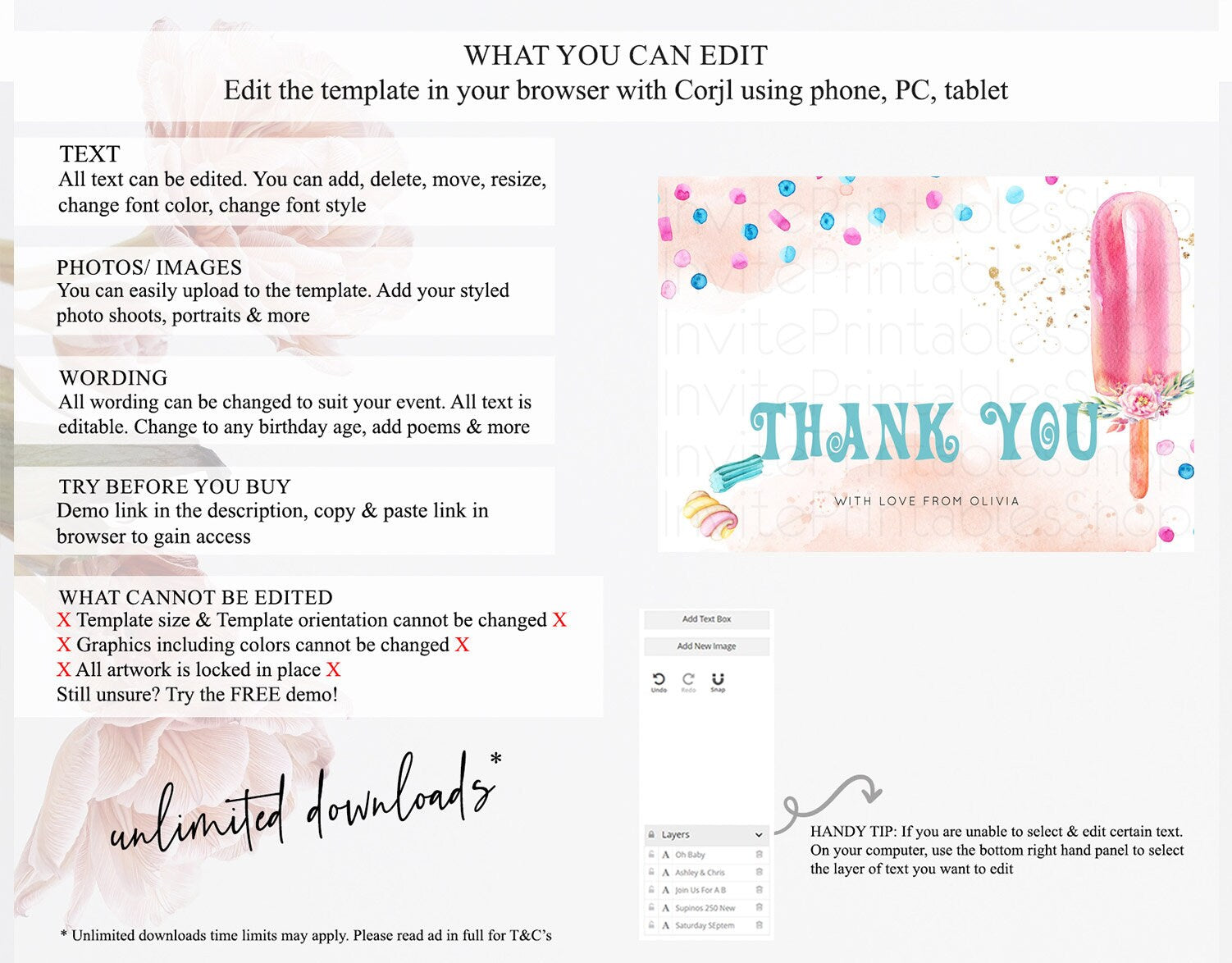 • Template size & orientation cannot be changed. Please use the demo link to confirm this product suits your needs.