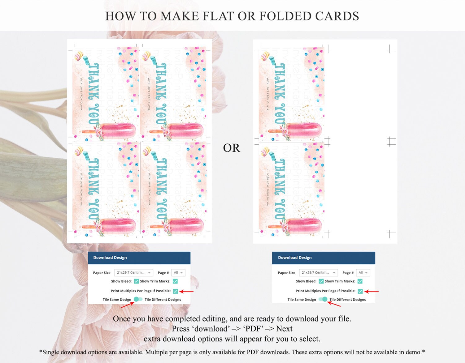 • Custom changes to artwork are not provided on existing templates.