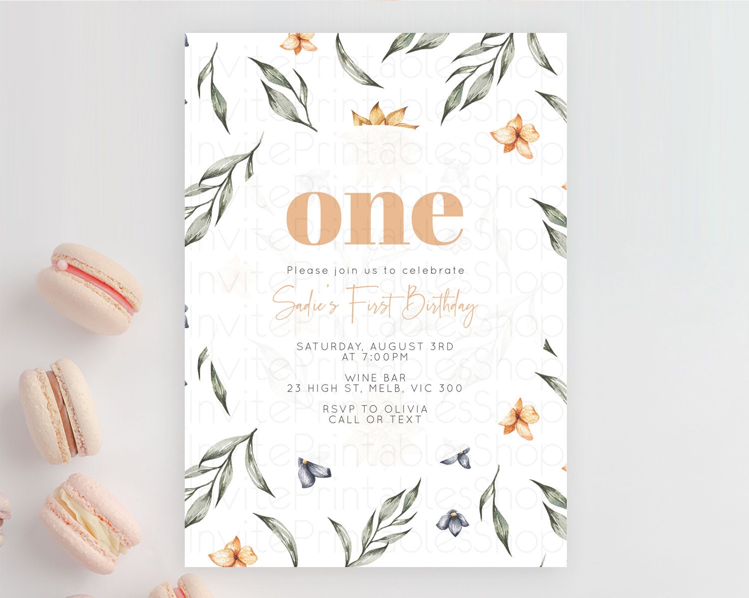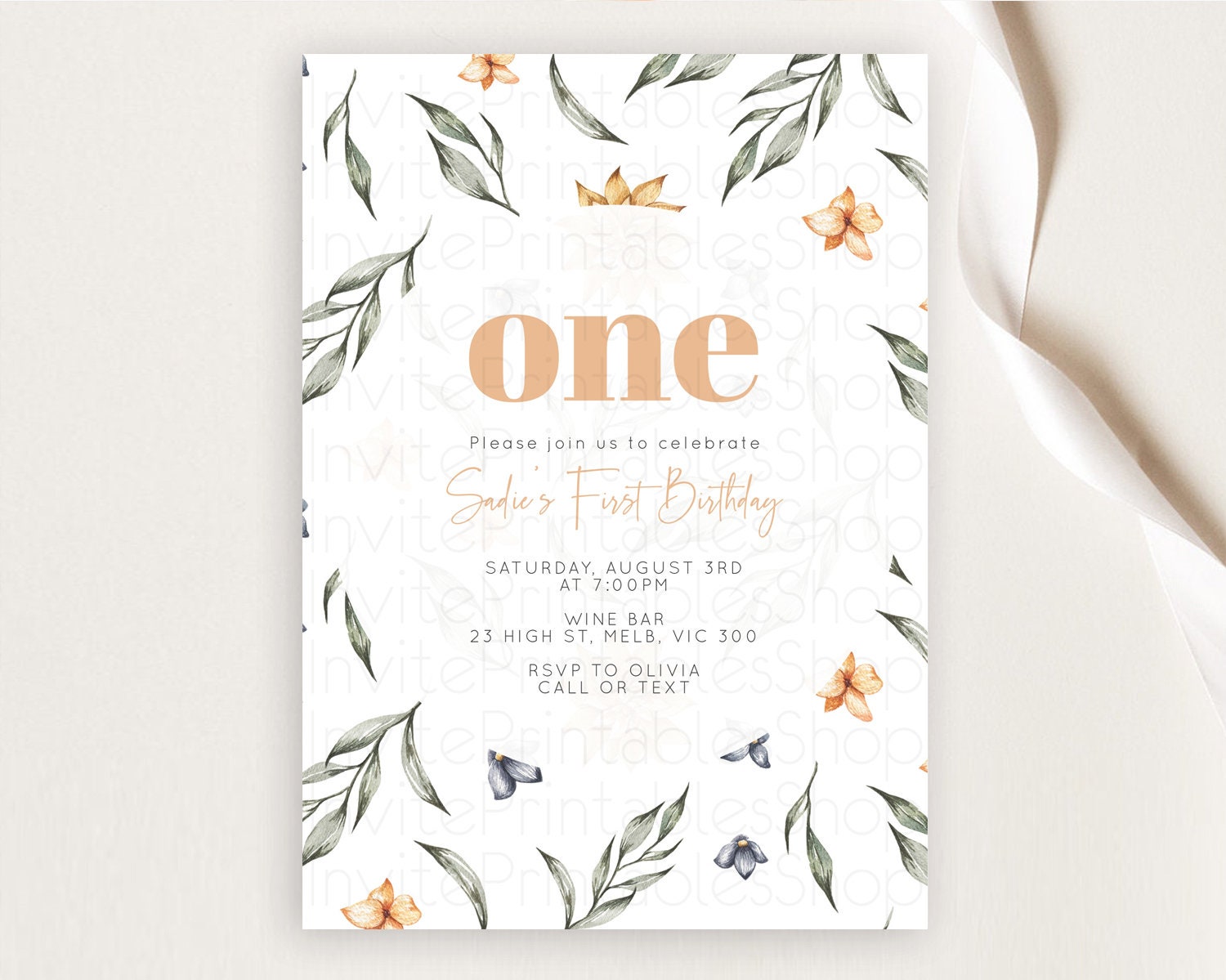 Leafy Birthday Invitation Leafy Invitation Simple Greenery Invitation Eucalyptus Fern Spray Leaves Minimal Green Leaf Watercolour D10544