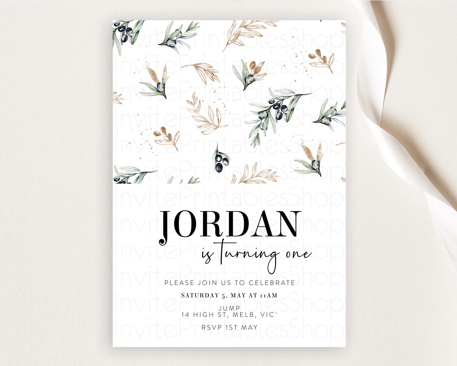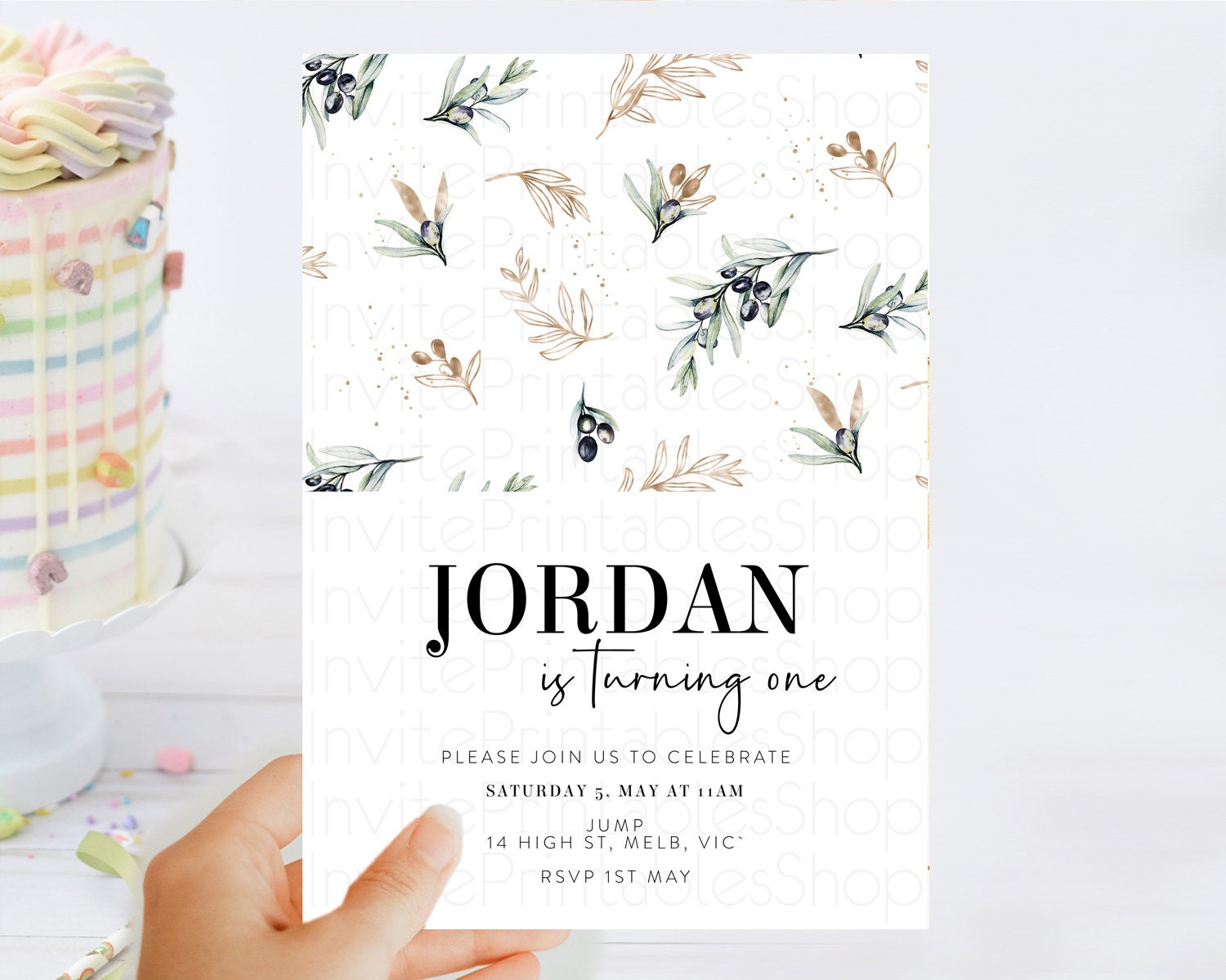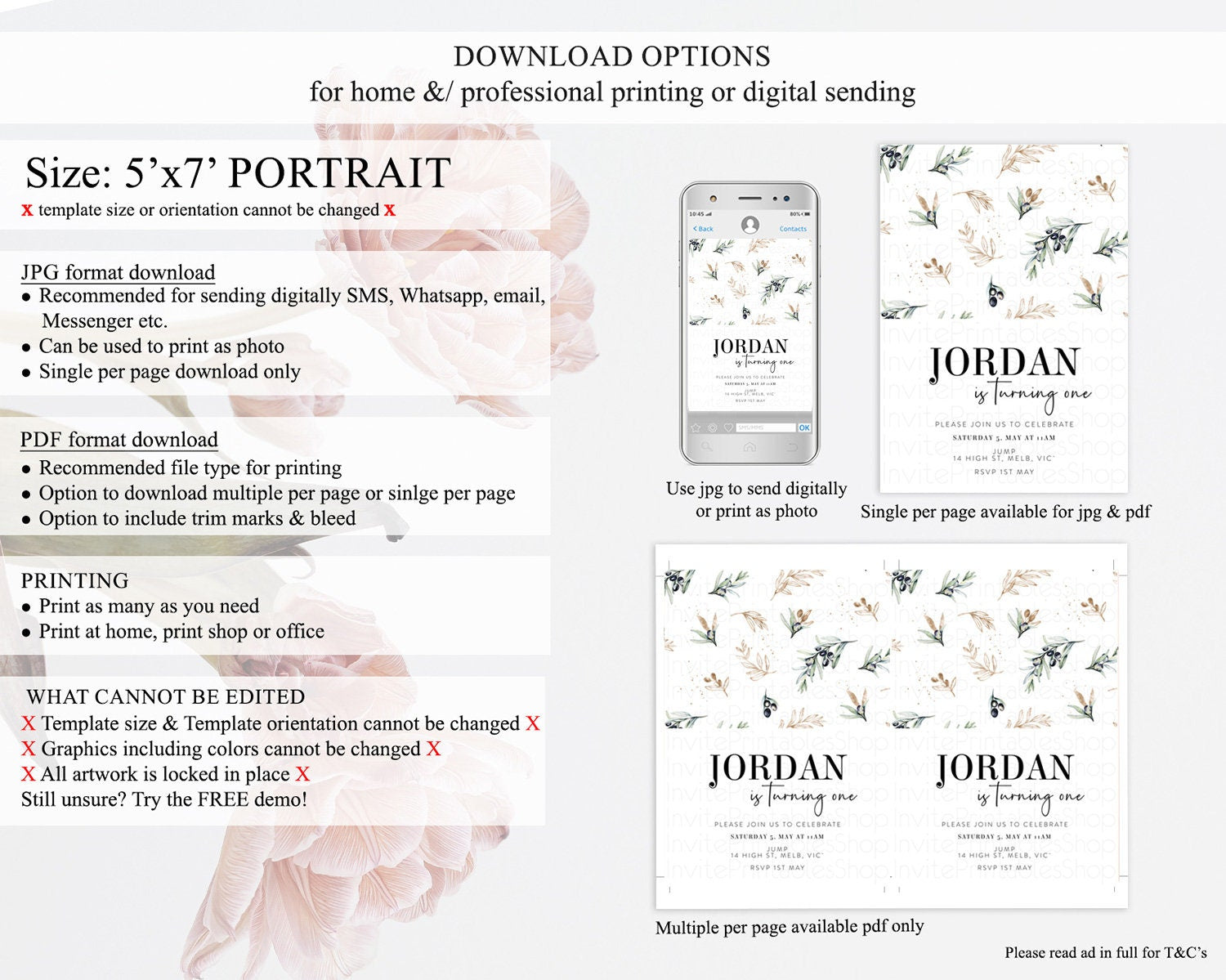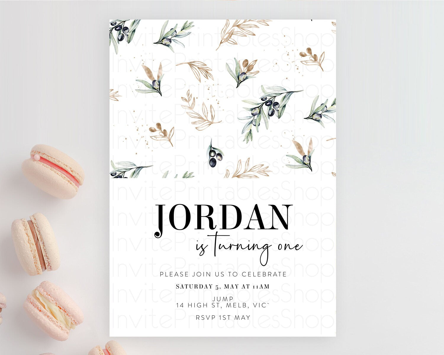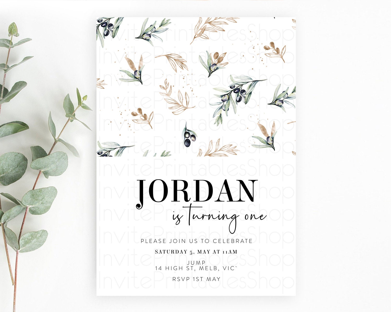 Leafy Birthday Invitation Leafy Invitation Simple Greenery Invitation Eucalyptus Fern Spray Leaves Minimal Green Leaf Watercolour D11055
