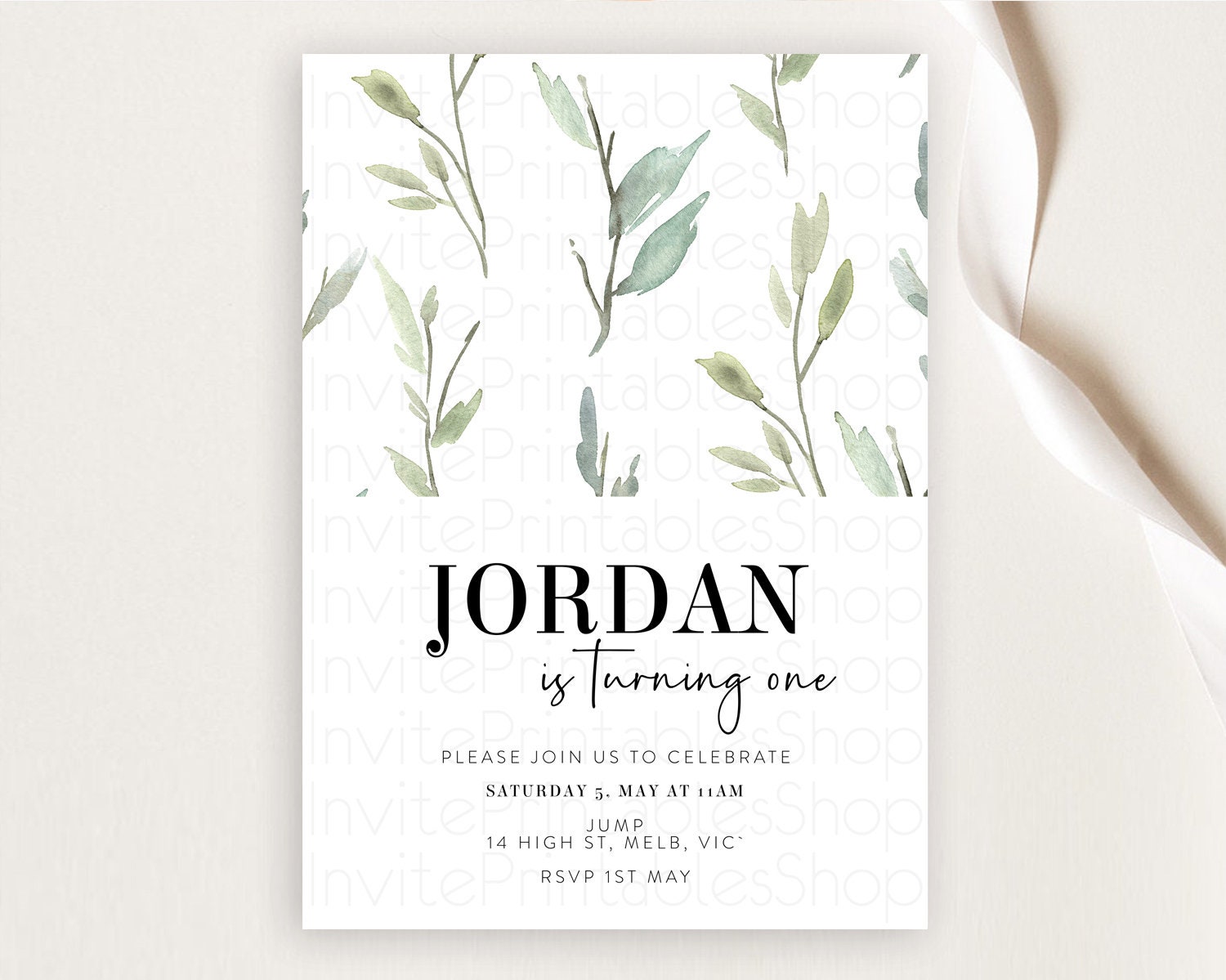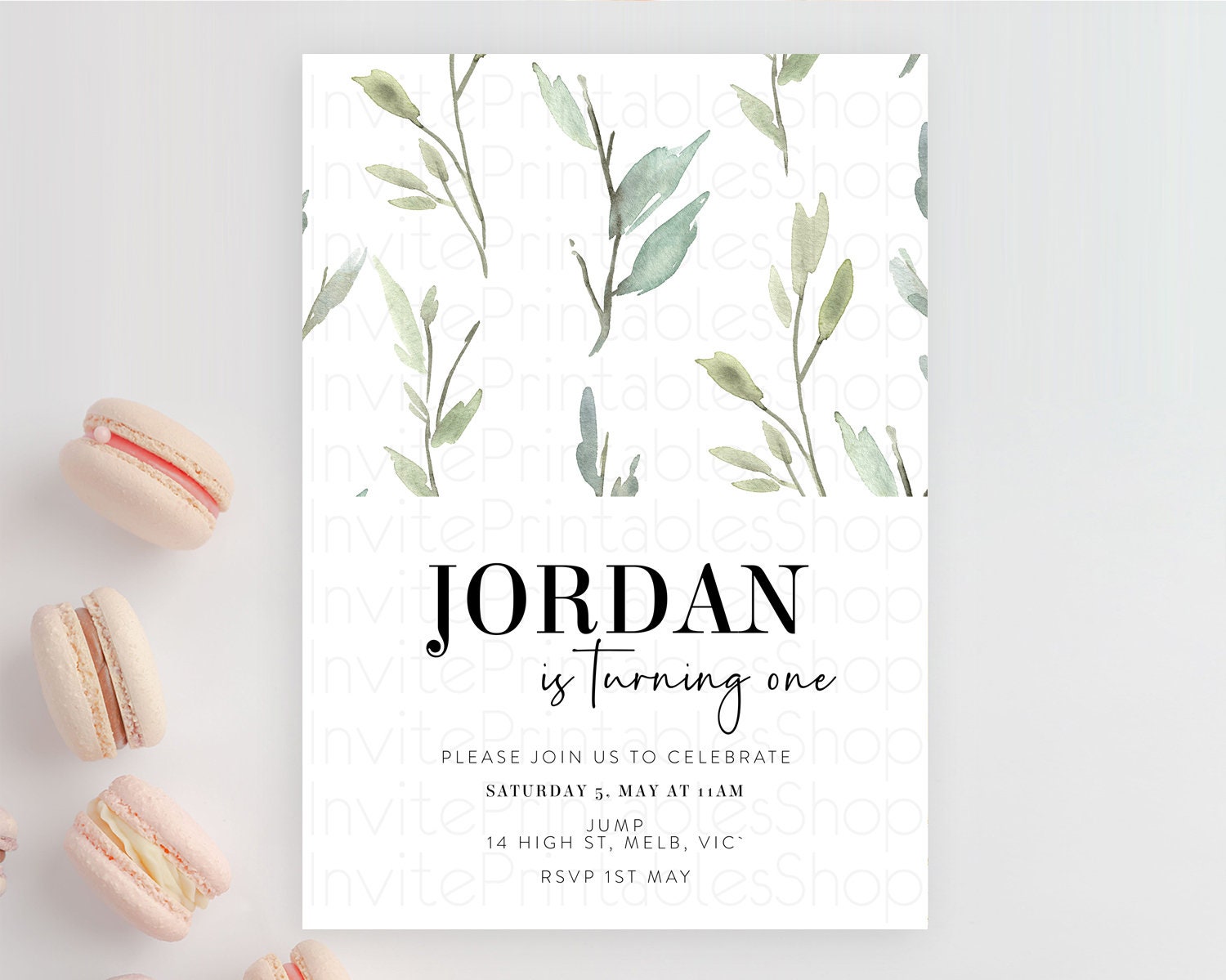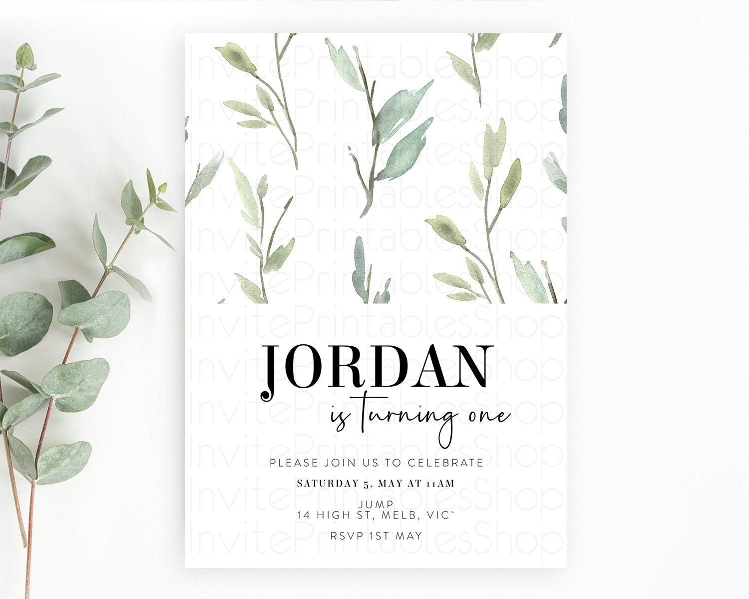 Leafy Birthday Invitation Leafy Invitation Simple Greenery Invitation Eucalyptus Fern Spray Leaves Minimal Green Leaf Watercolour D11058
