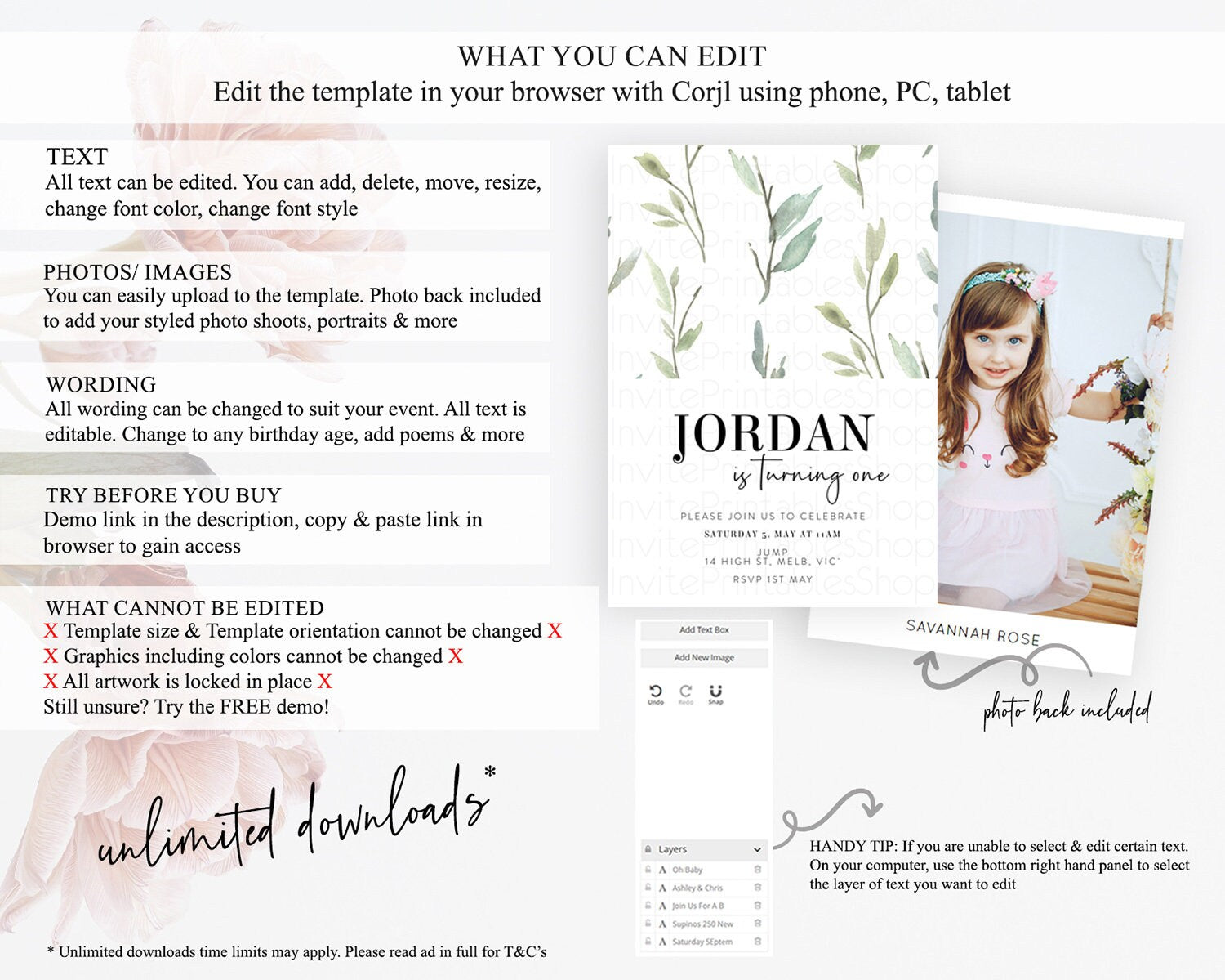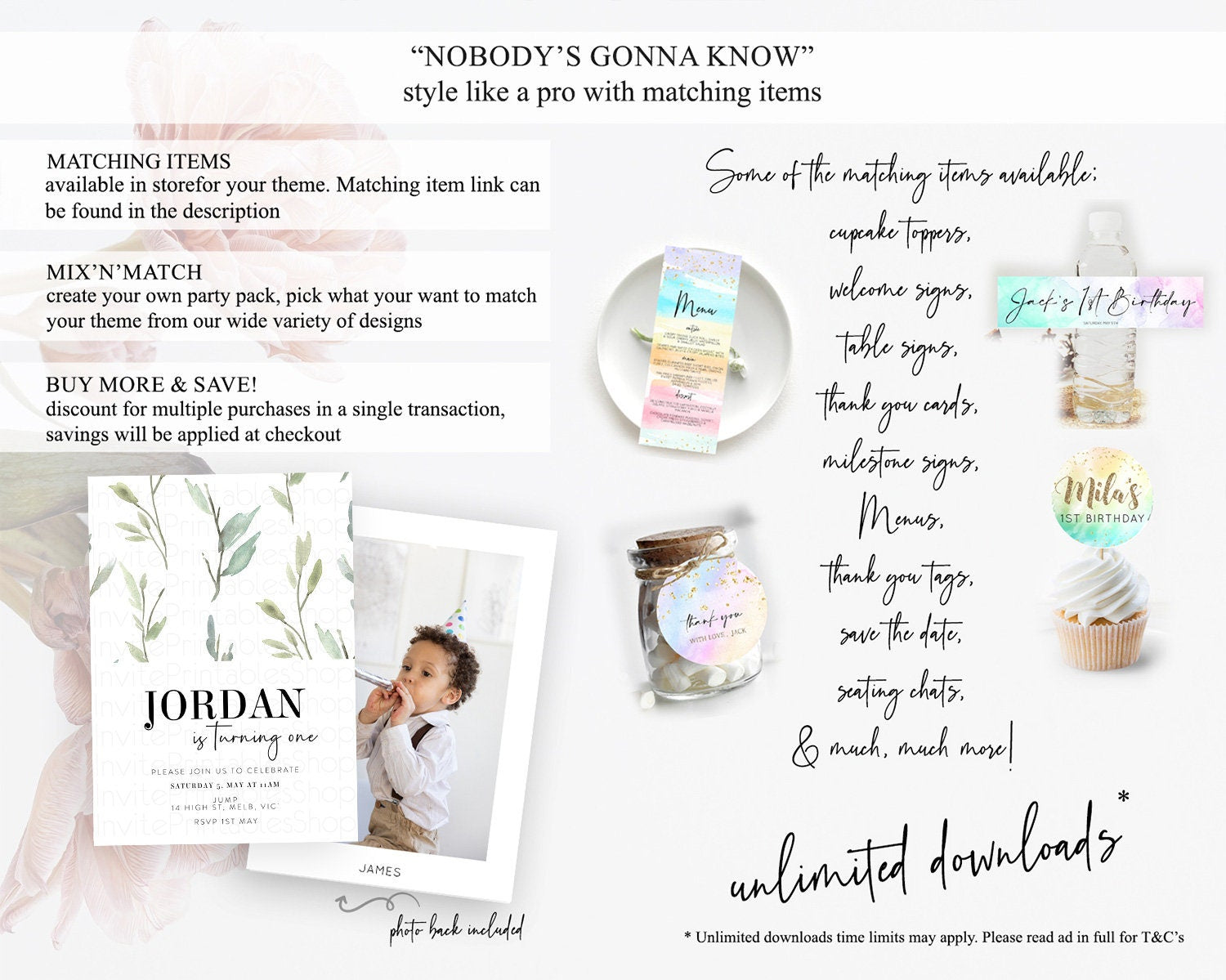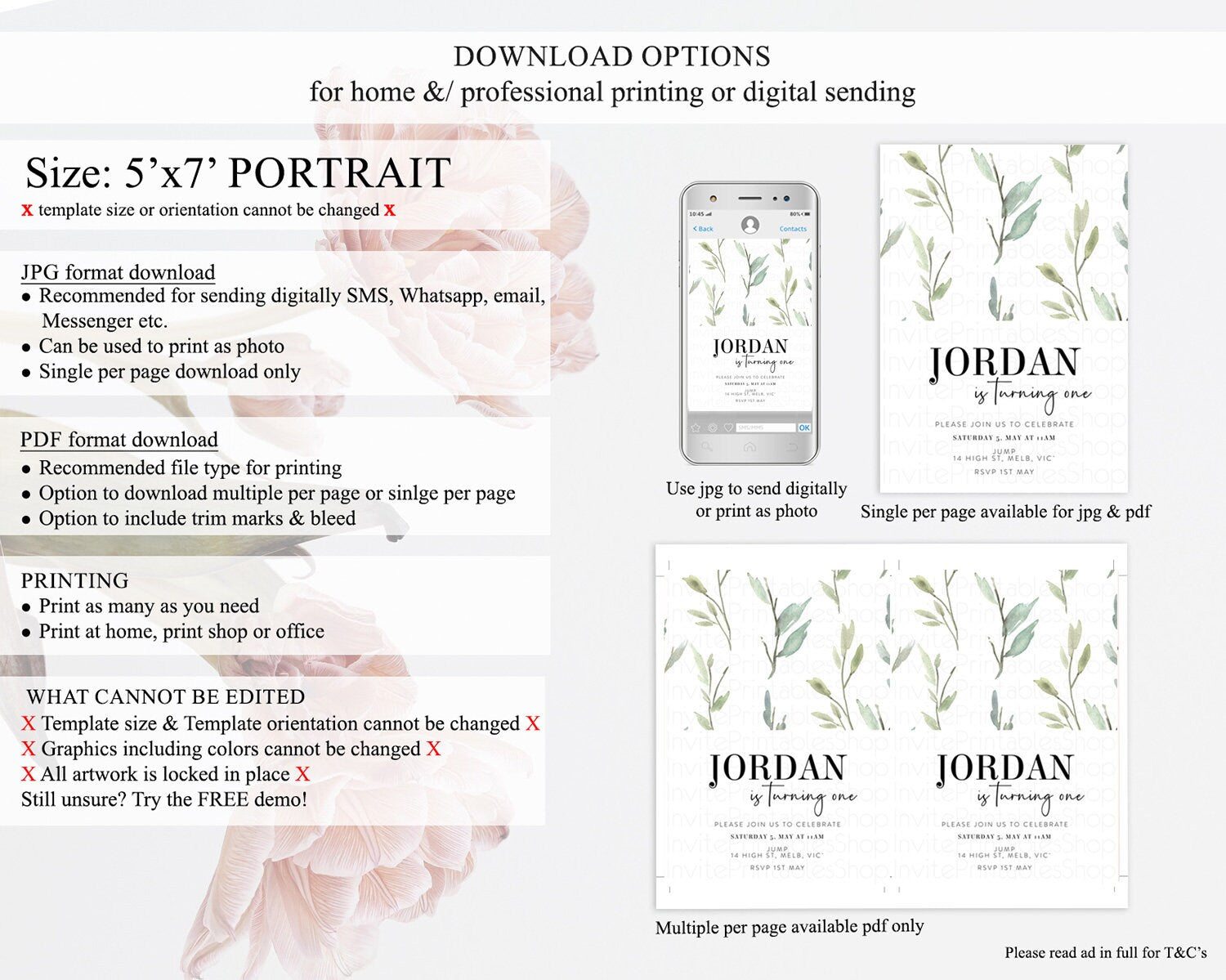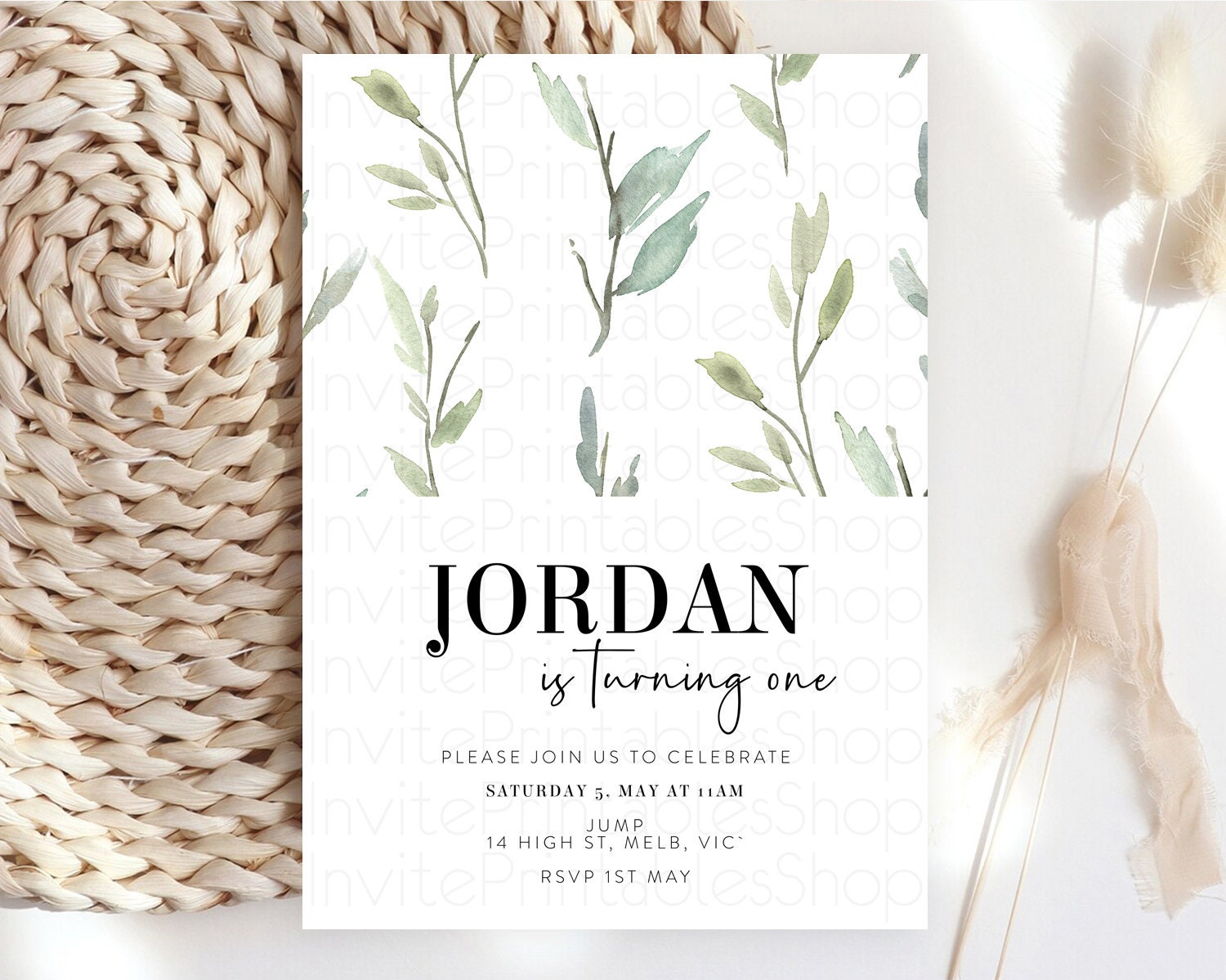 Leafy Birthday Invitation Leafy Invitation Simple Greenery Invitation Eucalyptus Fern Spray Leaves Minimal Green Leaf Watercolour D11058
