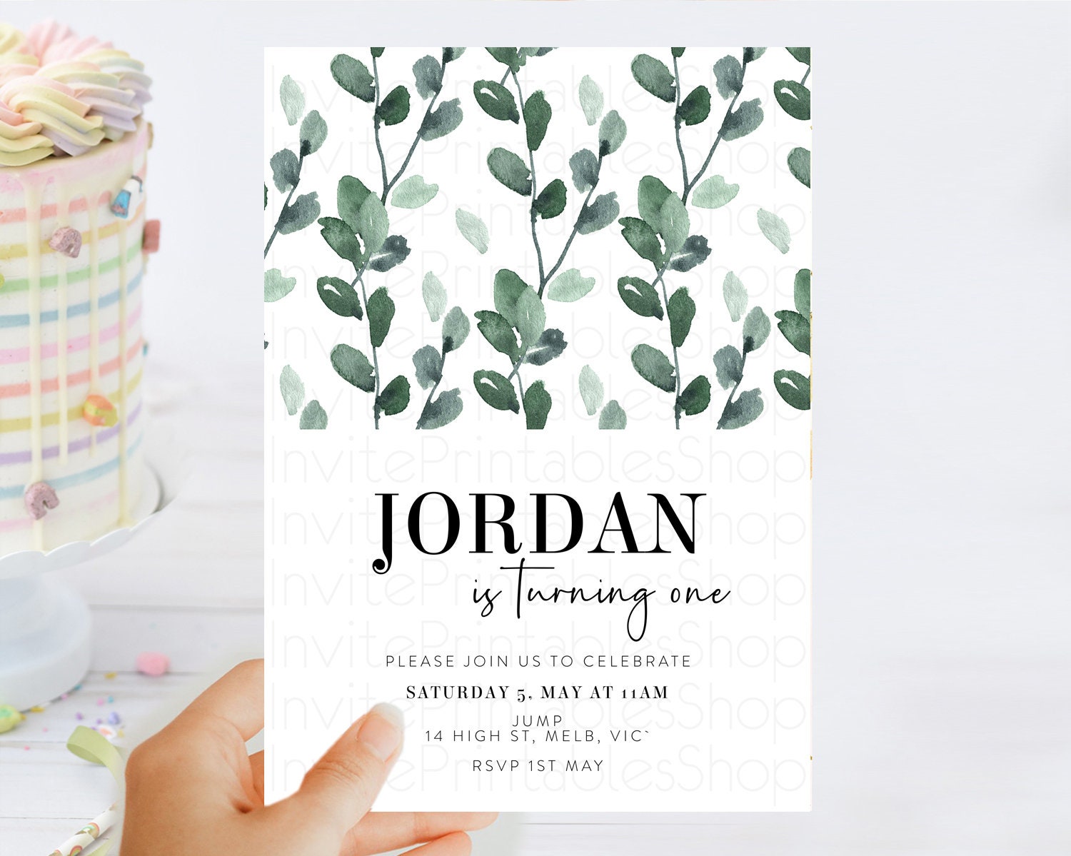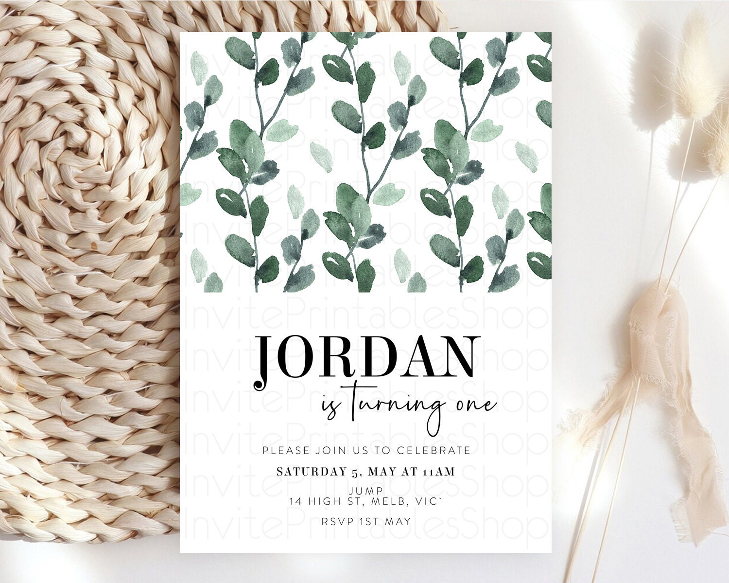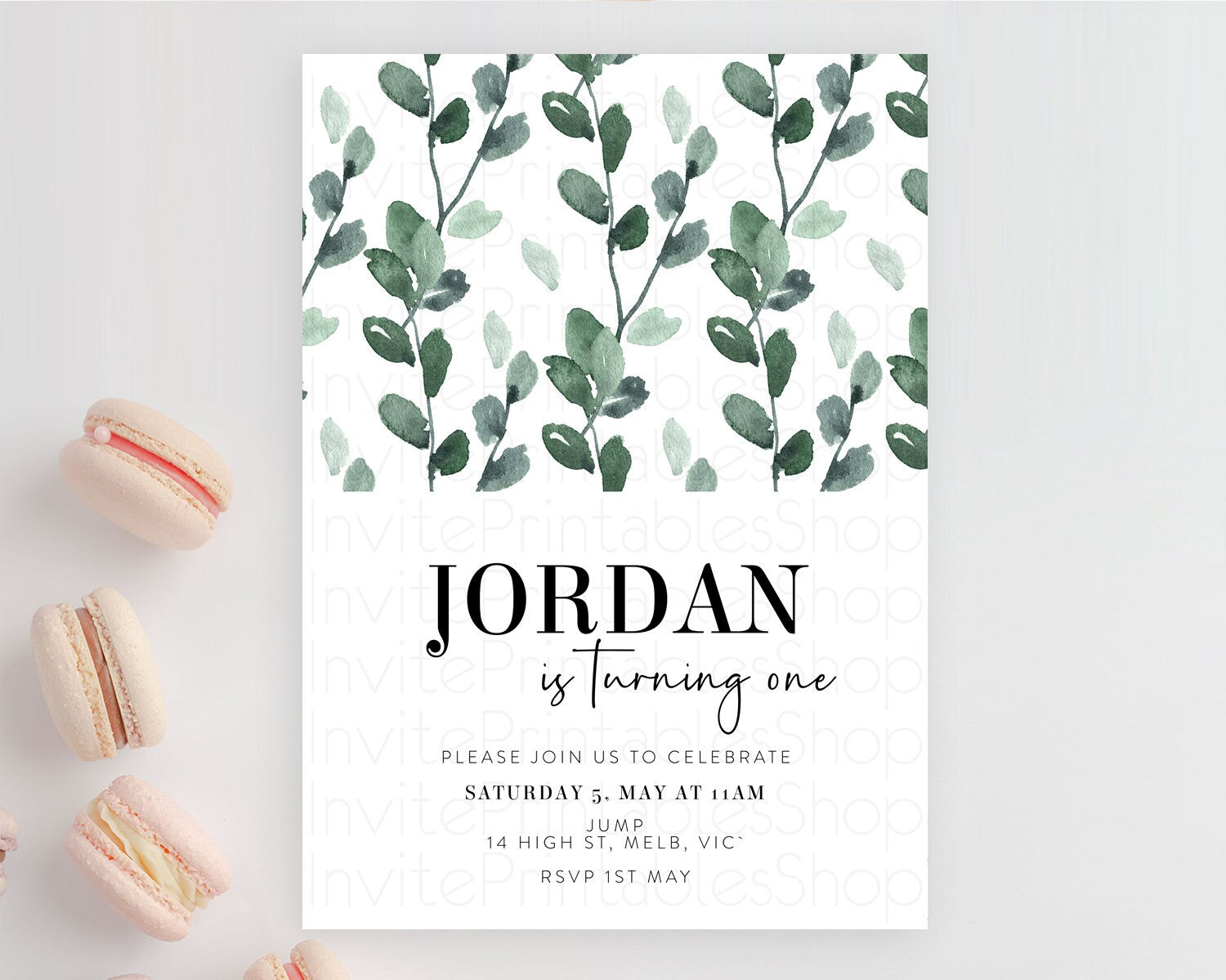 Leafy Birthday Invitation Leafy Invitation Simple Greenery Invitation Eucalyptus Fern Spray Leaves Minimal Green Leaf Watercolour D11059