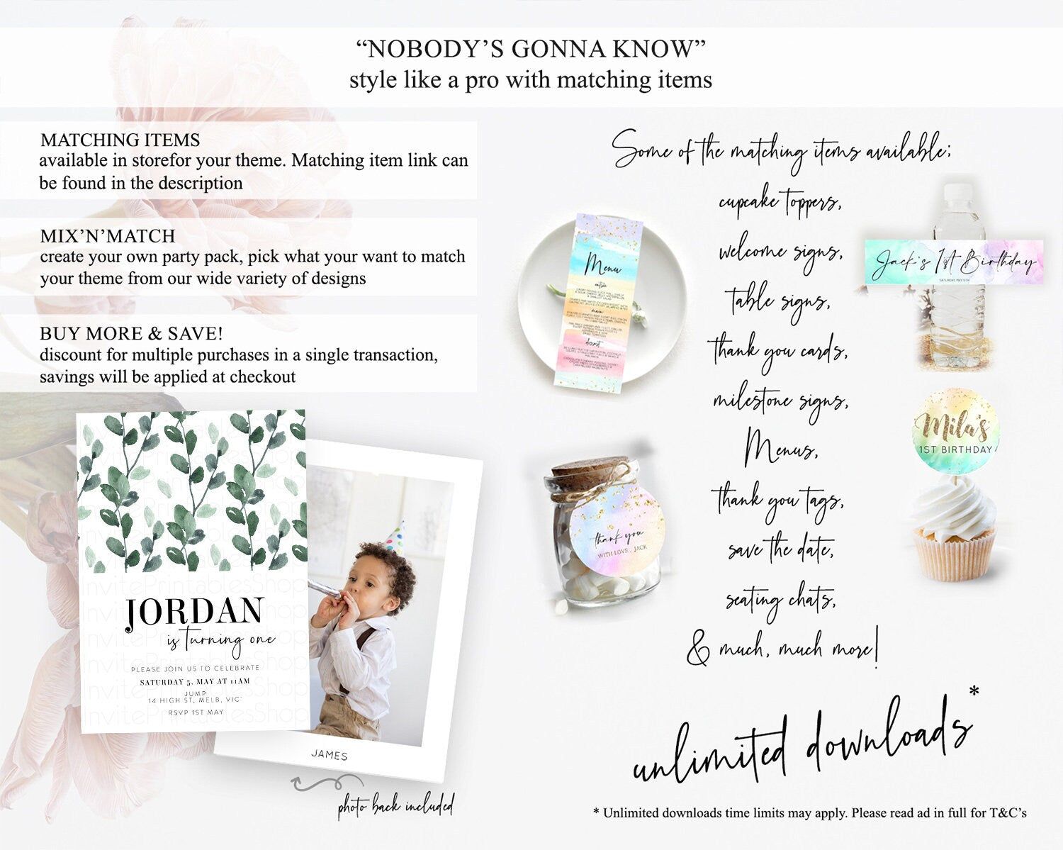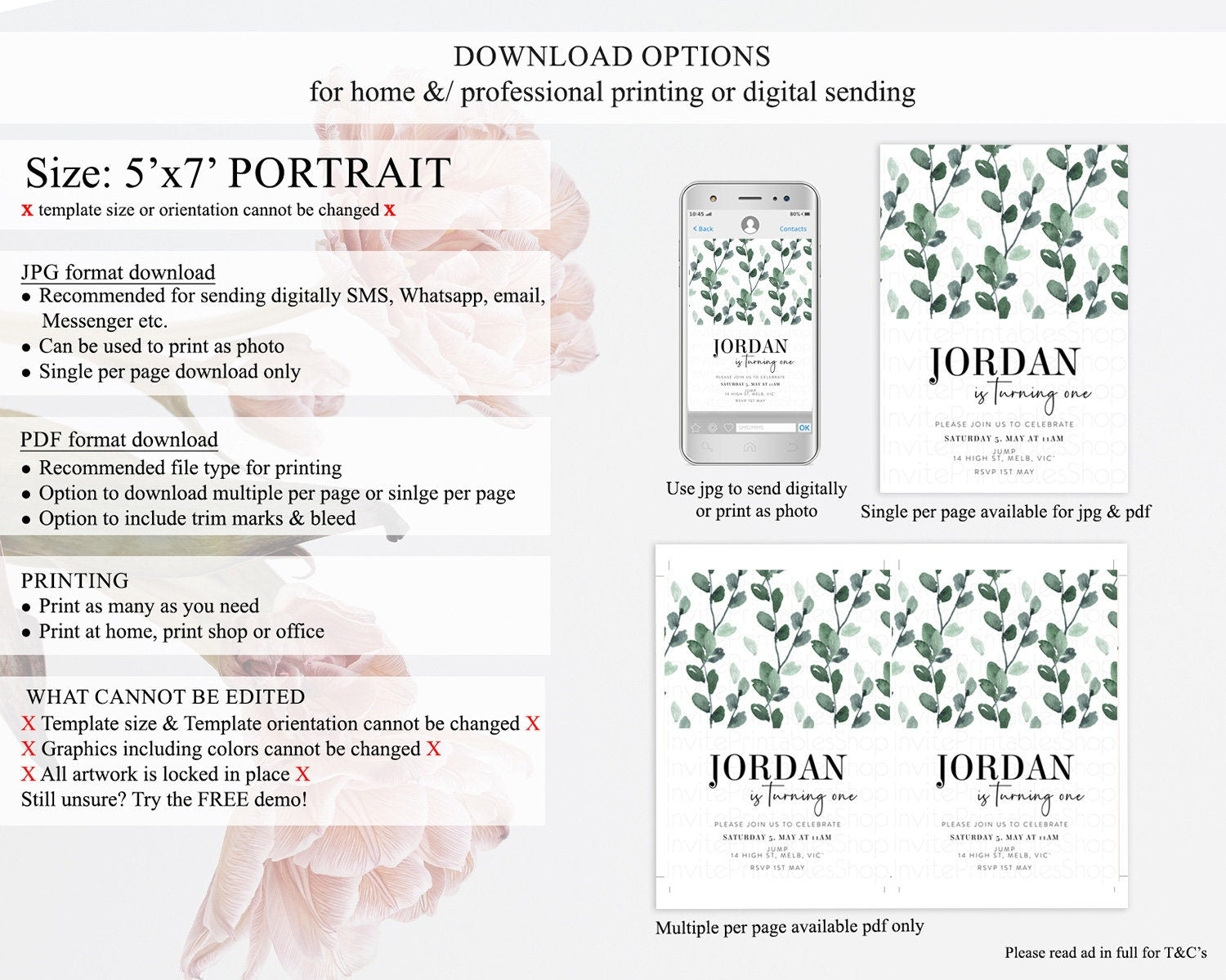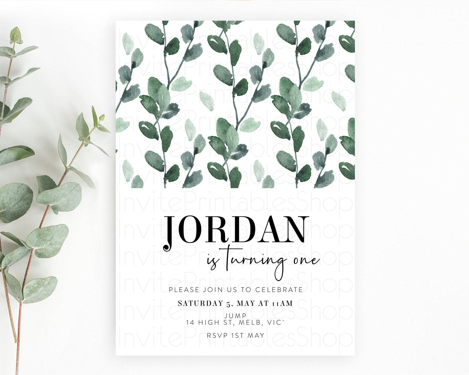 Leafy Birthday Invitation Leafy Invitation Simple Greenery Invitation Eucalyptus Fern Spray Leaves Minimal Green Leaf Watercolour D11059