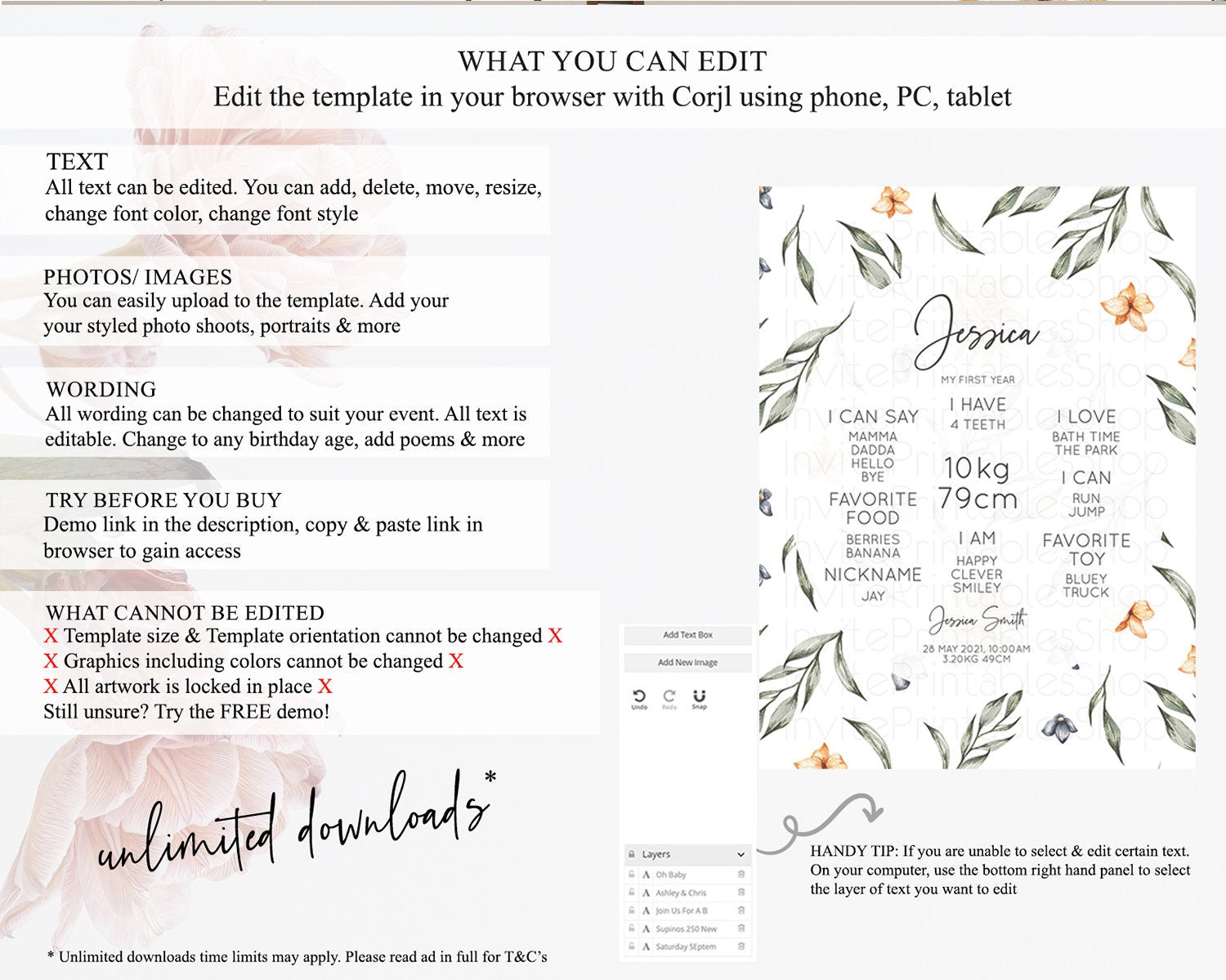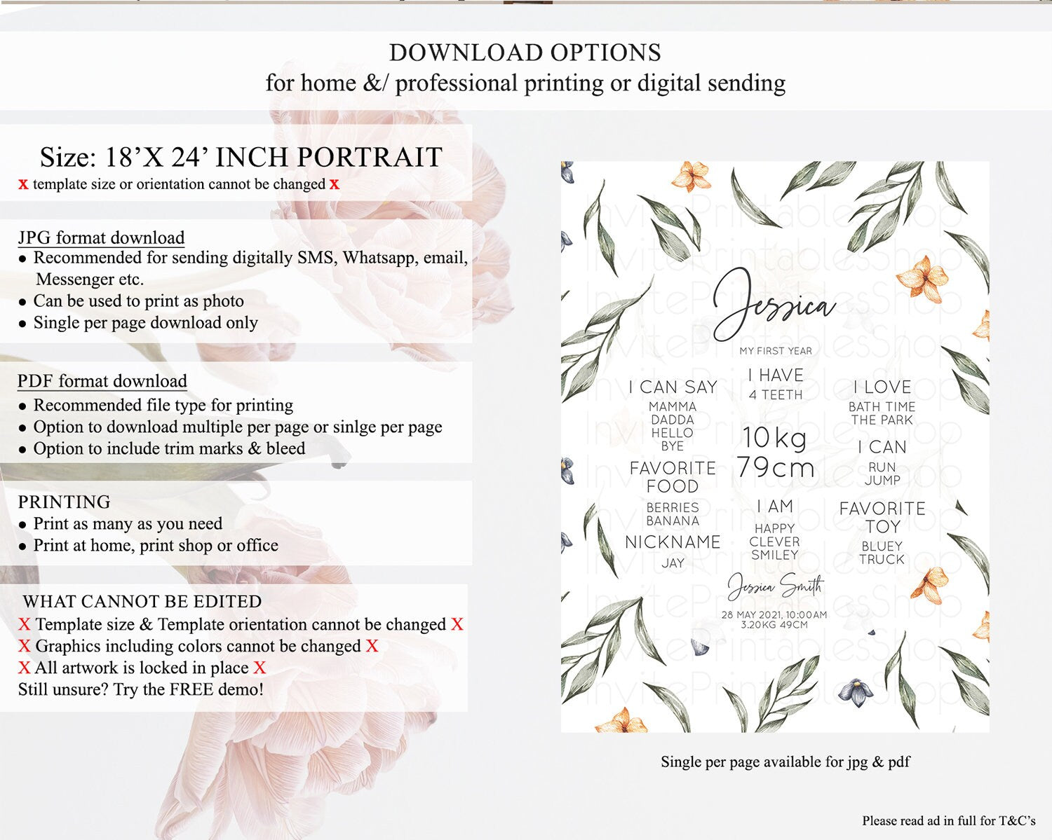 • Template size & orientation cannot be changed. Please use the demo link to confirm this product suits your needs.