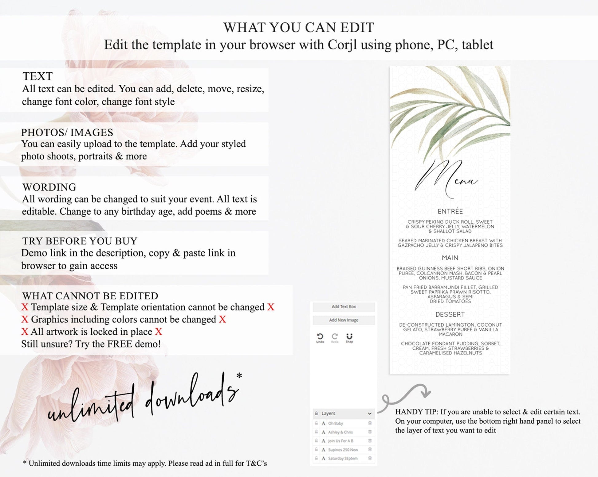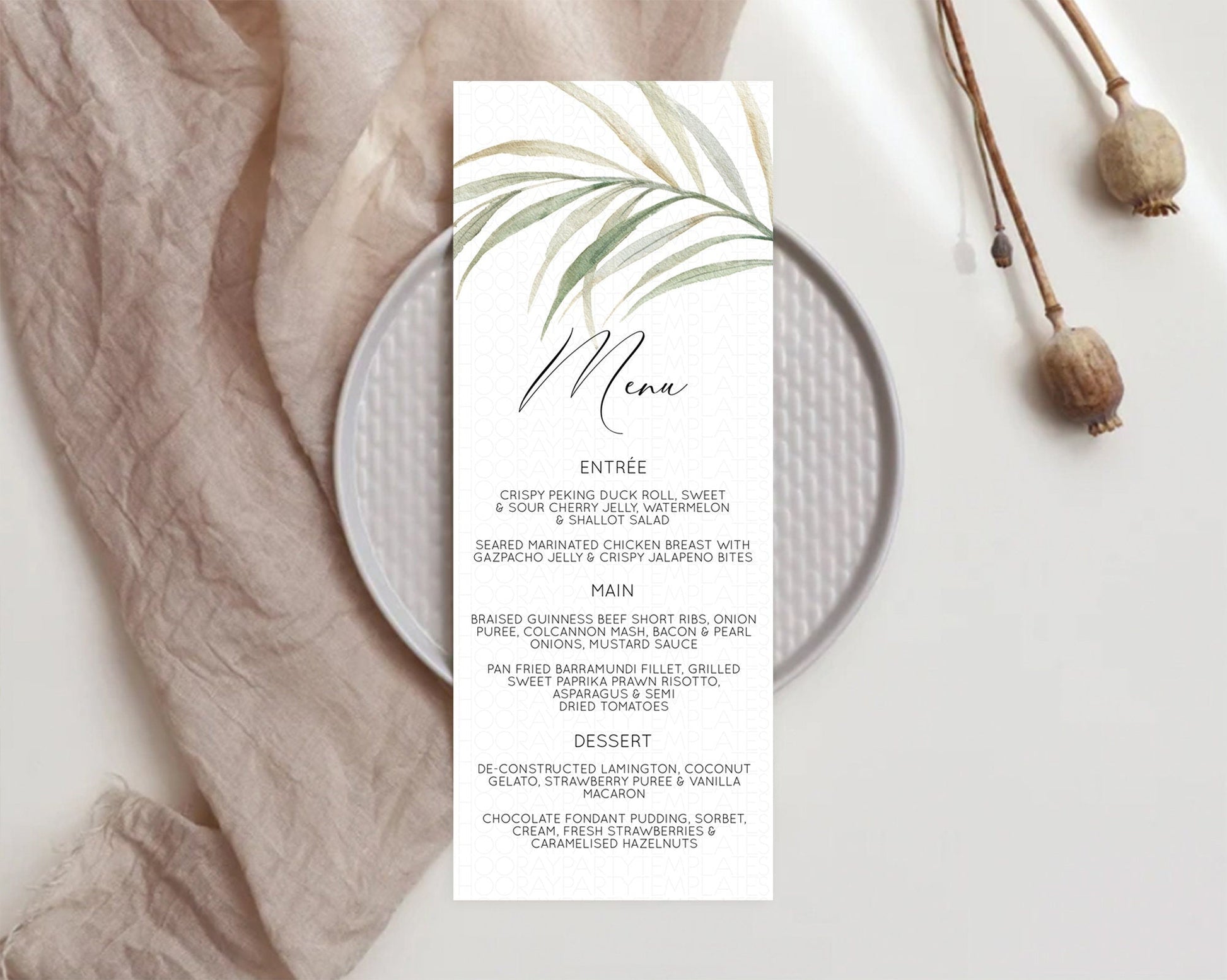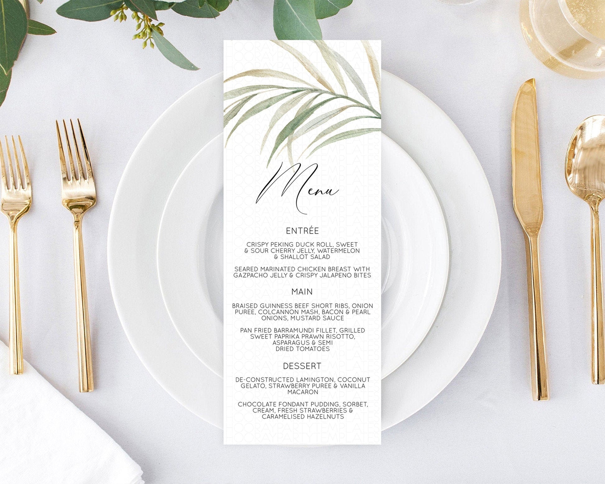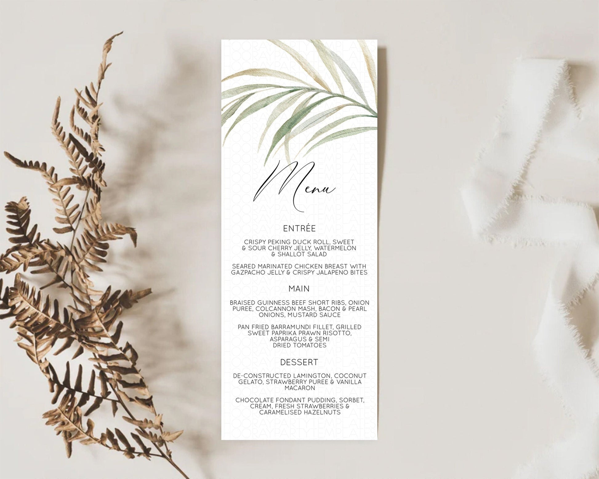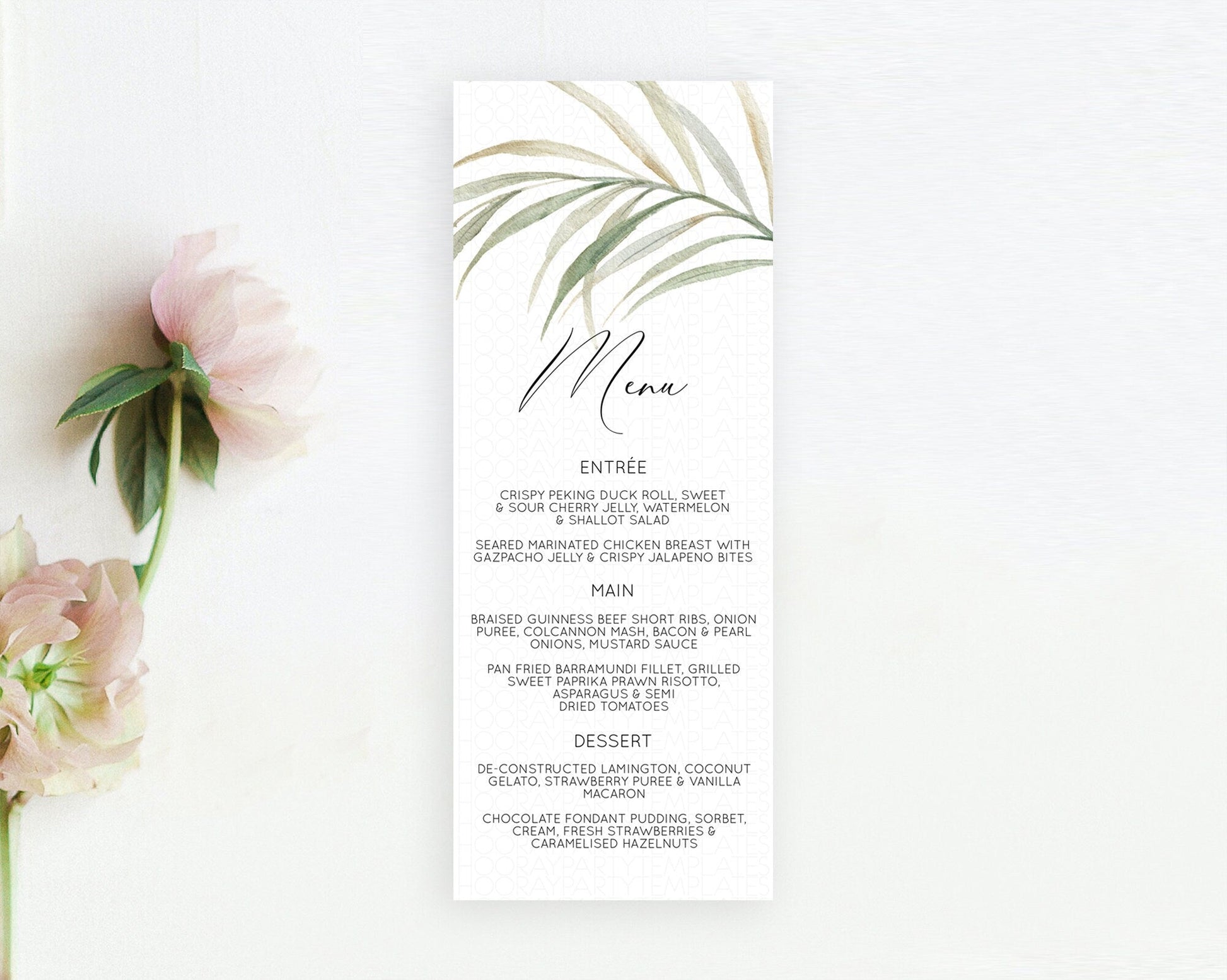 Leafy Menu Green Leaf Menu Template Eucalyptus Fern Leaves Decor Watercolor Boho Garden Leaf Branch Dinner Dessert Party Food Menu D11043