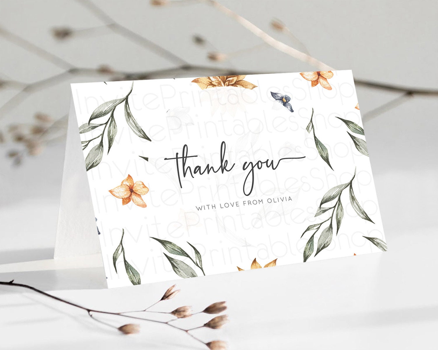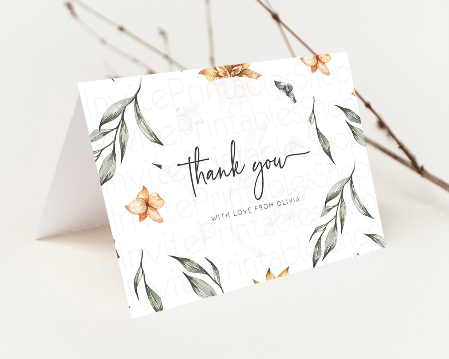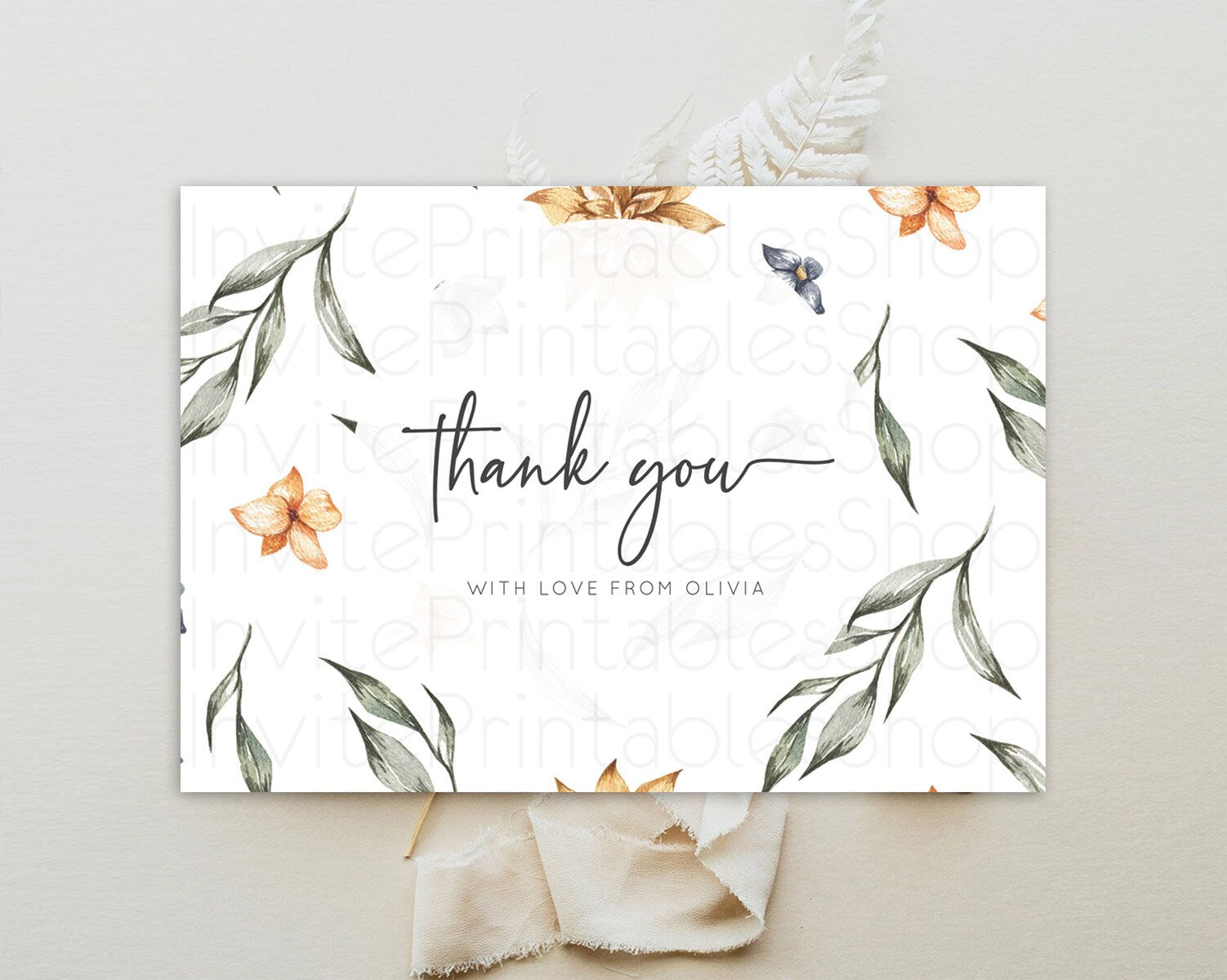 Leafy Thank You Green Leaf Thank You Card Eucalyptus Fern Leaves Cards Watercolor Boho Garden Teacher Thank You Cards Template D10544