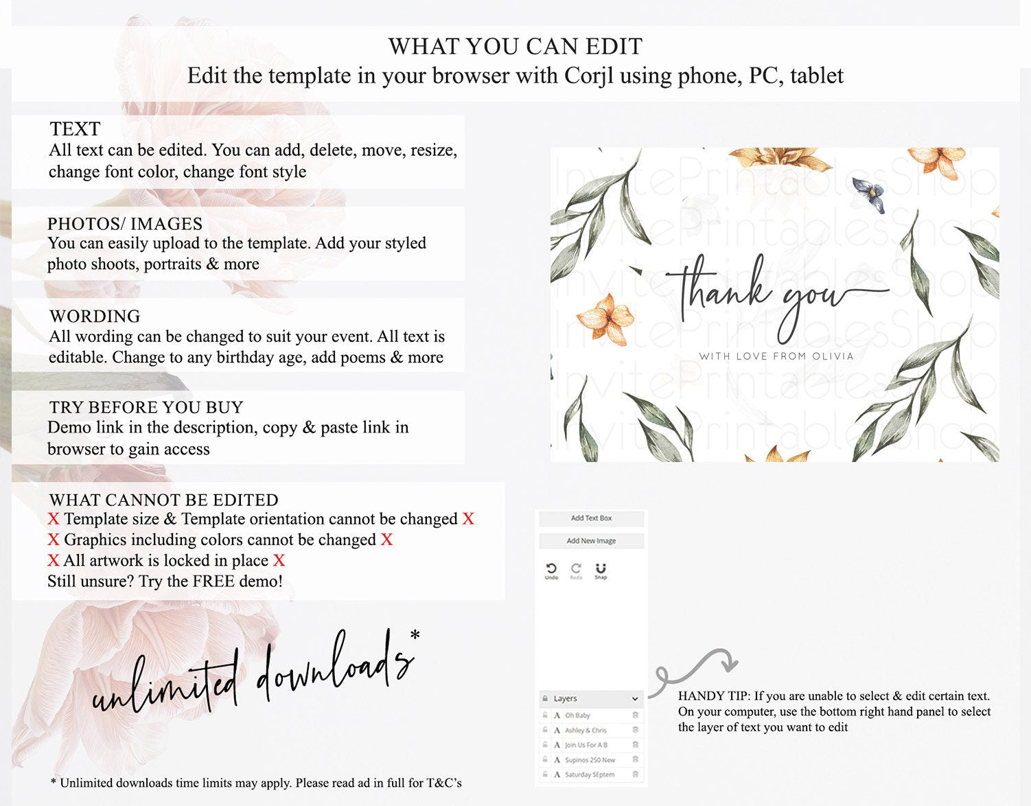 • After purchase, Corjl emails your editing link. Allow up to 15 minutes for delivery.