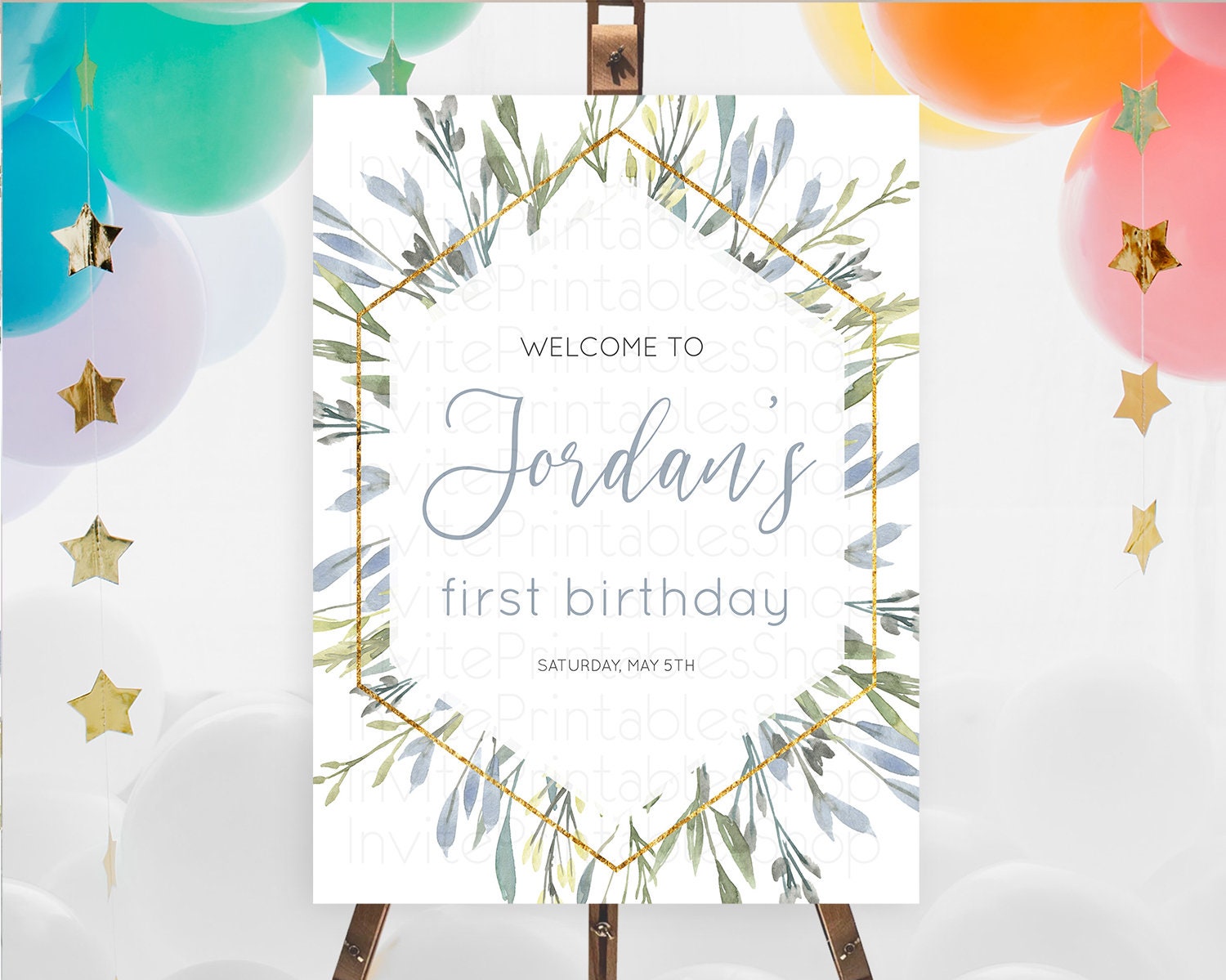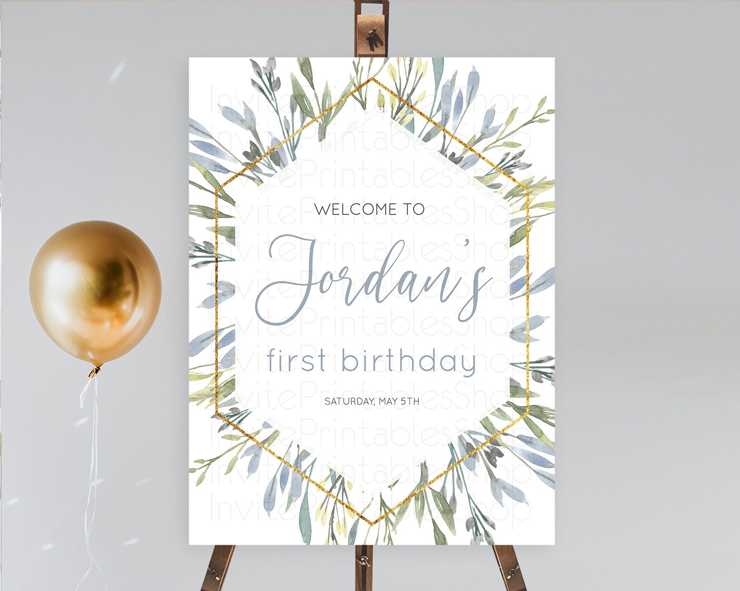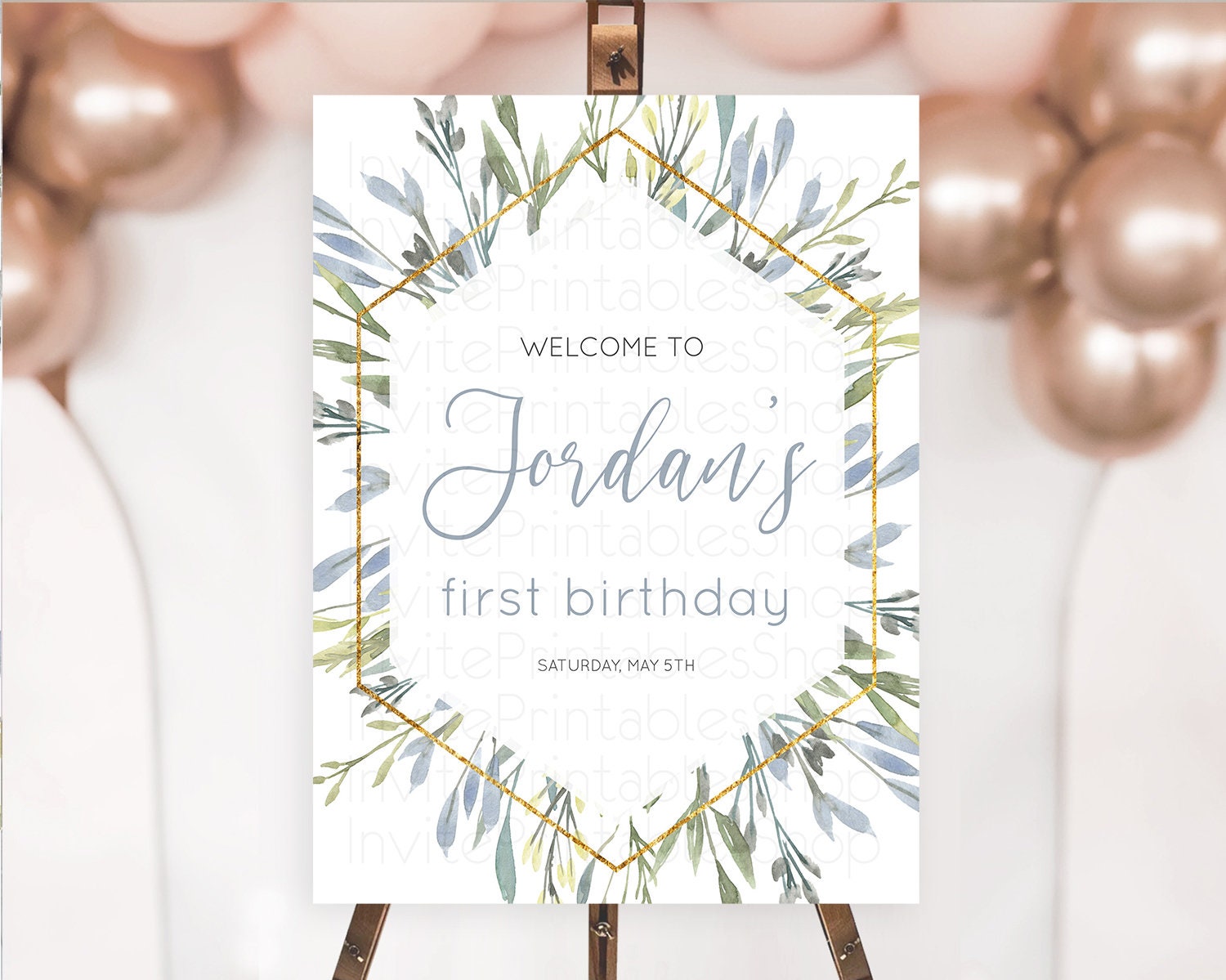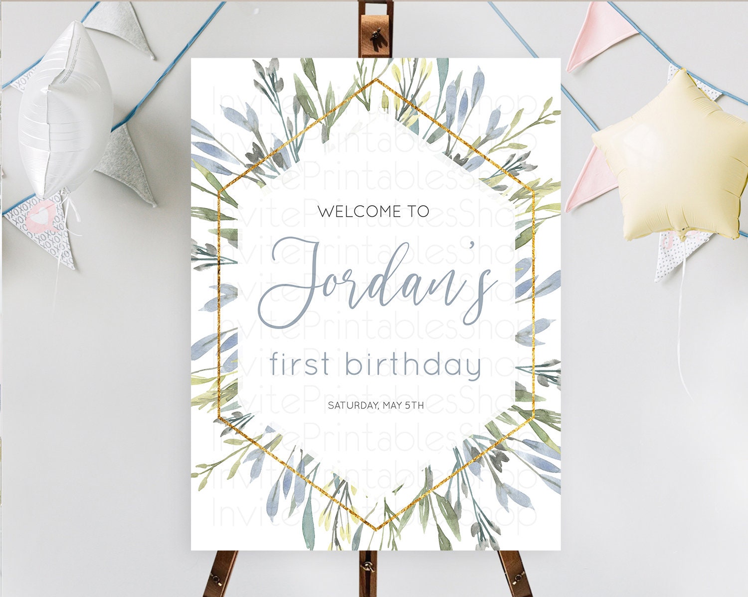 Leafy Welcome Sign Green Leaf Welcome Board Greenery Eucalyptus Fern Spray Leaves Watercolor Boho Garden First Birthday Welcome Sign D10532