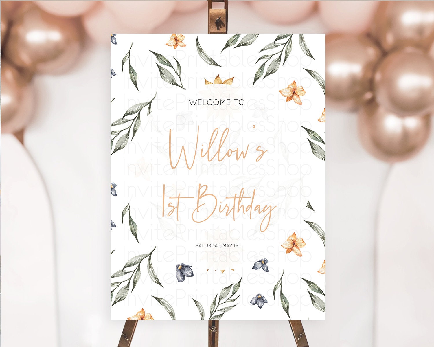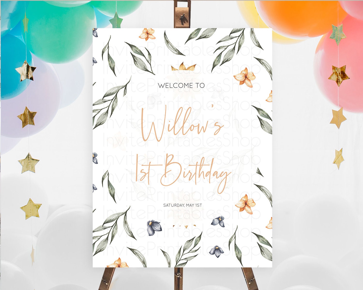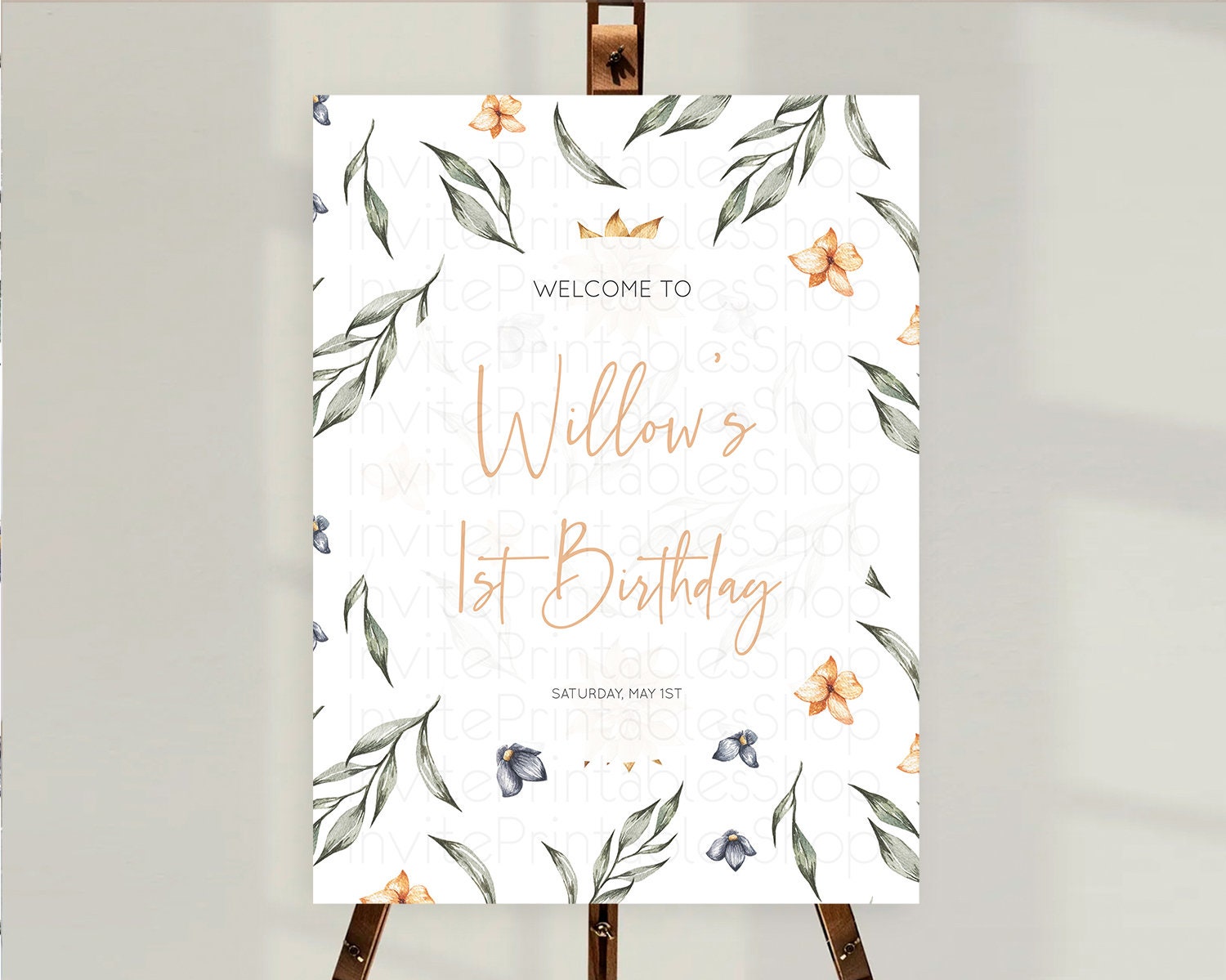 Leafy Welcome Sign Green Leaf Welcome Board Greenery Eucalyptus Fern Spray Leaves Watercolor Boho Garden First Birthday Welcome Sign D10544