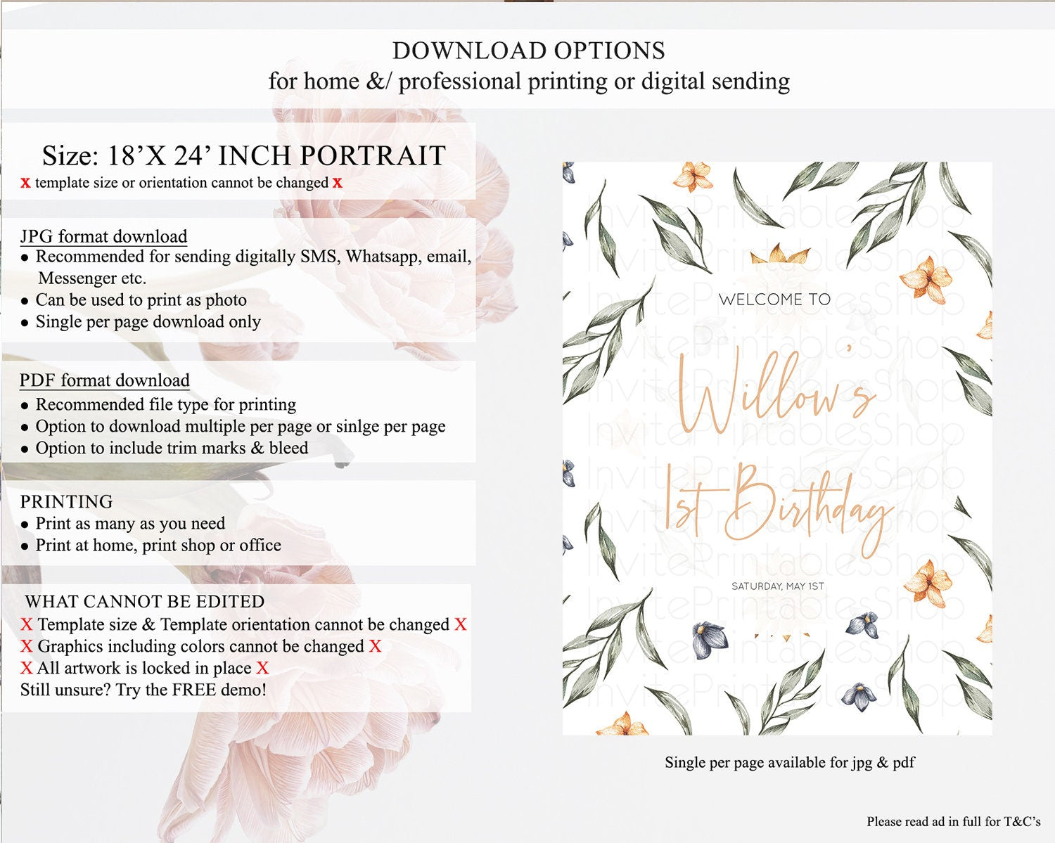 • Template size & orientation cannot be changed. Please use the demo link to confirm this product suits your needs.