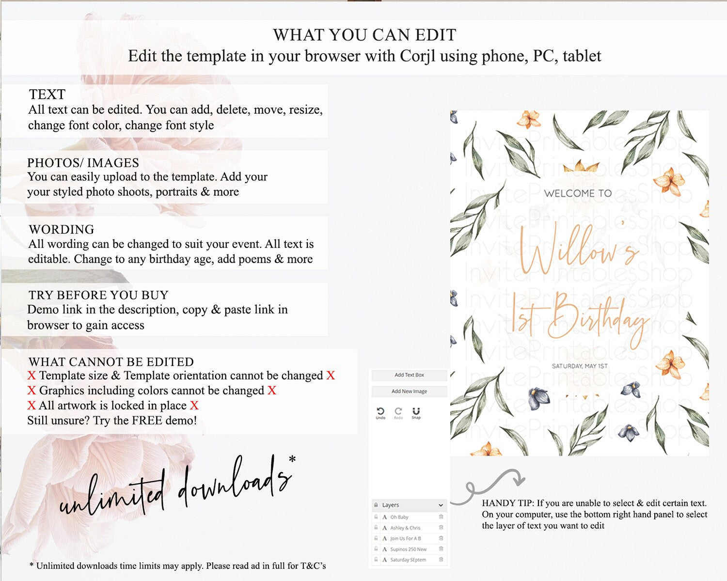 • After purchase, Corjl emails your editing link. Allow up to 15 minutes for delivery.