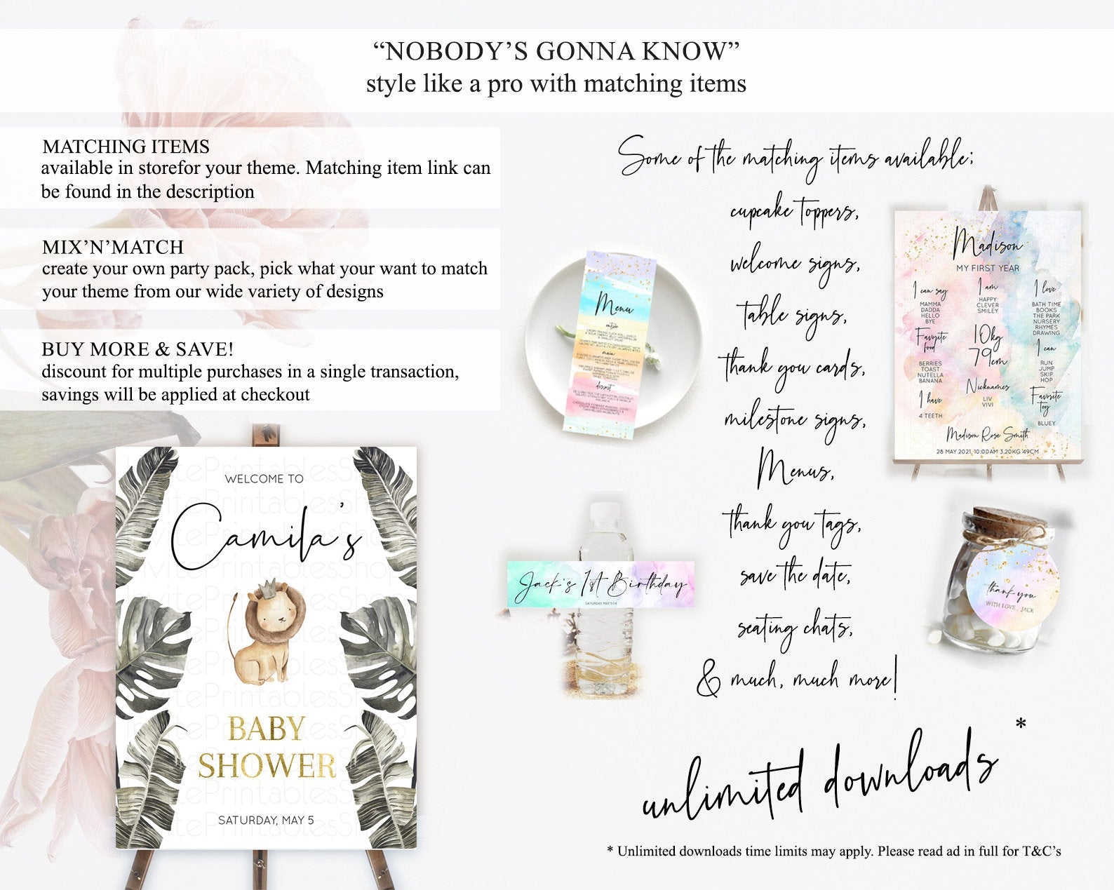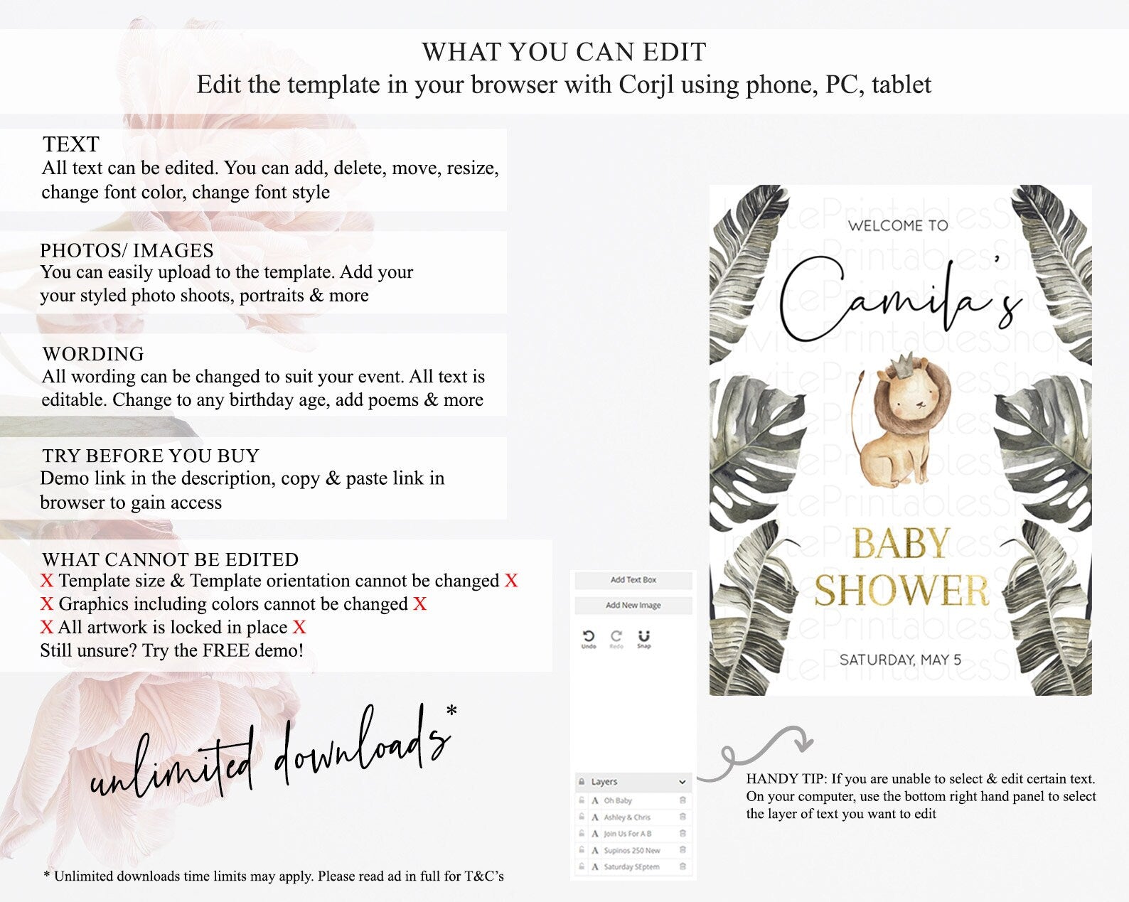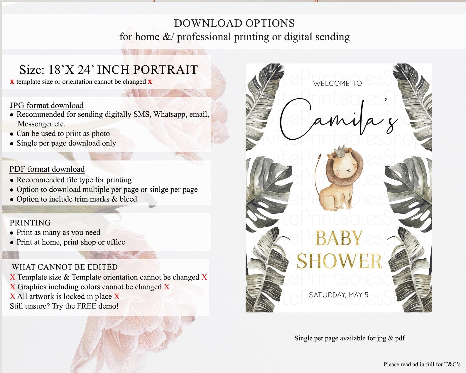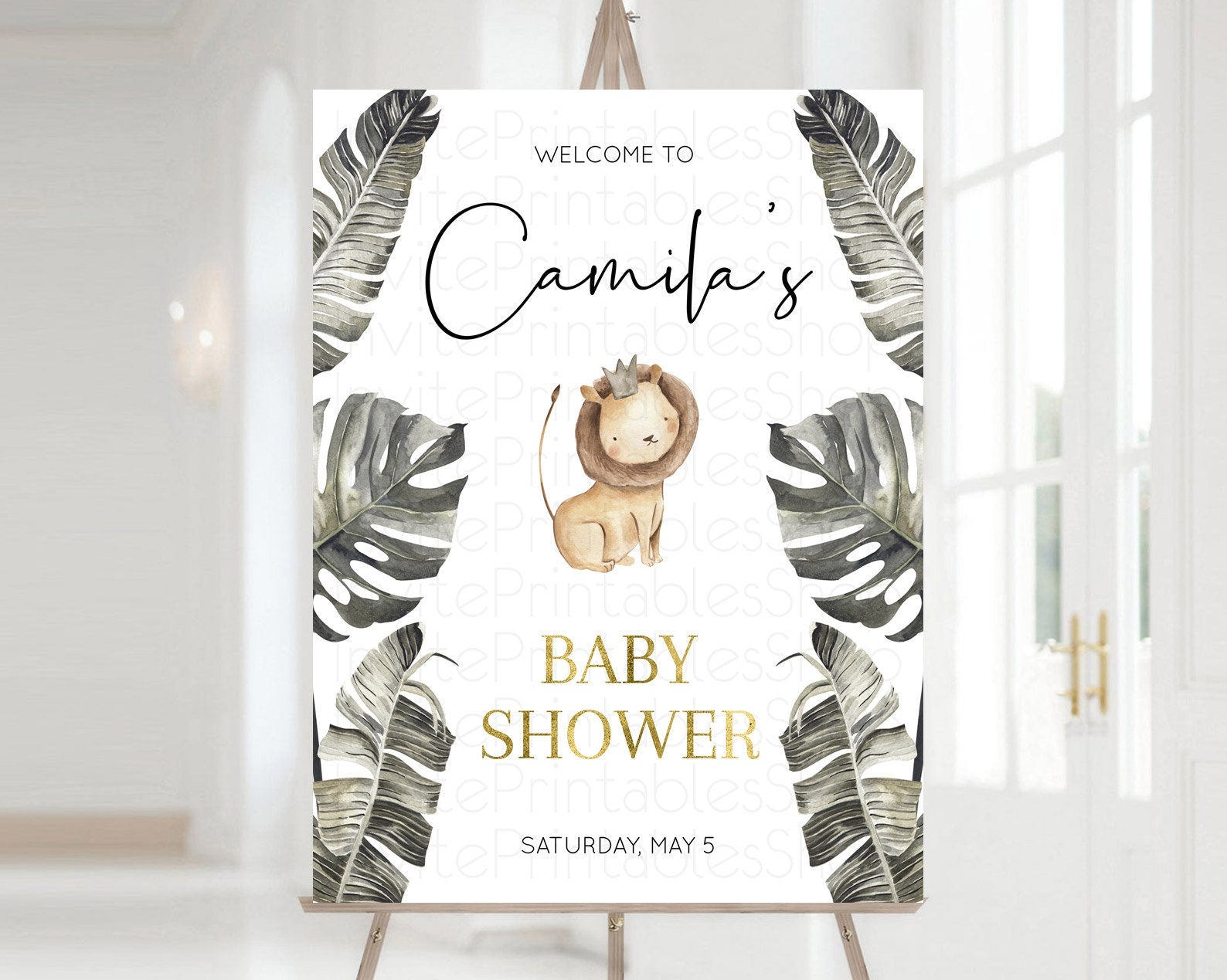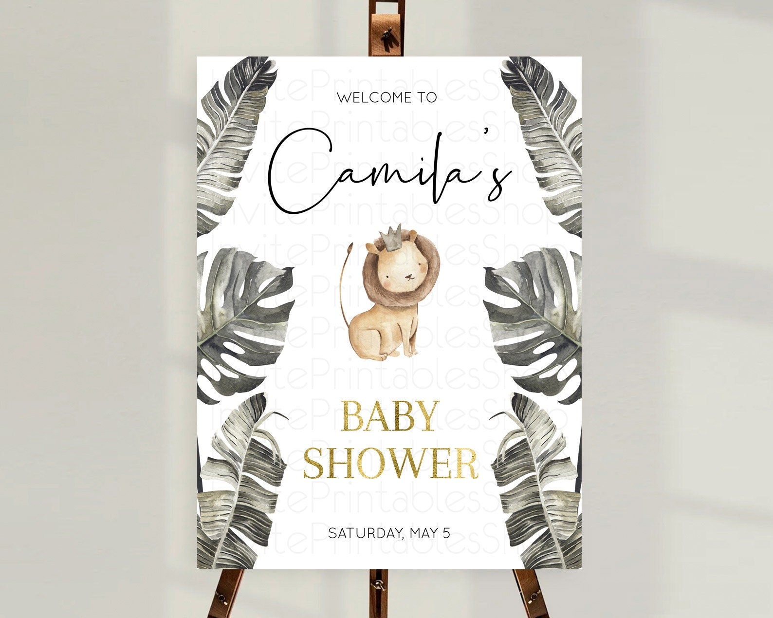 Lion Baby Shower Welcome Sign Lion Welcome Board Lion Party Welcome Poster Dried Palm Fern Safari Party Decor Lion Welcome Sign D10599