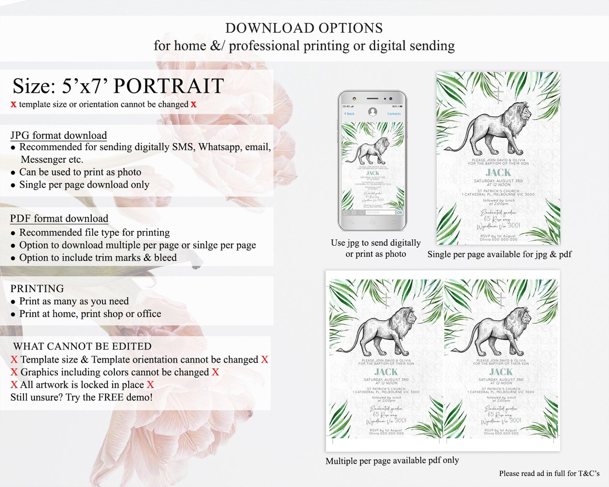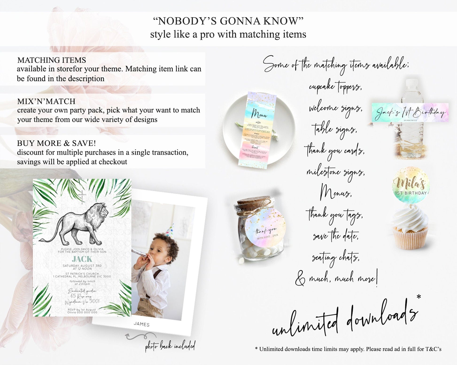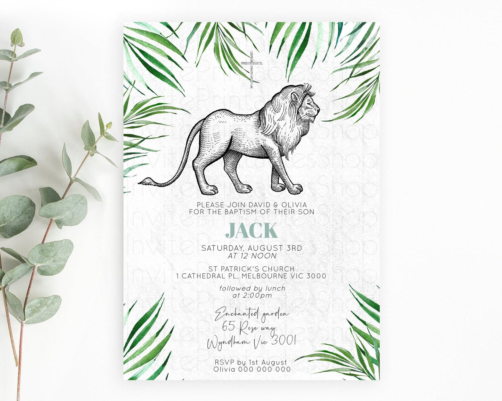 Lion Baptism Invitation Lion Baptism 1st Birthday Invitation Modern Safari Adventure Lion Christening Invitation Holy Communion D10845