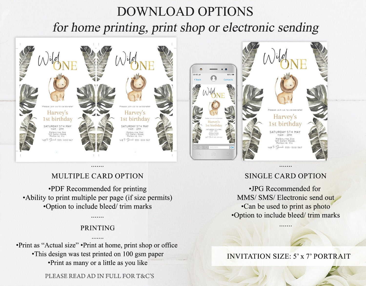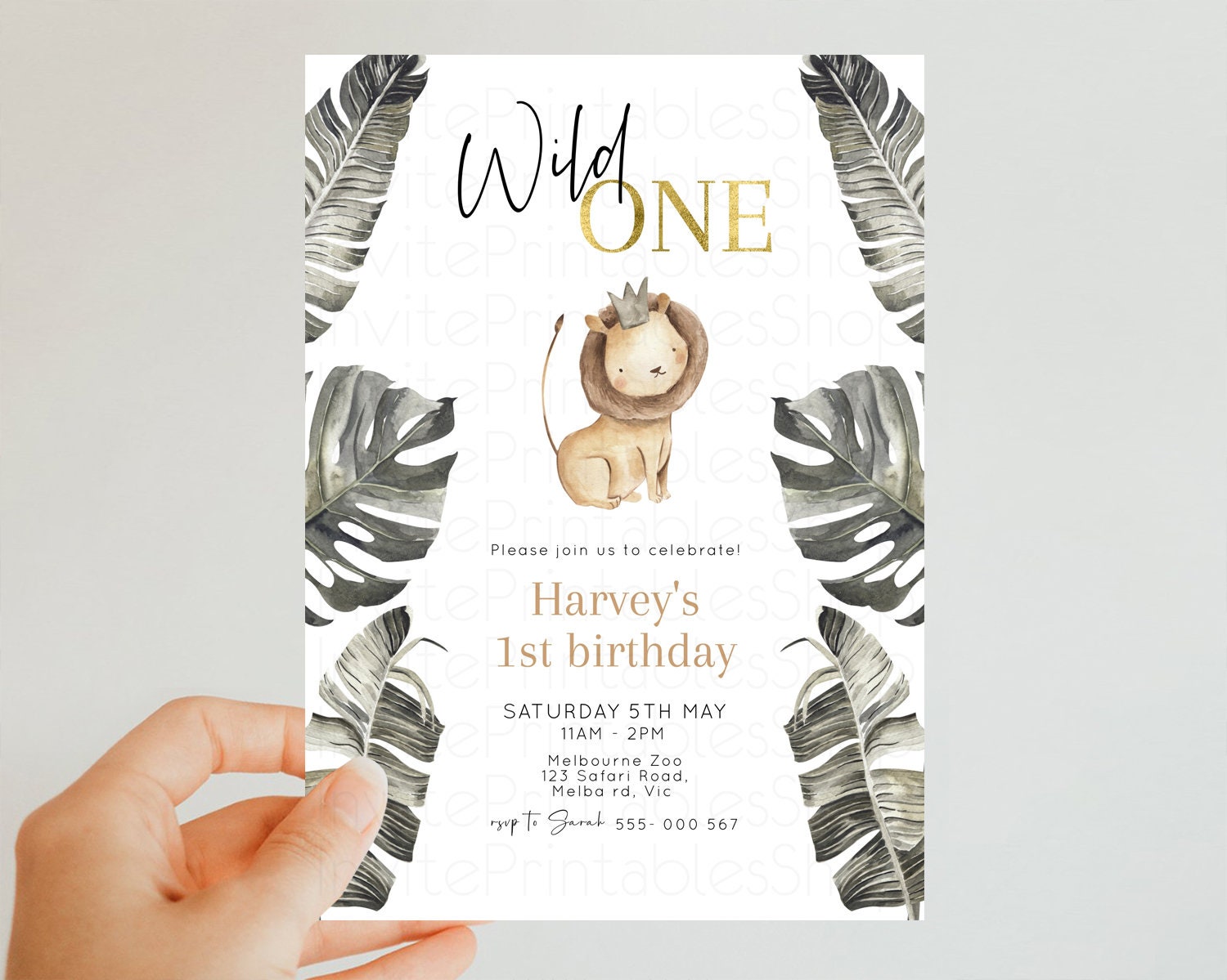 Lion Birthday Invitation Lion 1st Birthday Invite Lion Cub Invitation Lion Safari Invite Wild One Invite Zoo Party Jungle Palm Leaf 584
