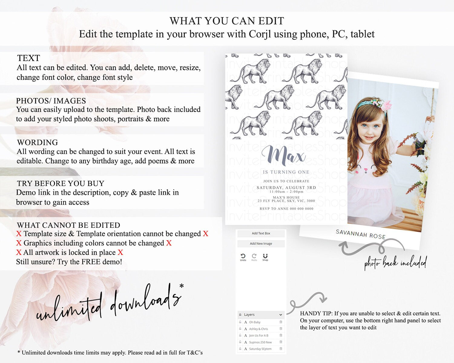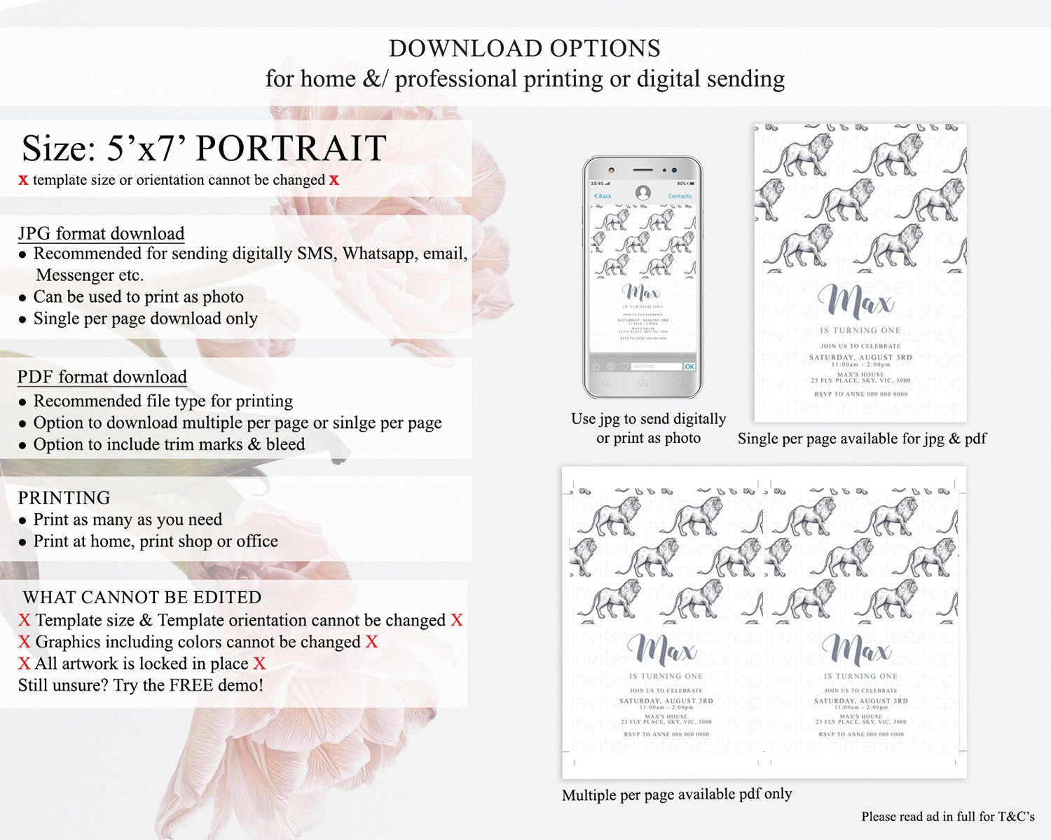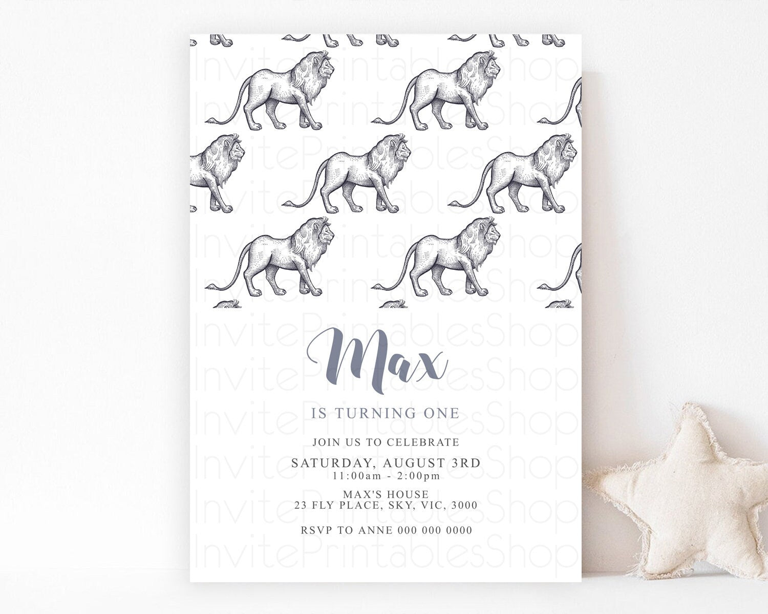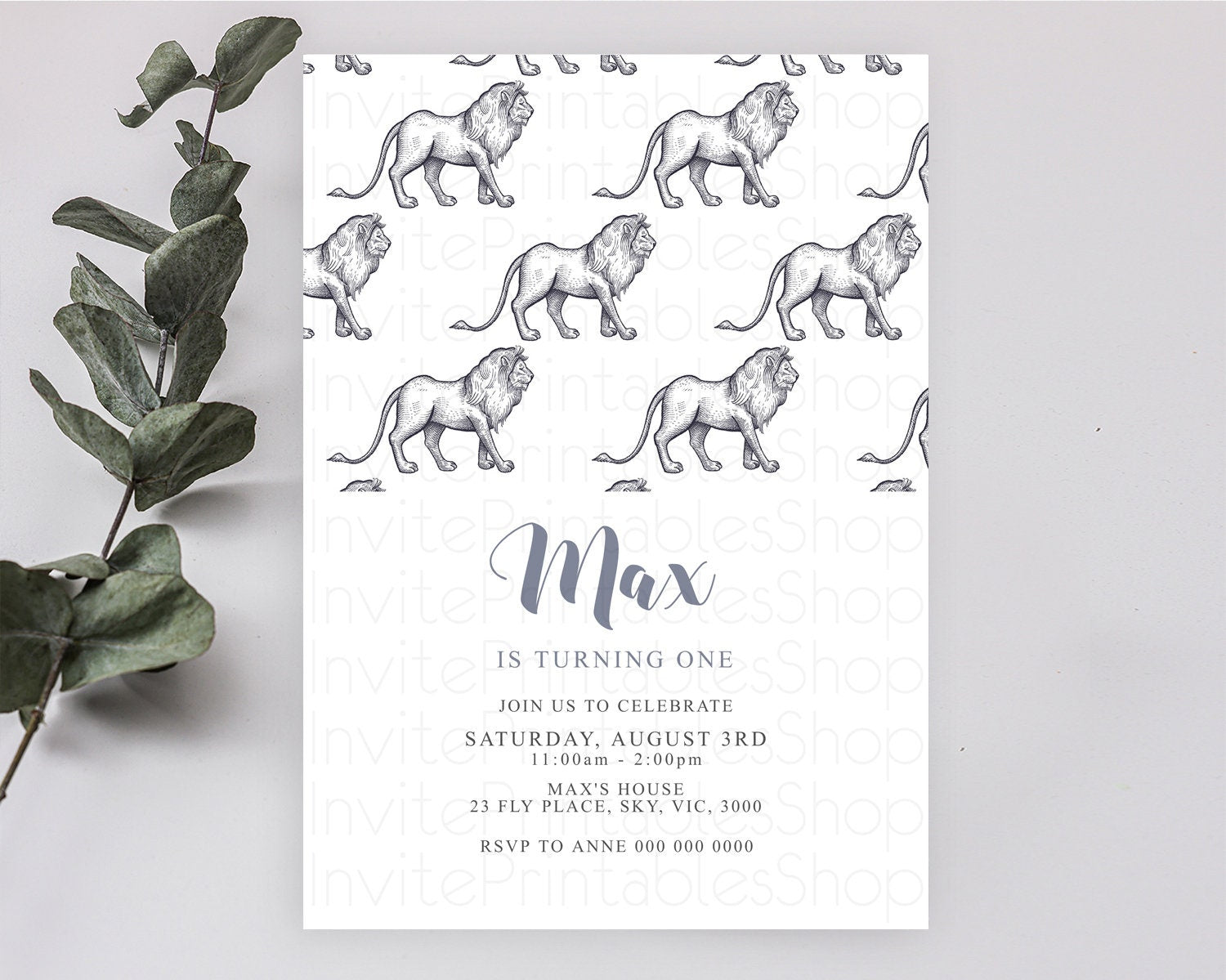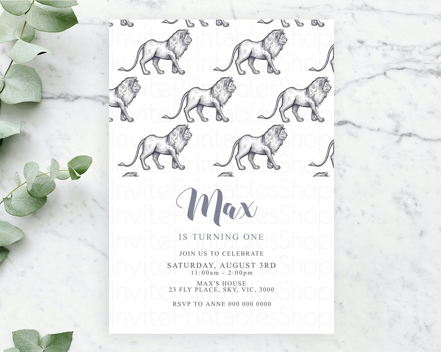 Lion Birthday Invitation Lion Invitation Modern Safari Lion Party 2 Wild 1 Safari Adventure Zoo Birthday Minimalist Lion Invites D10246
