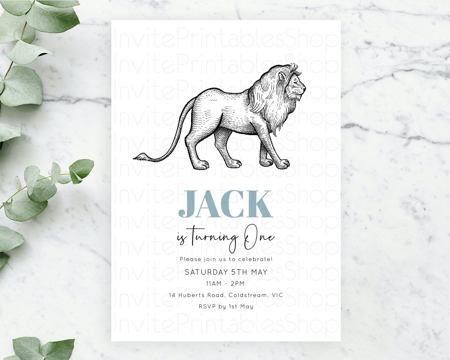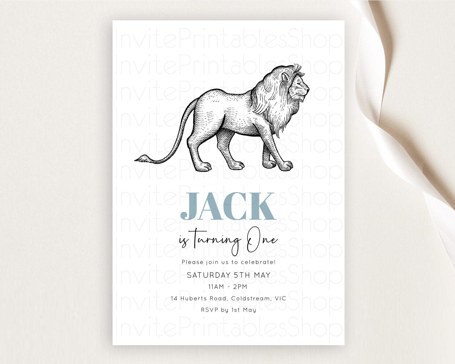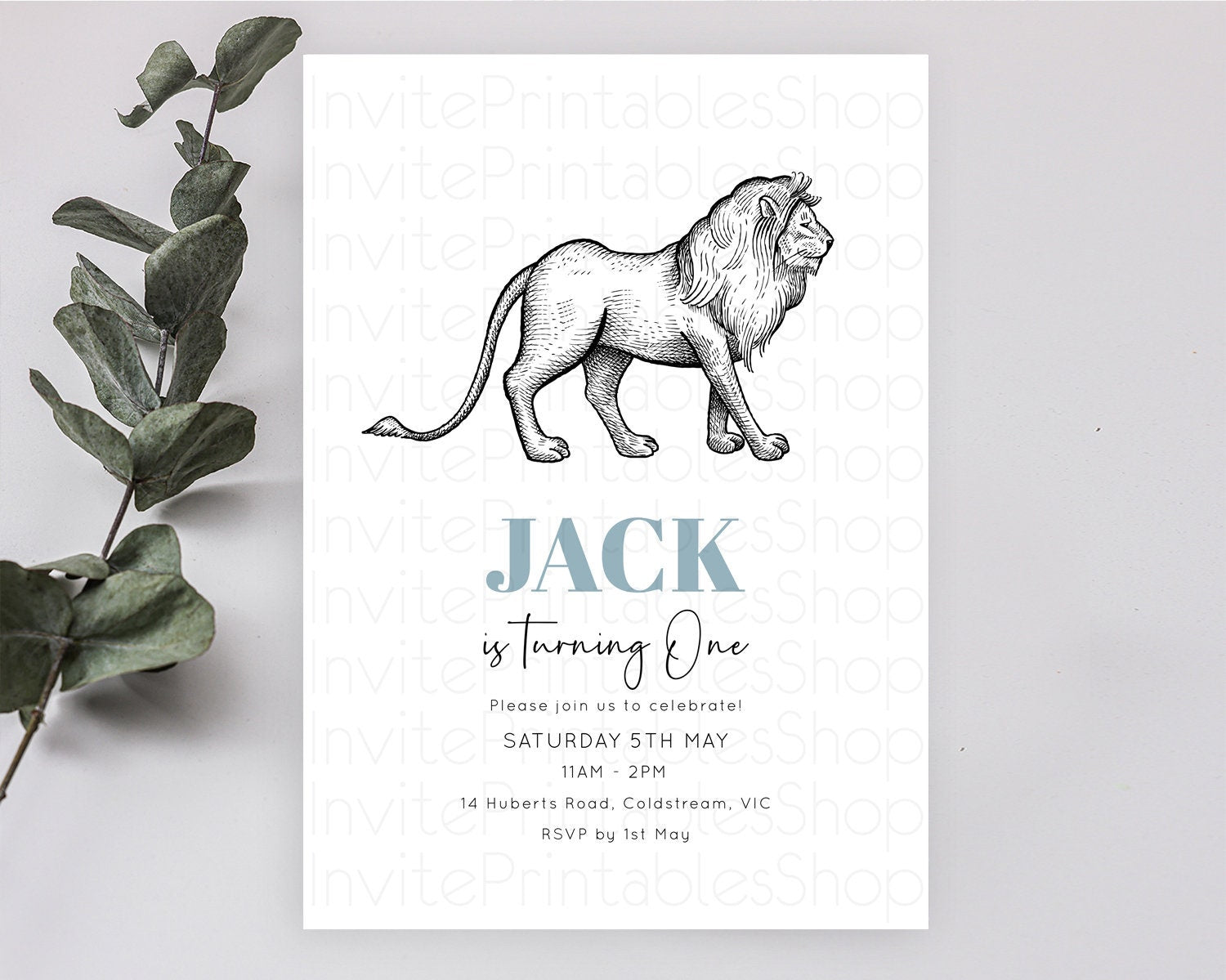 Lion Birthday Invitation Lion Invitation Modern Safari Lion Party 2 Wild 1 Safari Adventure Zoo Birthday Minimalist Lion Invites D10246