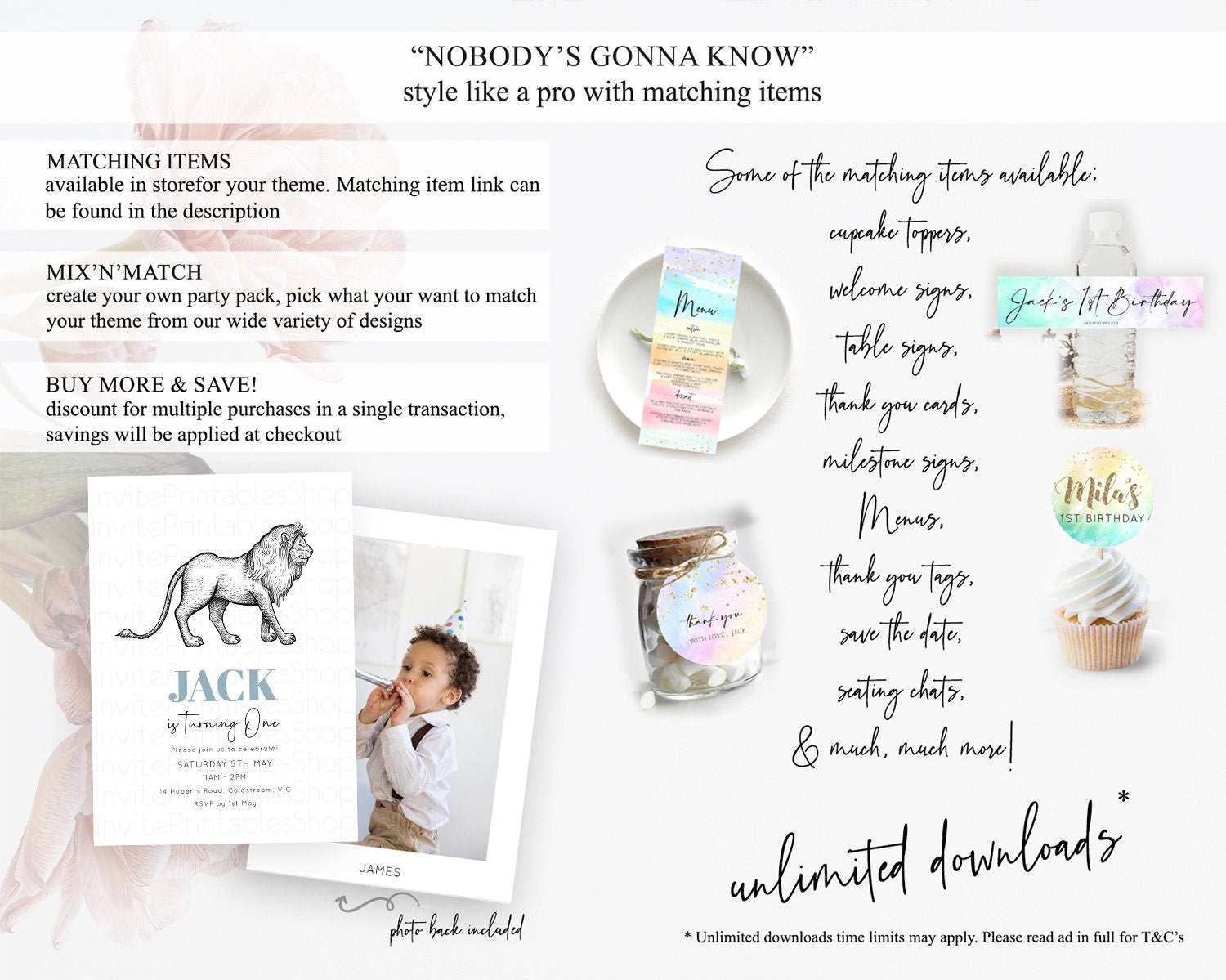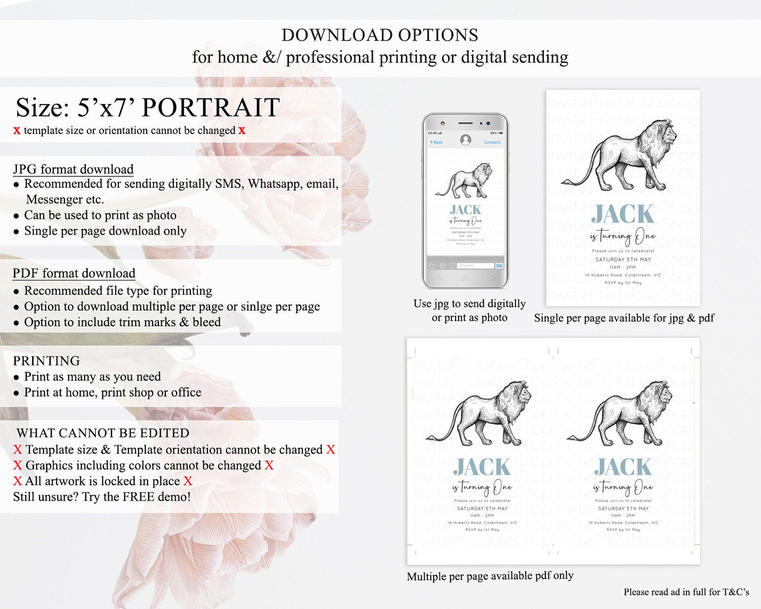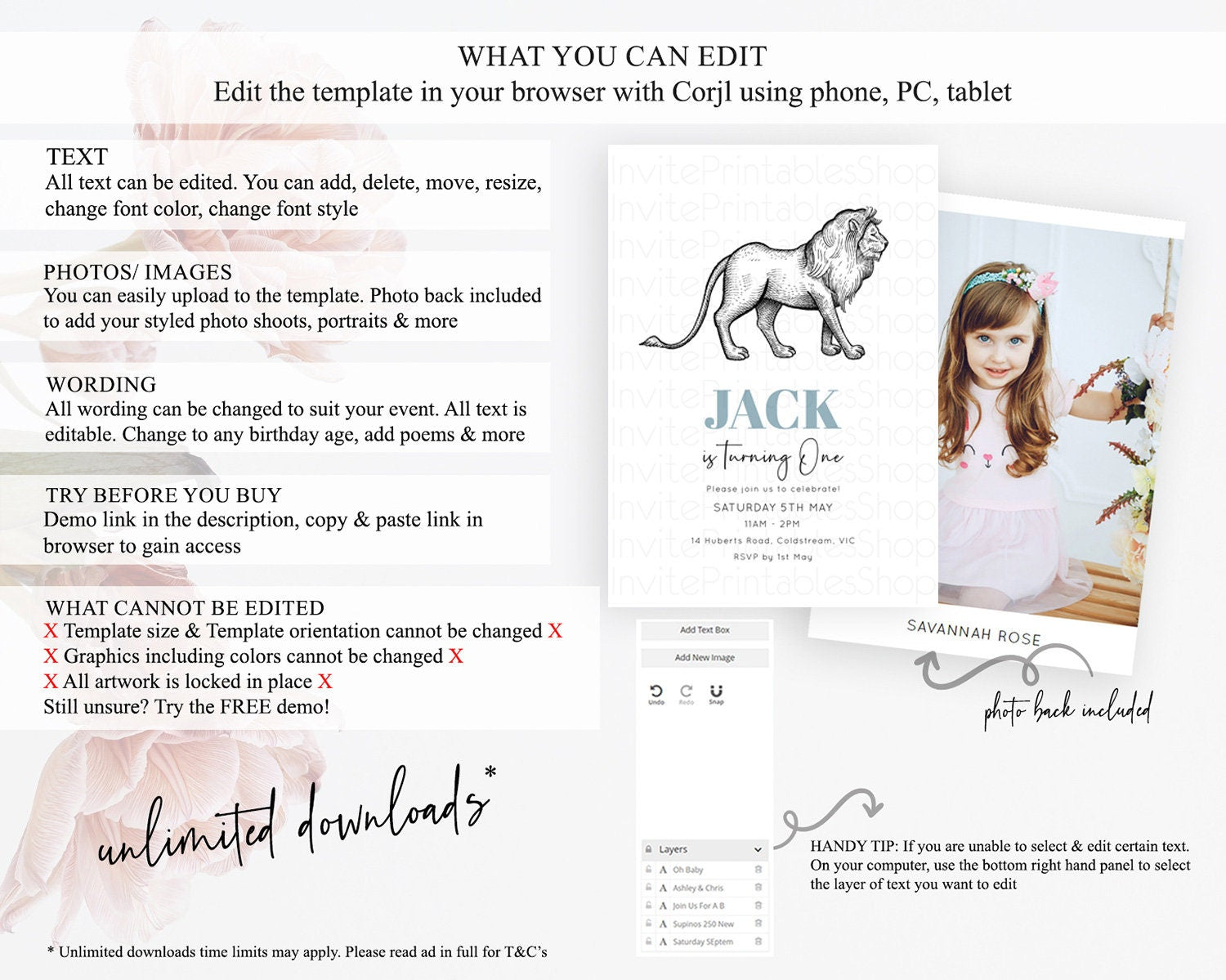 Lion Birthday Invitation Lion Invitation Modern Safari Lion Party 2 Wild 1 Safari Adventure Zoo Birthday Minimalist Lion Invites D10246