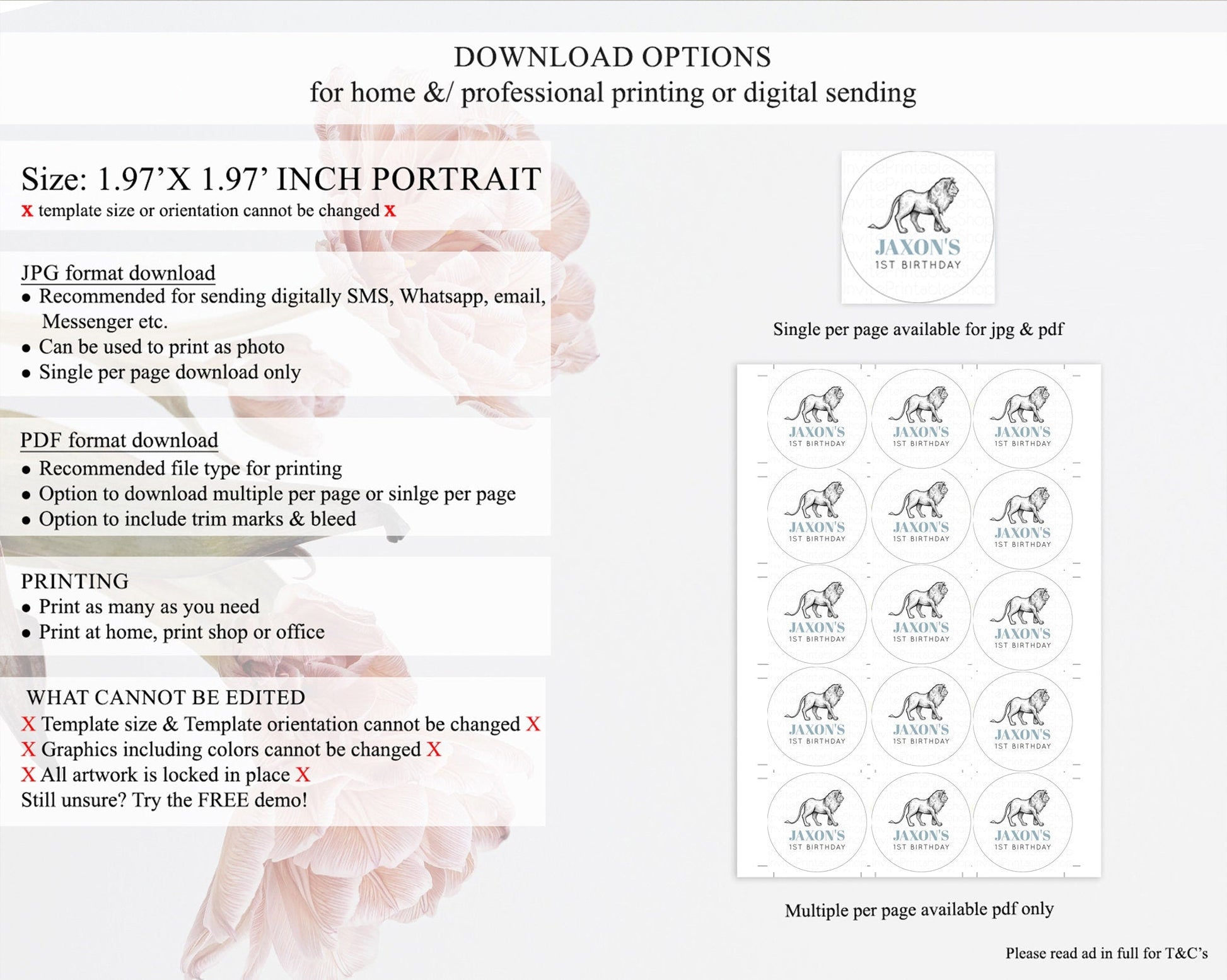 • Template size & orientation cannot be changed. Please use the demo link to confirm this product suits your needs.