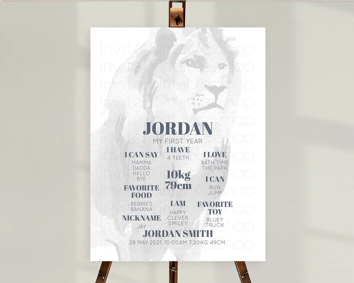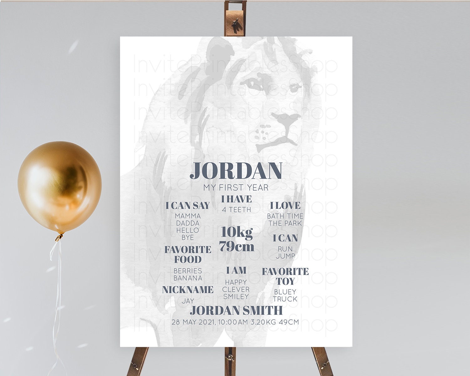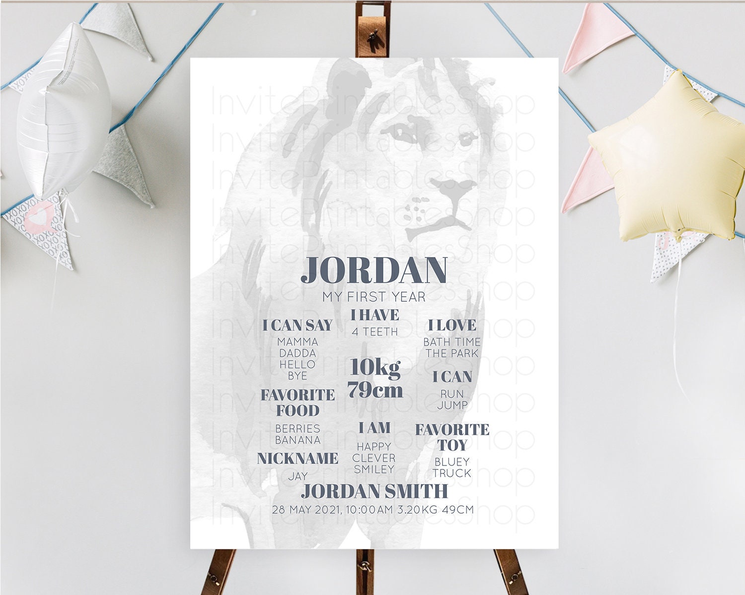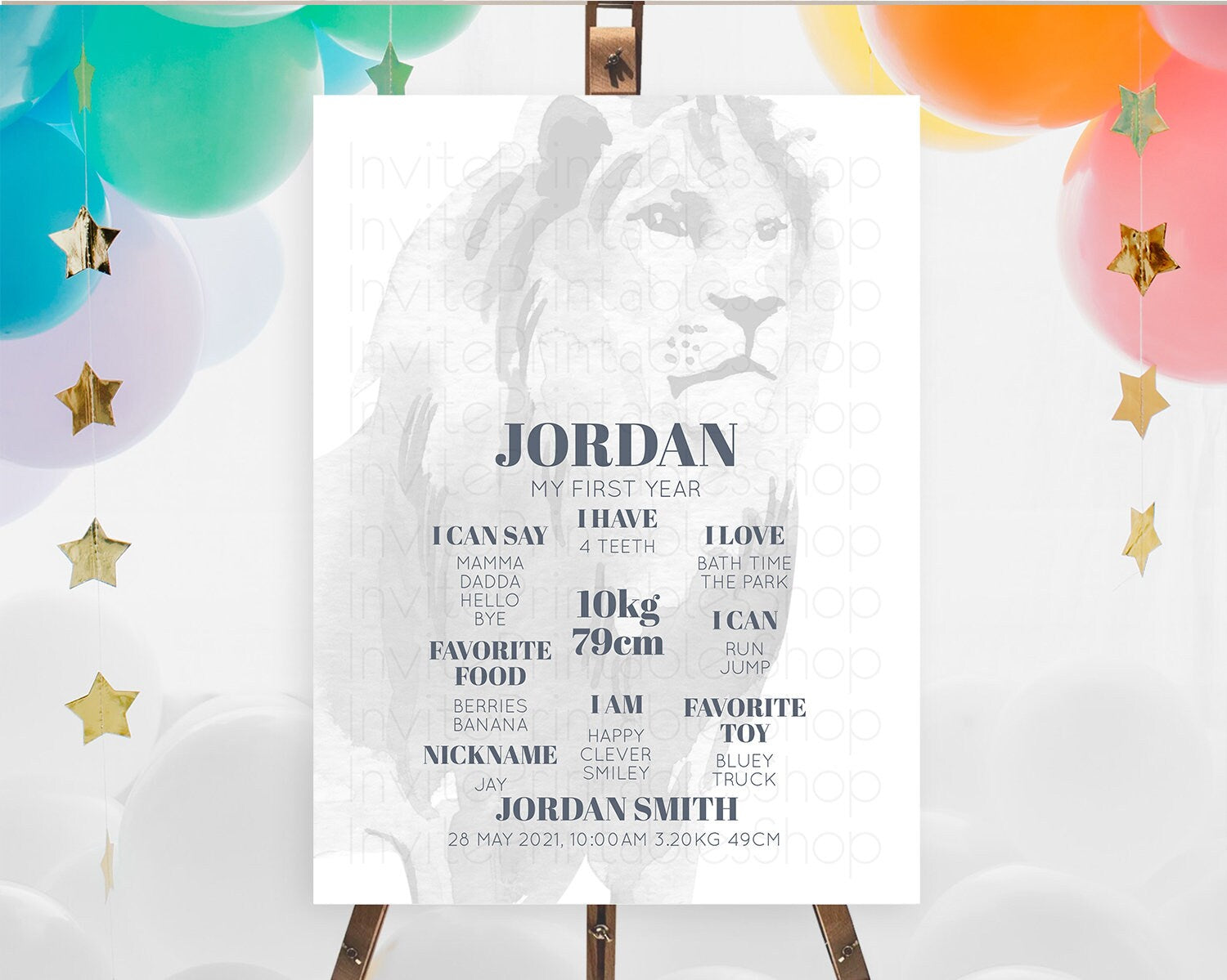 Lion First Birthday Milestone Board Lion Milestone Poster Lion Decor Safari Adventure Palm Leaf Lion First Birthday Welcome Sign D10299