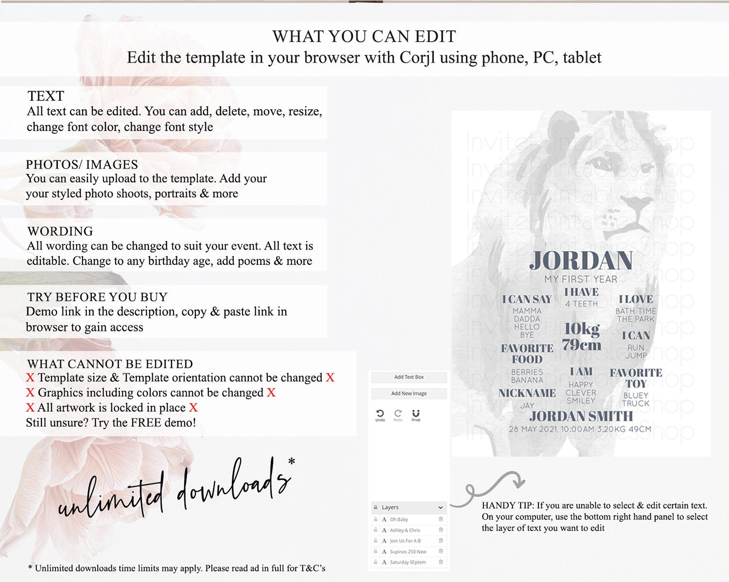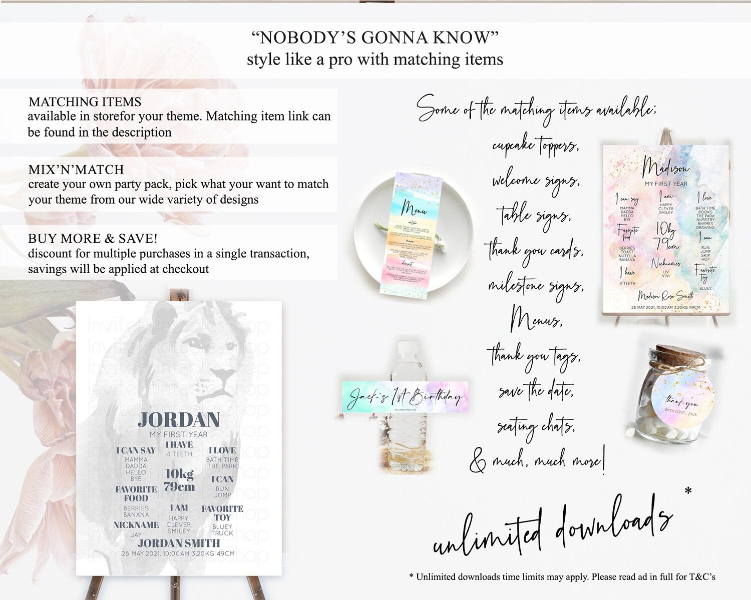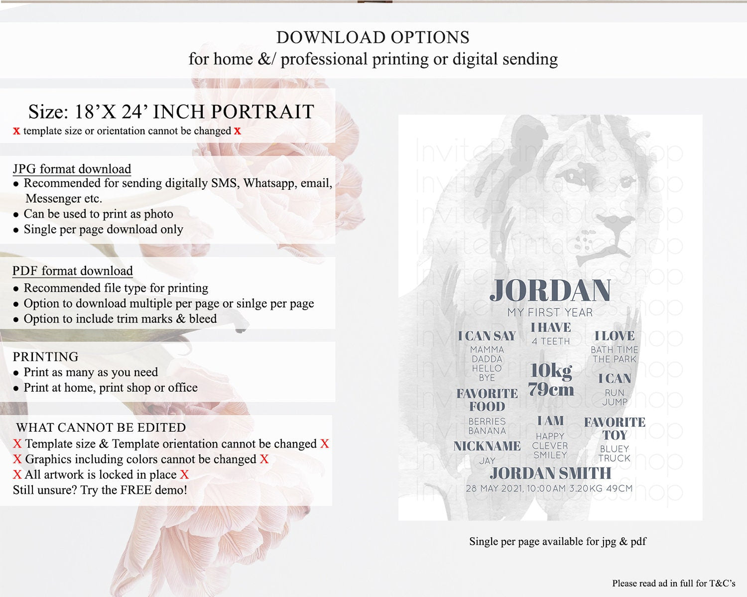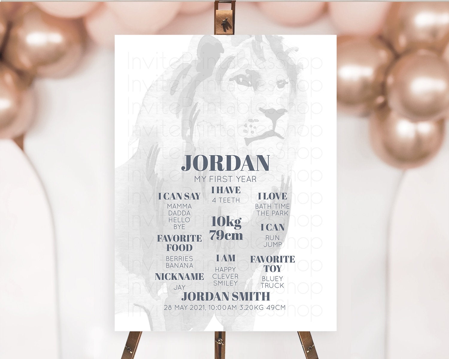 Lion First Birthday Milestone Board Lion Milestone Poster Lion Decor Safari Adventure Palm Leaf Lion First Birthday Welcome Sign D10299
