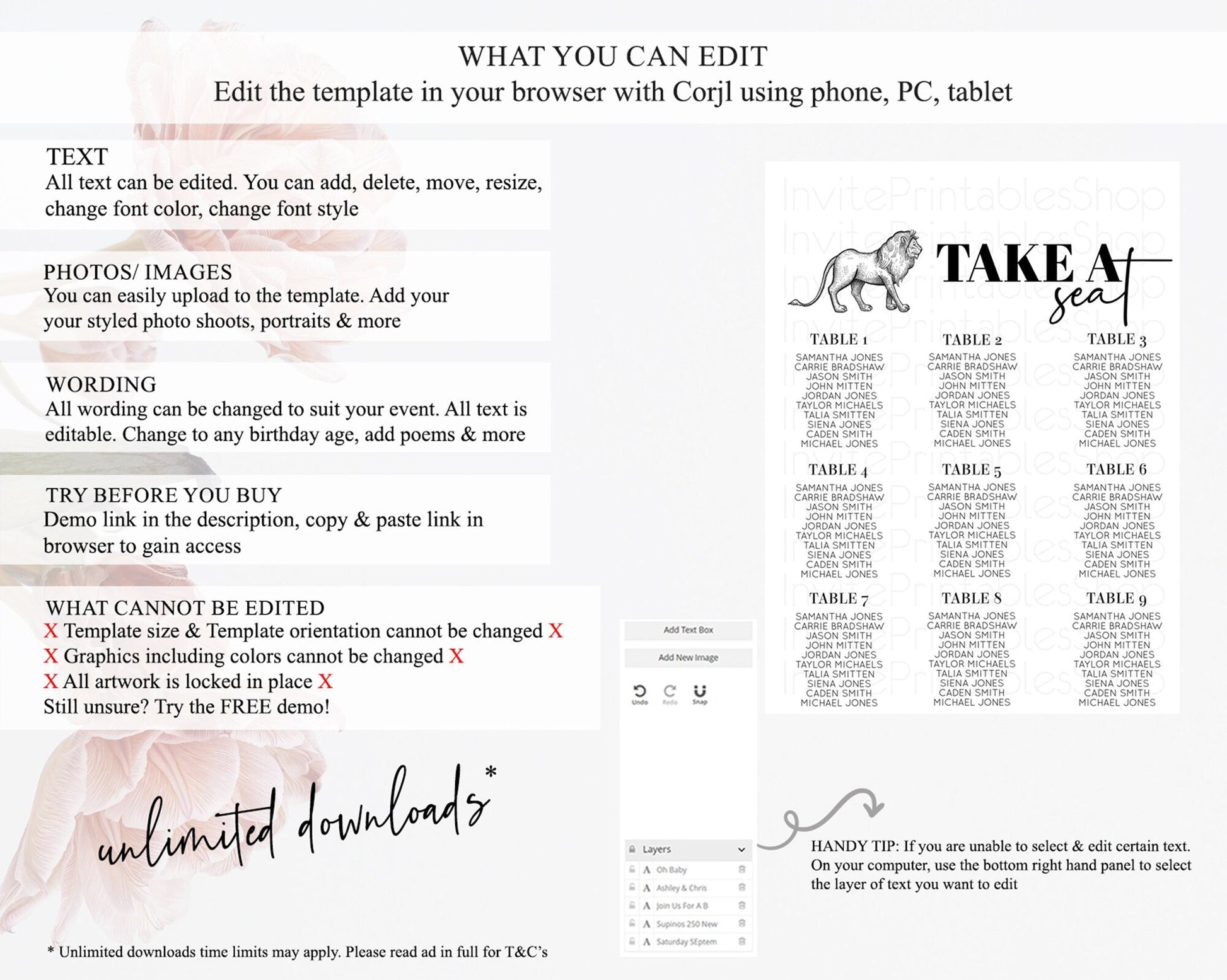 • After purchase, Corjl emails your editing link. Allow up to 15 minutes for delivery.