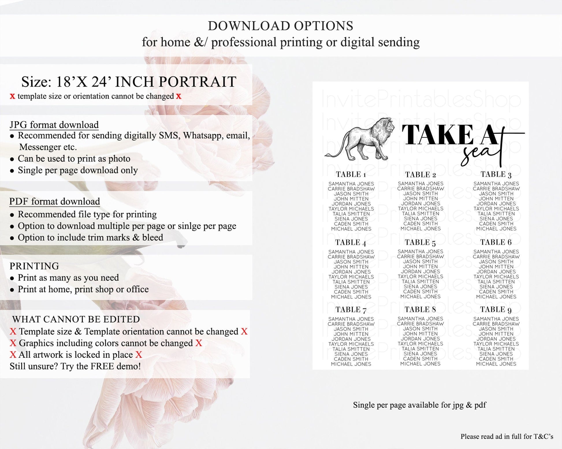 • Template size & orientation cannot be changed. Please use the demo link to confirm this product suits your needs.