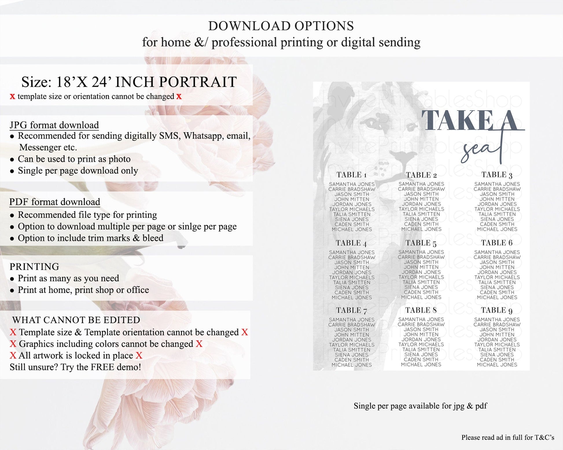Lion Seating Chart Safari Lion Seating Chart Modern Lion Party Decor Safari Adventure Party Minimalist Lion Seating Sign Take A Seat D10299