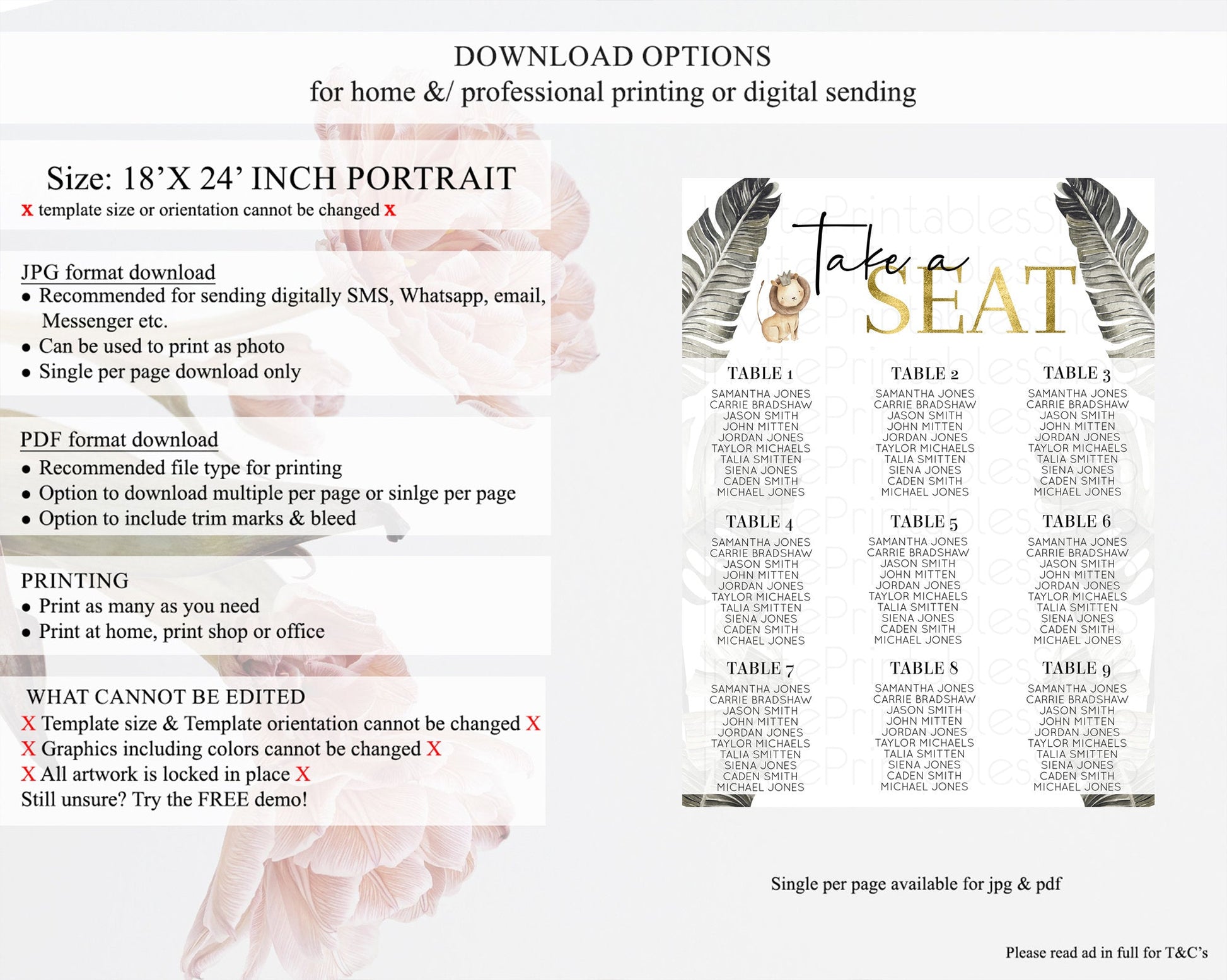 Lion Seating Chart Safari Lion Seating Chart Modern Lion Party Decor Safari Adventure Party Minimalist Lion Seating Sign Take A Seat D10599