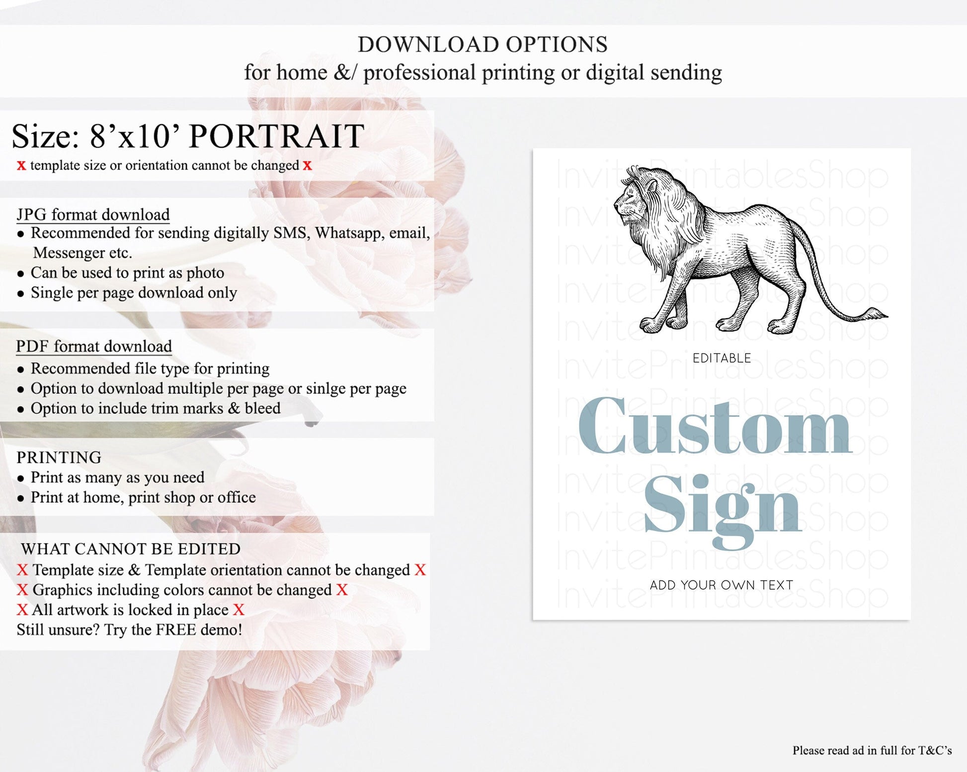 • Template size & orientation cannot be changed. Please use the demo link to confirm this product suits your needs.
