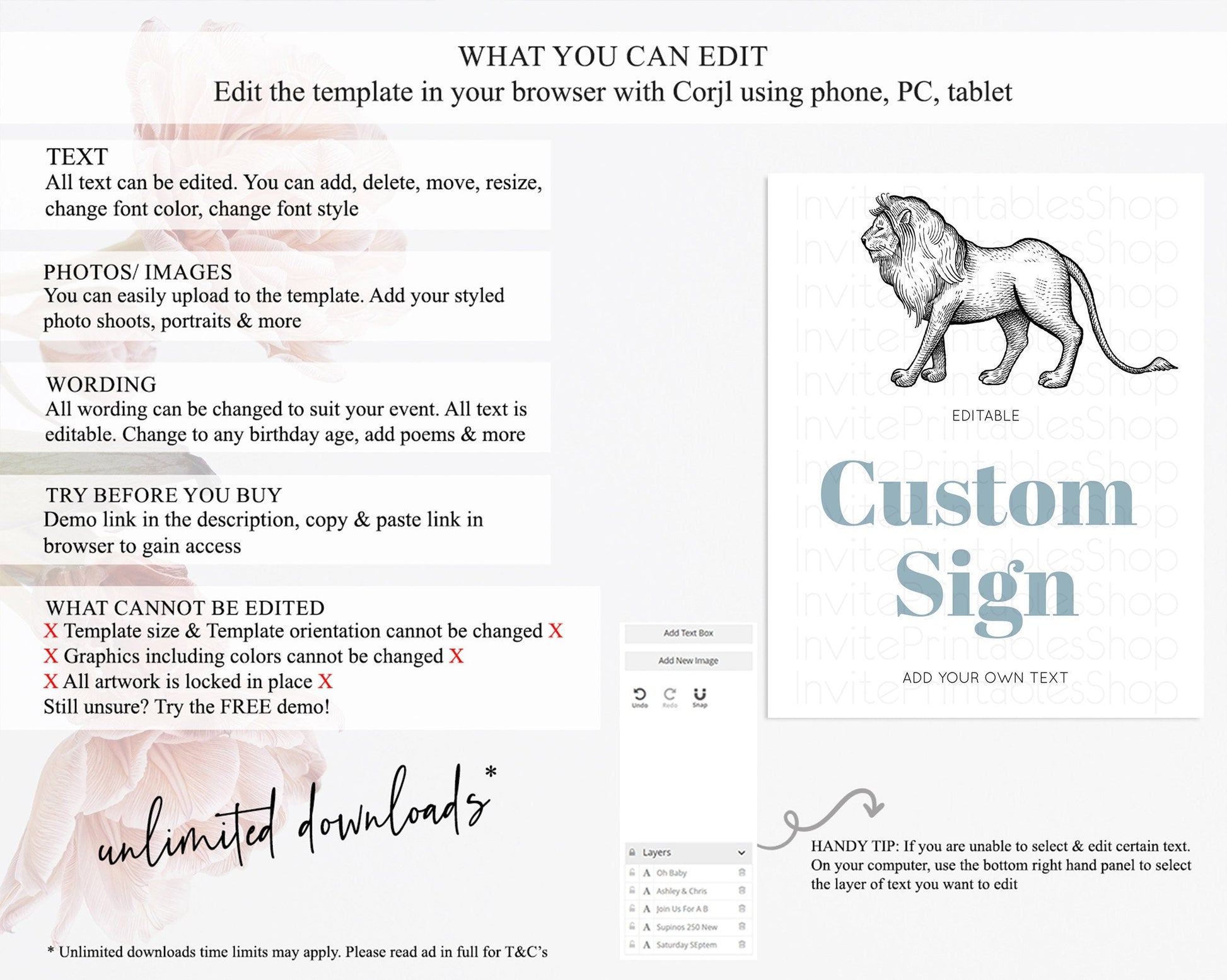 • After purchase, Corjl emails your editing link. Allow up to 15 minutes for delivery.