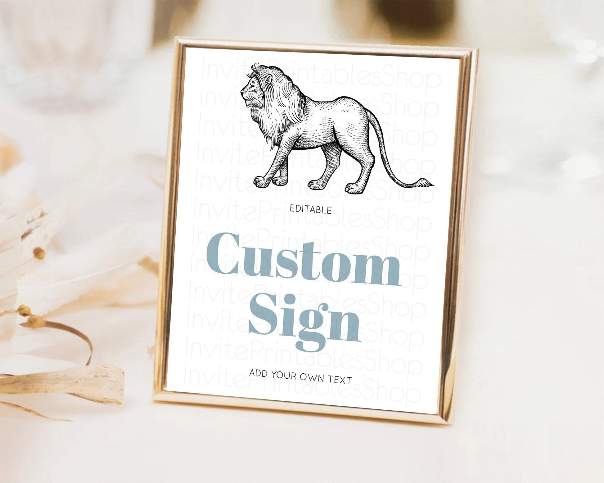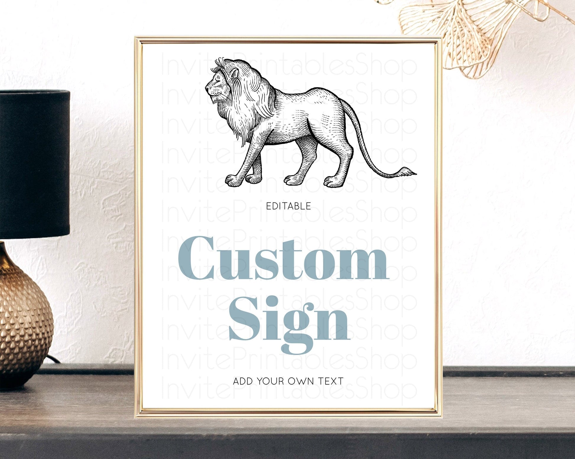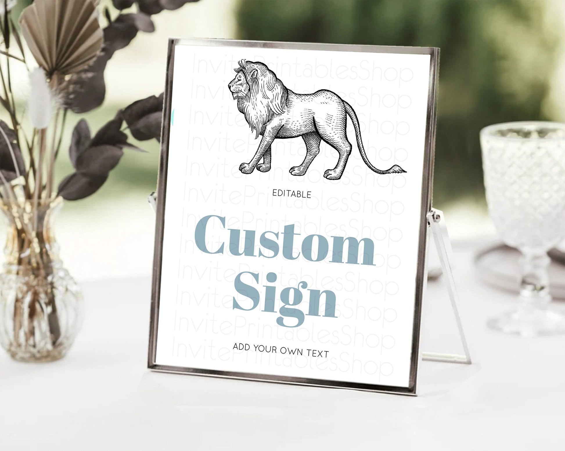 Lion Table Sign Decor Lion Safari Adventure Party Dried Palm Ferns Zoo 1st Birthday Baptism Baby Shower Bridal Shower Wedding D10246