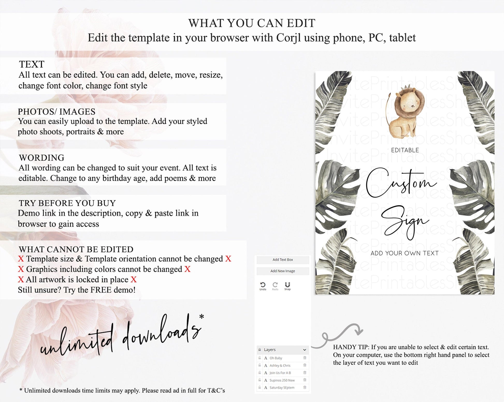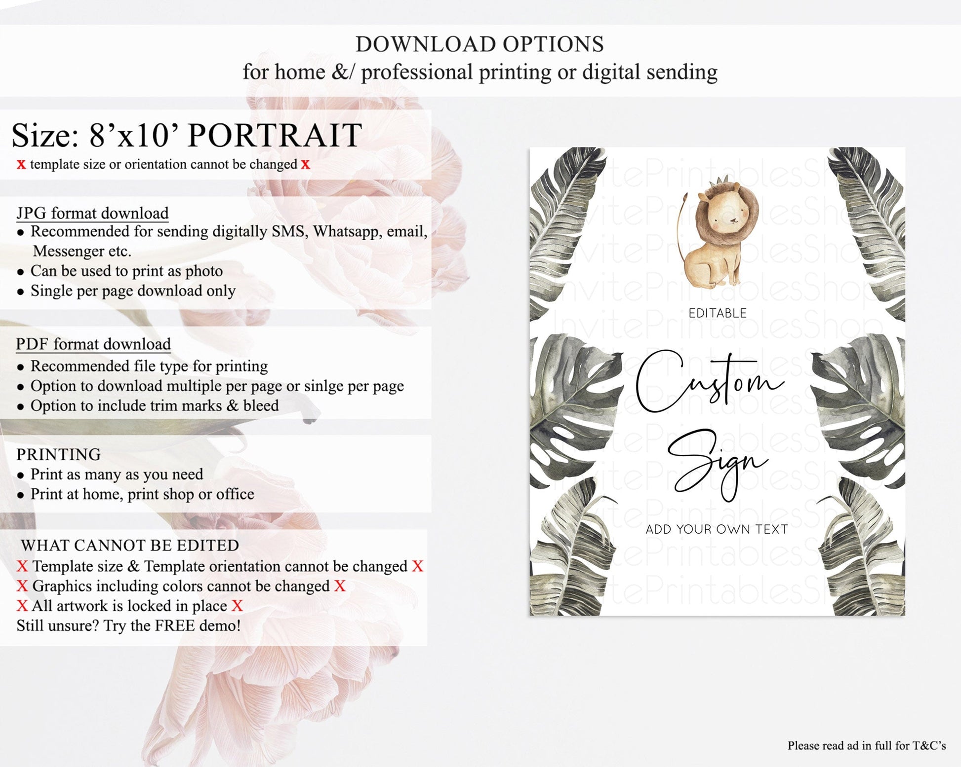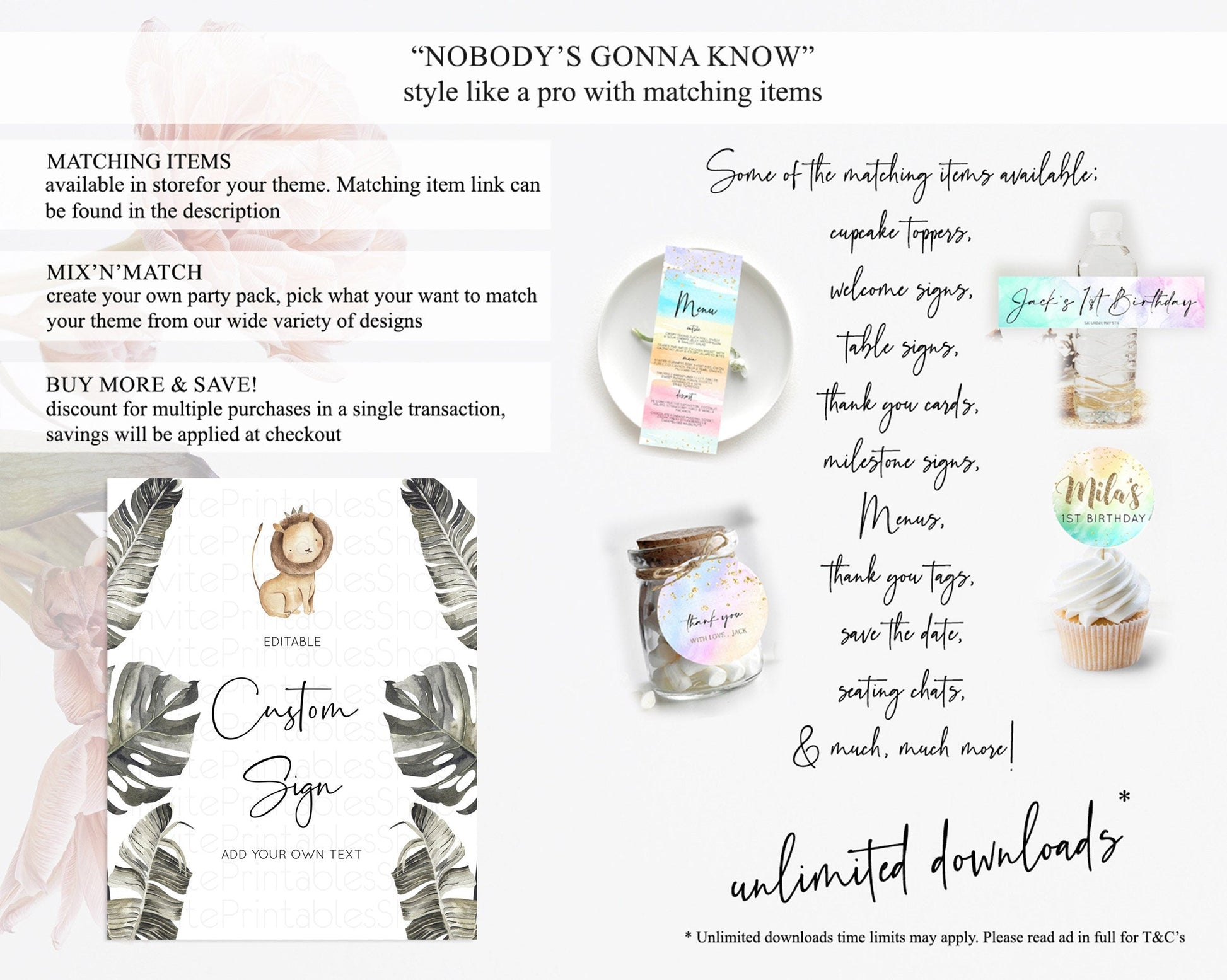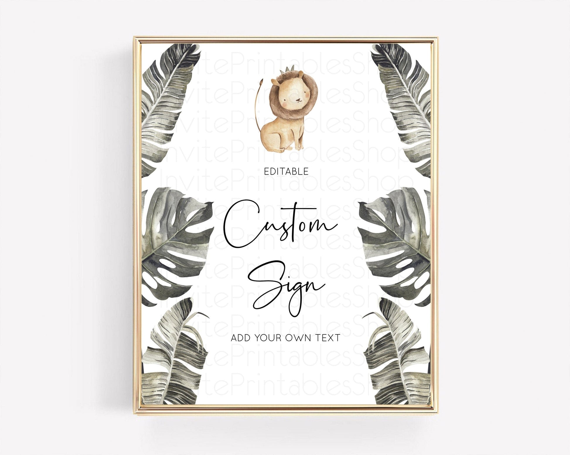 Lion Table Sign Decor Lion Safari Adventure Party Dried Palm Ferns Zoo 1st Birthday Baptism Baby Shower Bridal Shower Wedding D10599