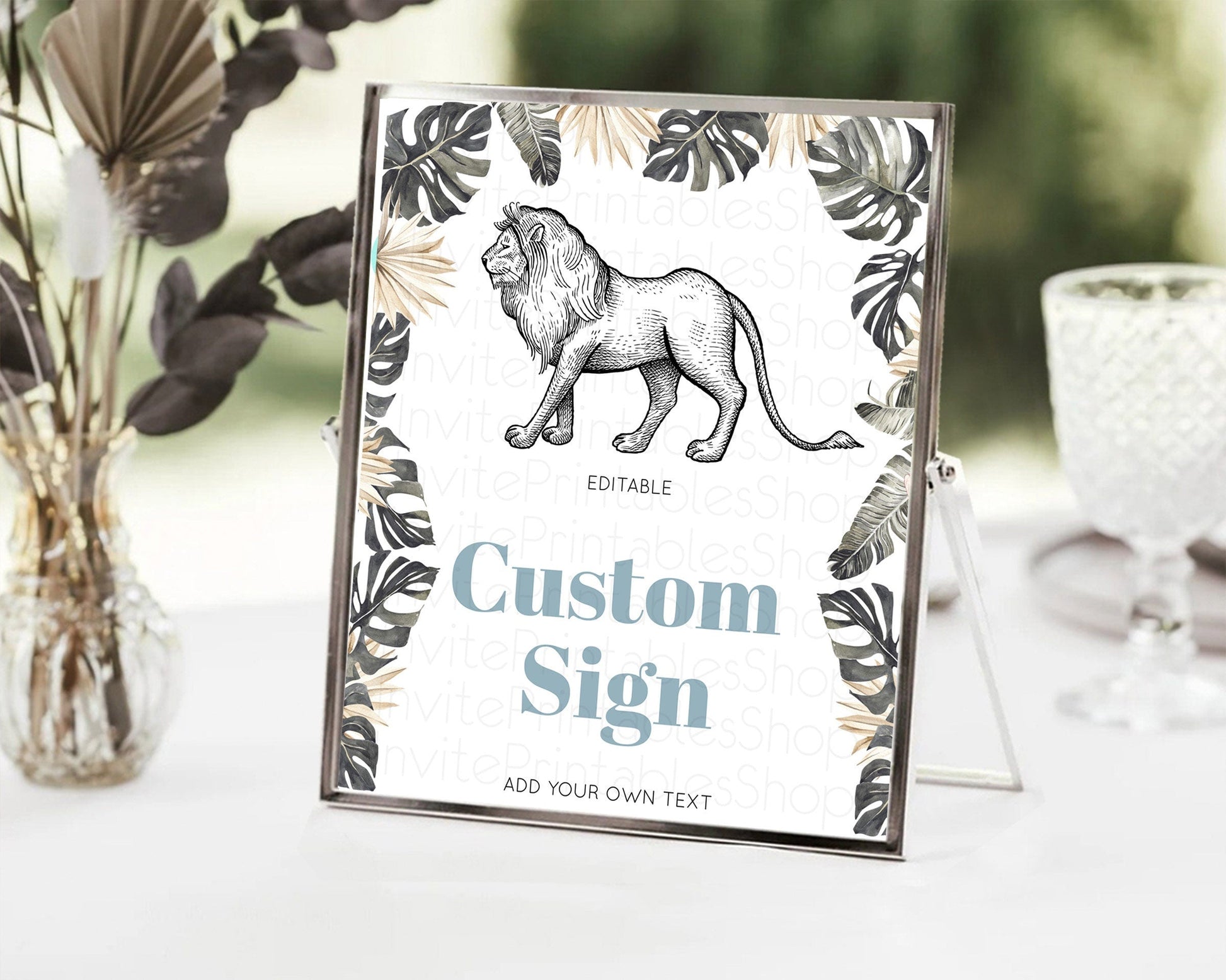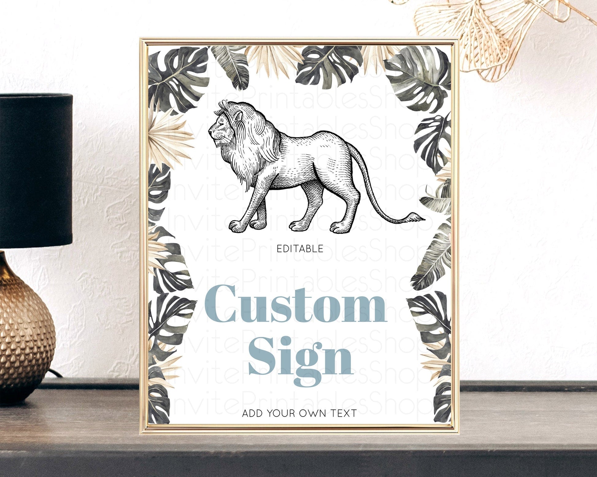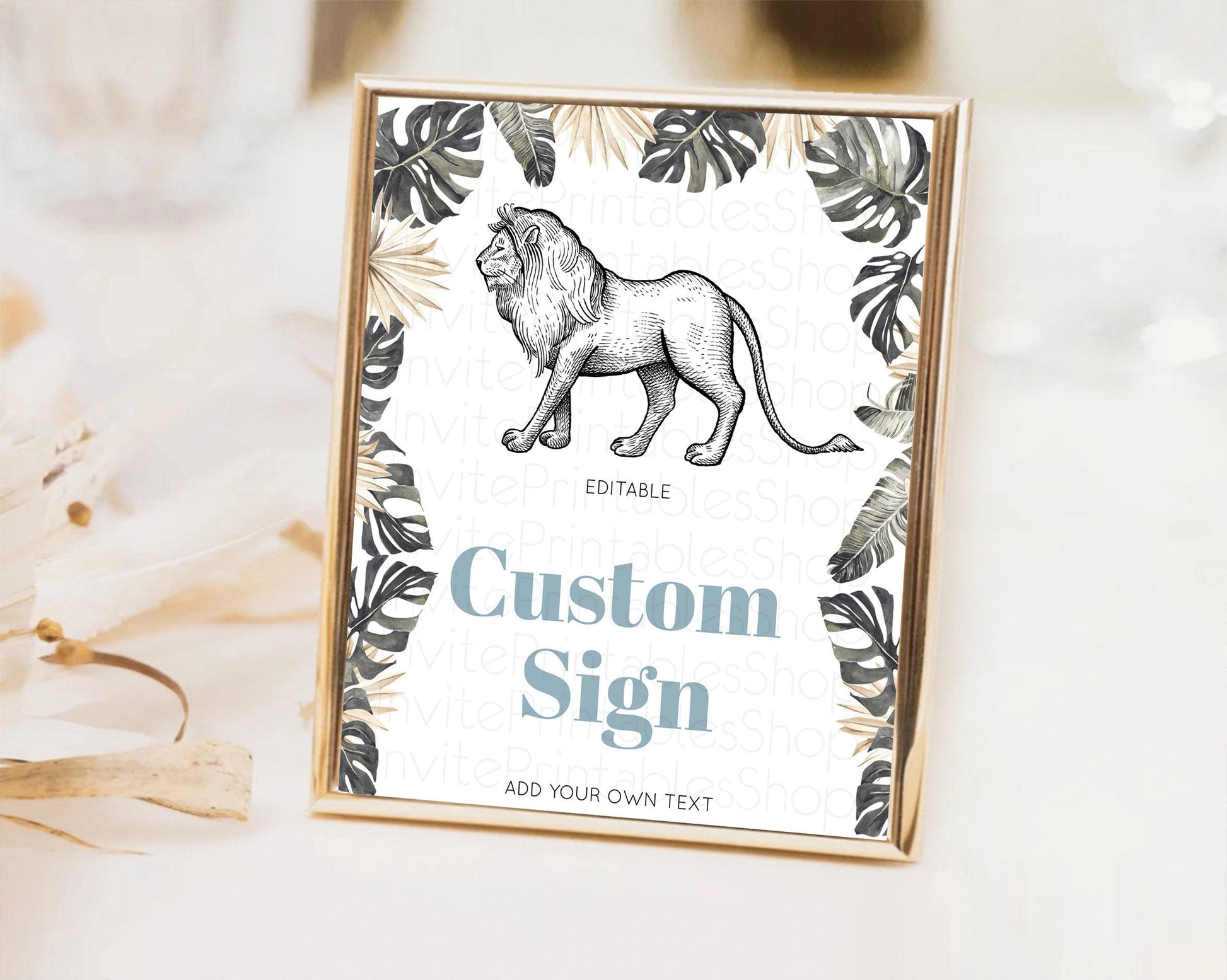 Lion Table Sign Decor Lion Safari Adventure Party Dried Palm Ferns Zoo 1st Birthday Baptism Baby Shower Bridal Shower Wedding D10807