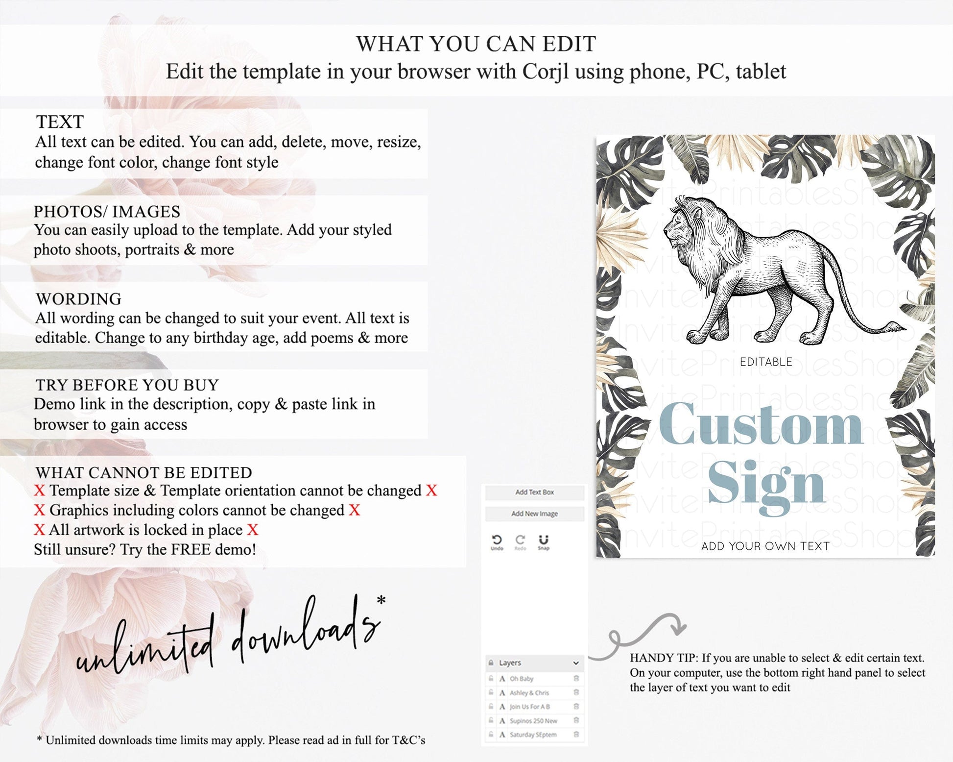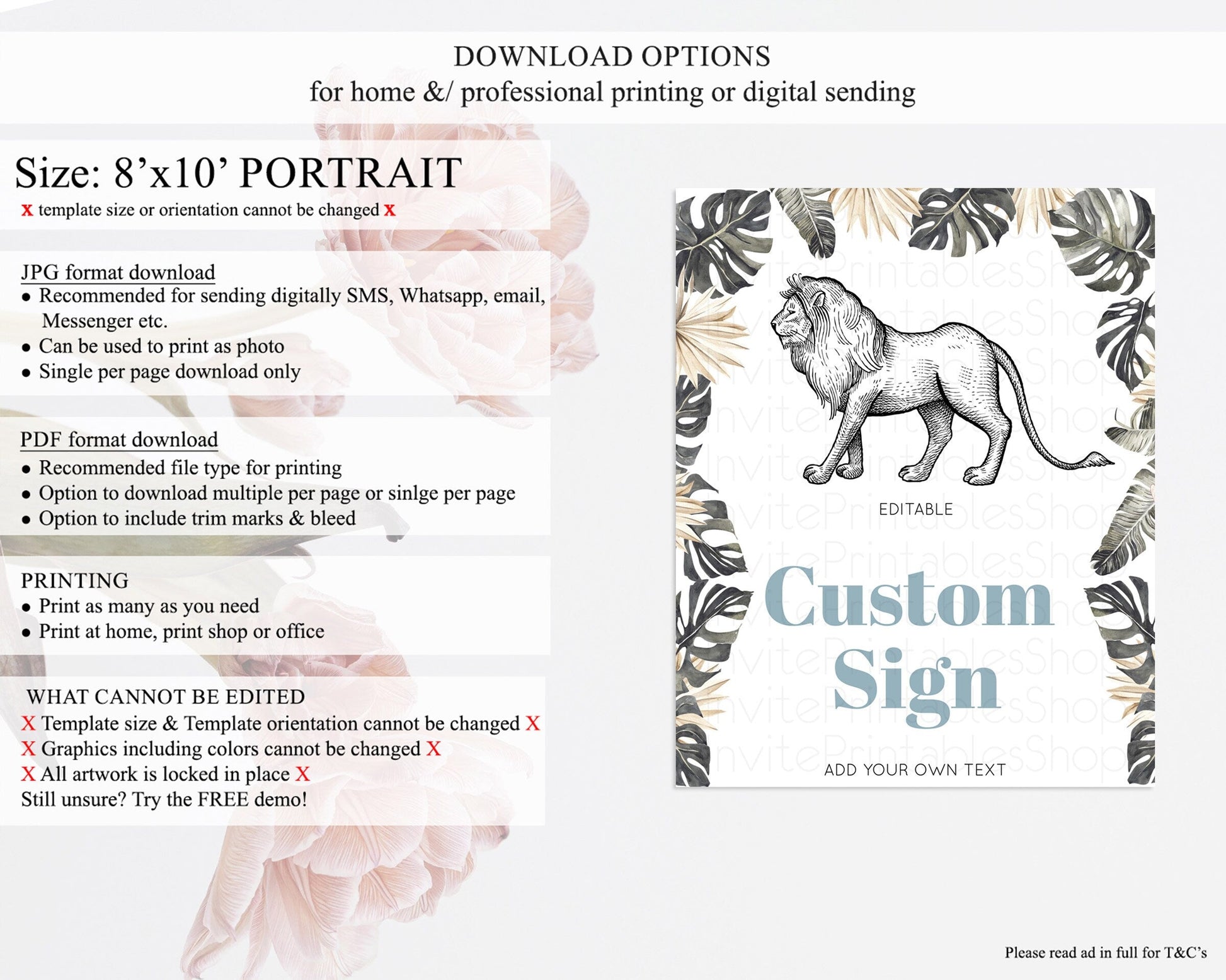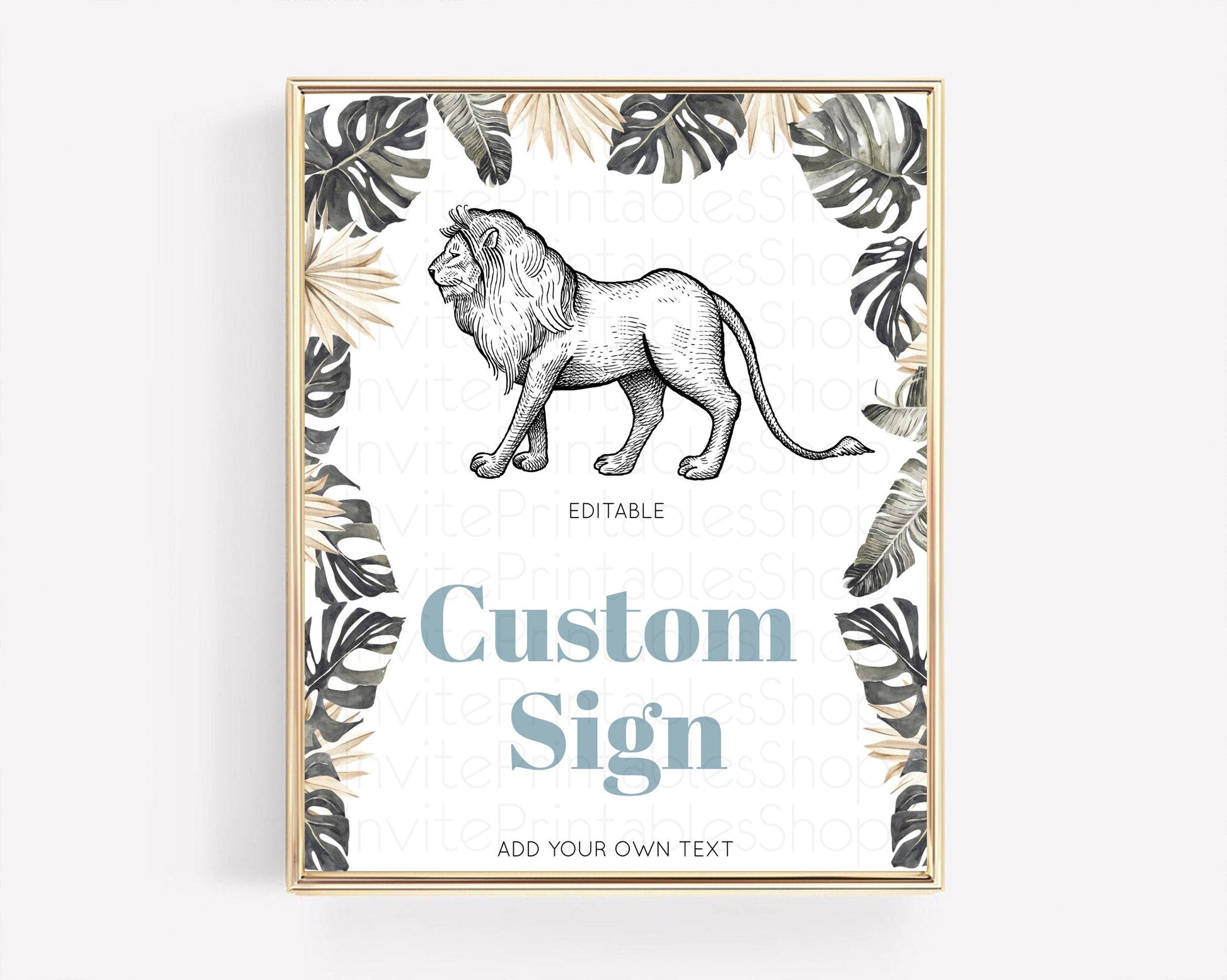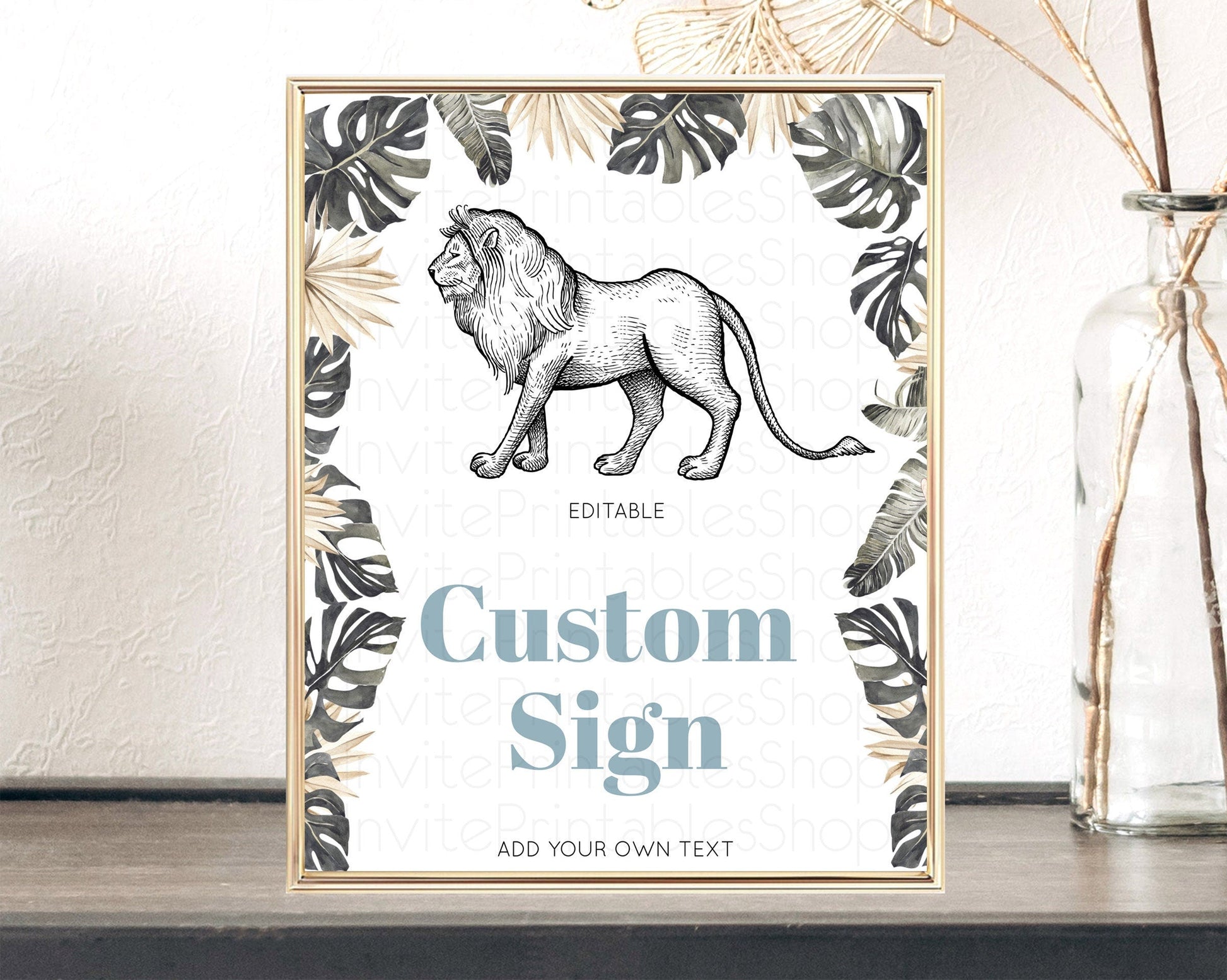 Lion Table Sign Decor Lion Safari Adventure Party Dried Palm Ferns Zoo 1st Birthday Baptism Baby Shower Bridal Shower Wedding D10807