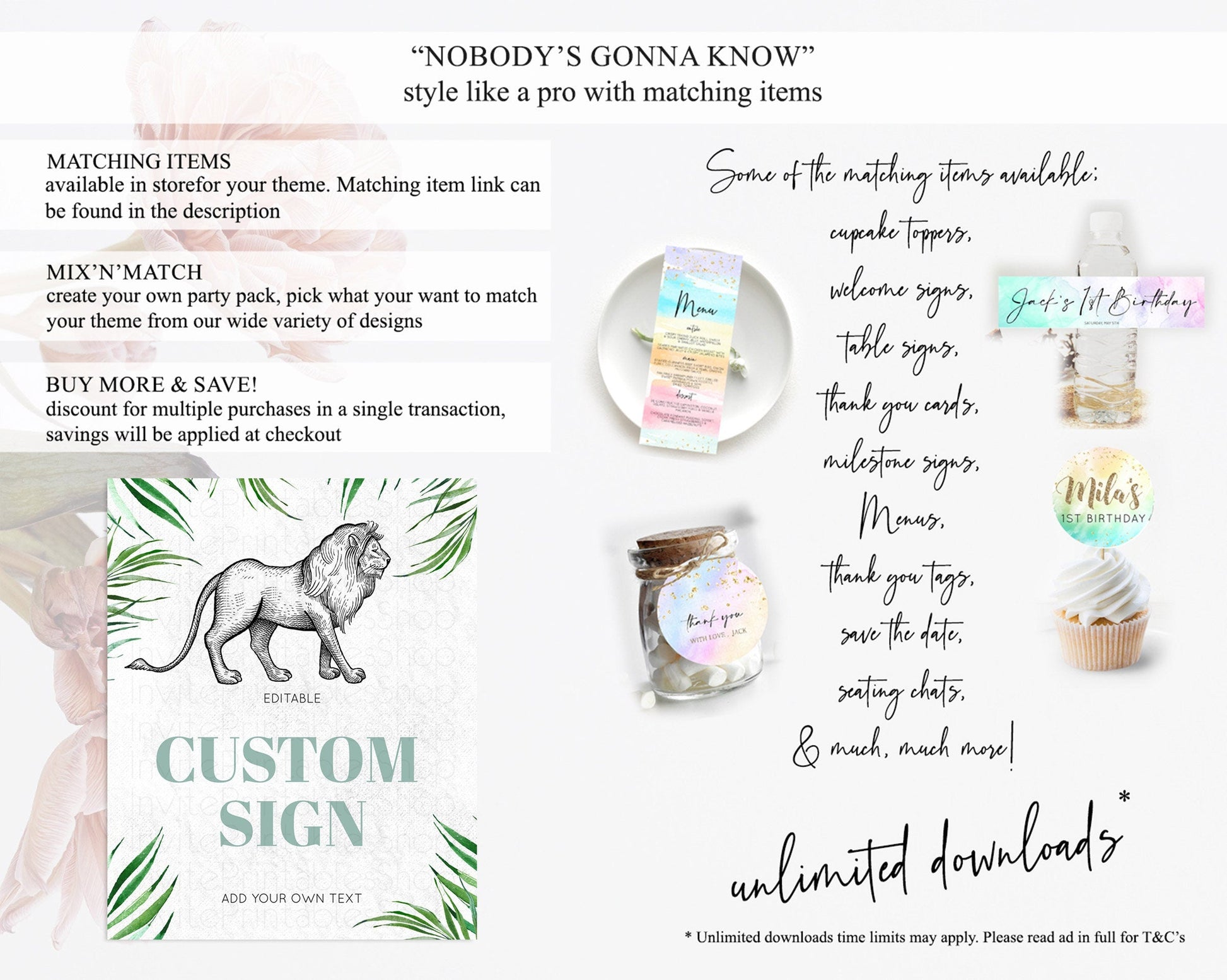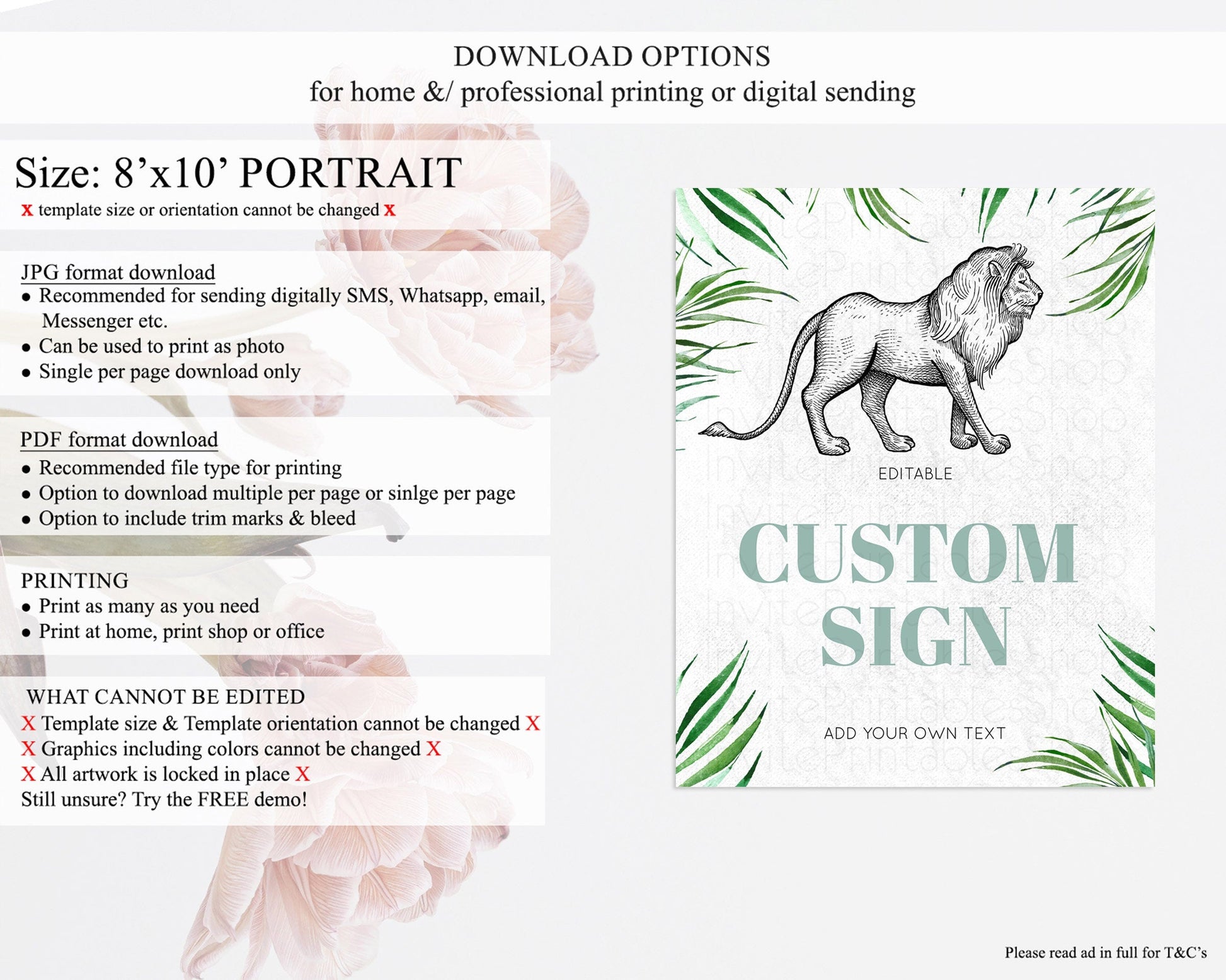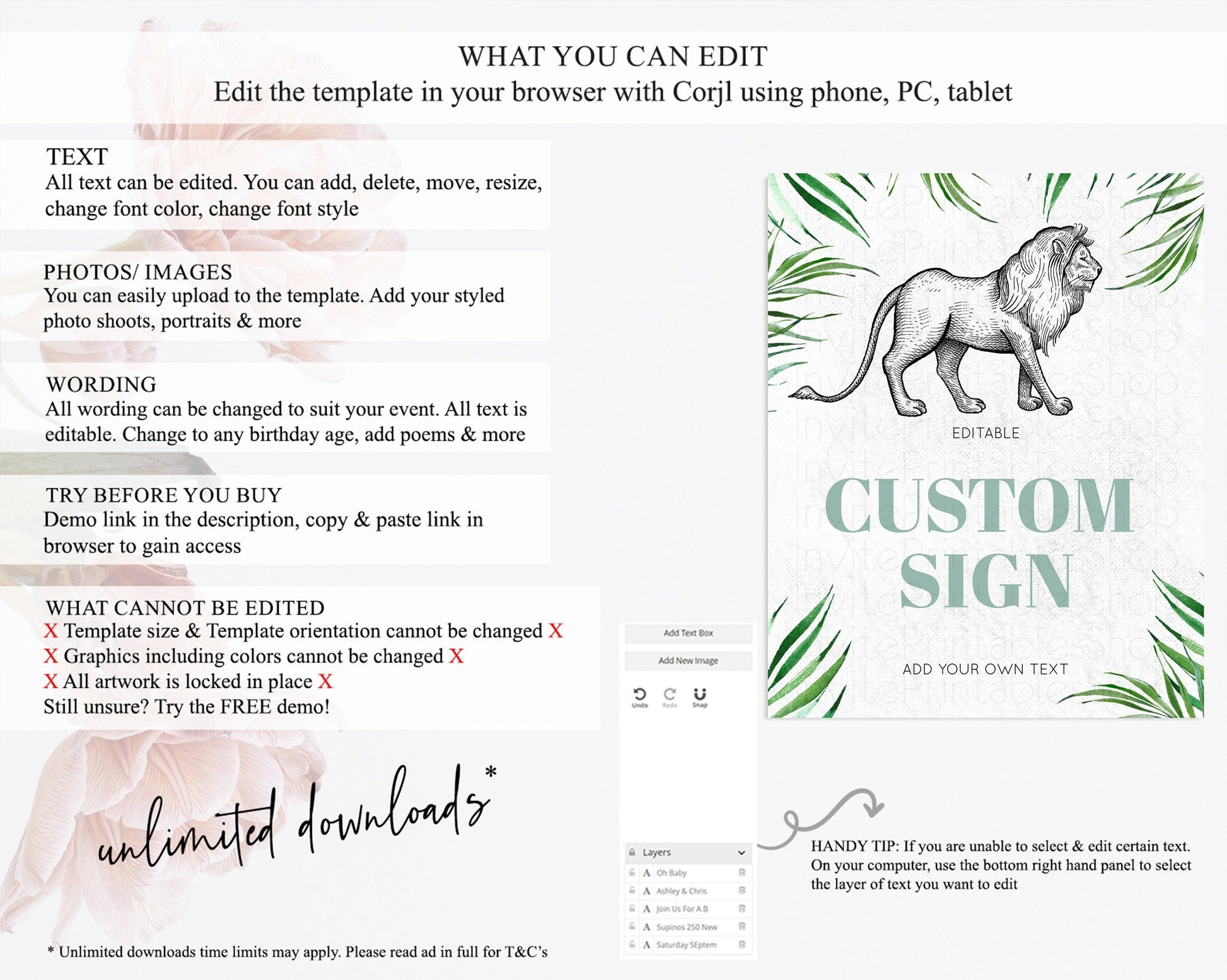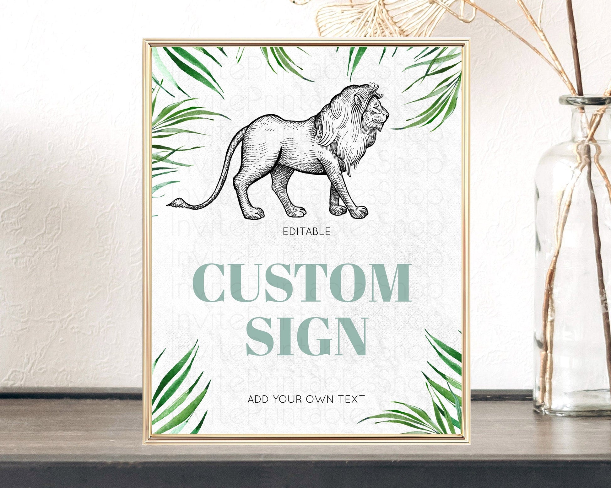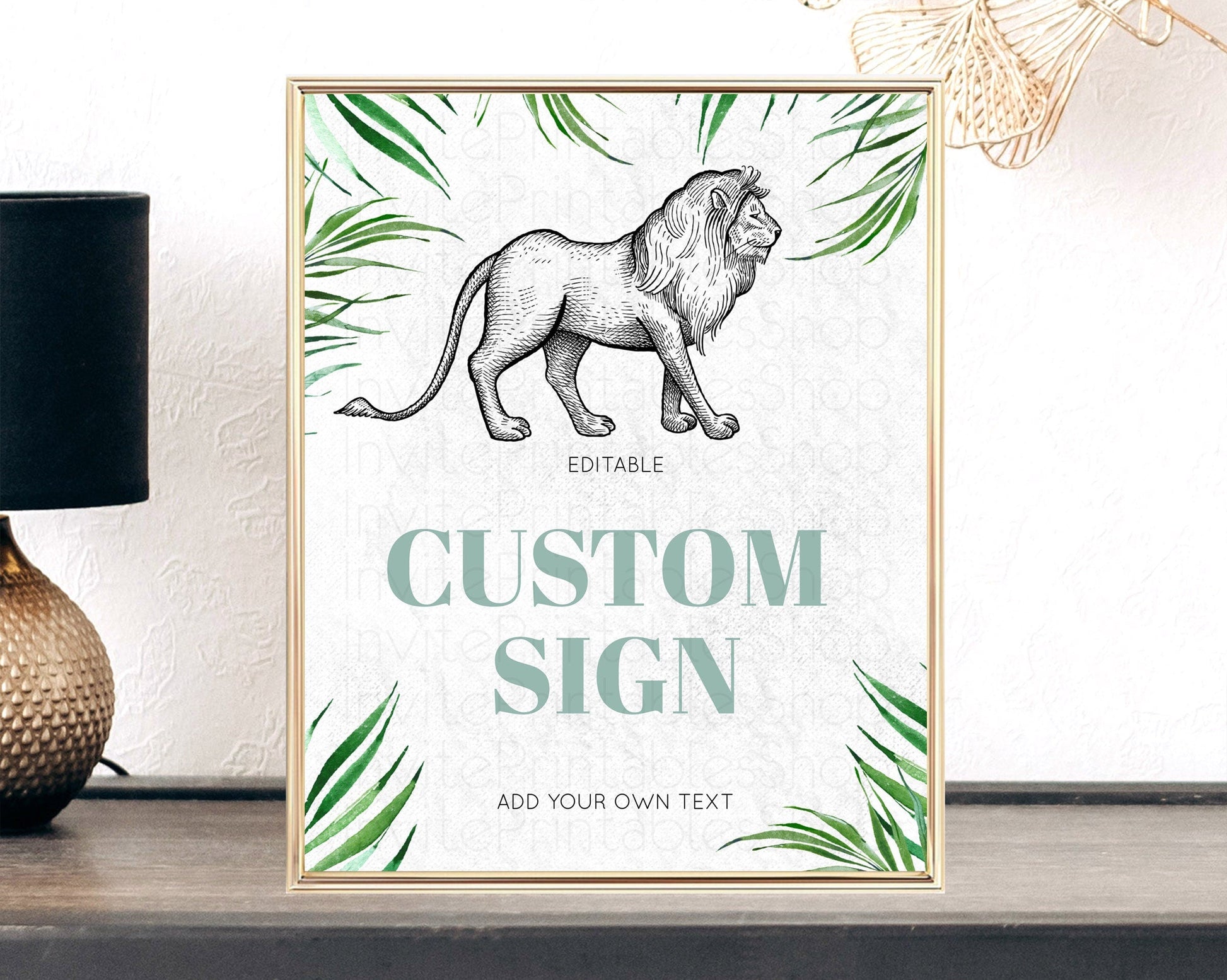 Lion Table Sign Decor Lion Safari Adventure Party Dried Palm Ferns Zoo 1st Birthday Baptism Baby Shower Bridal Shower Wedding D10845