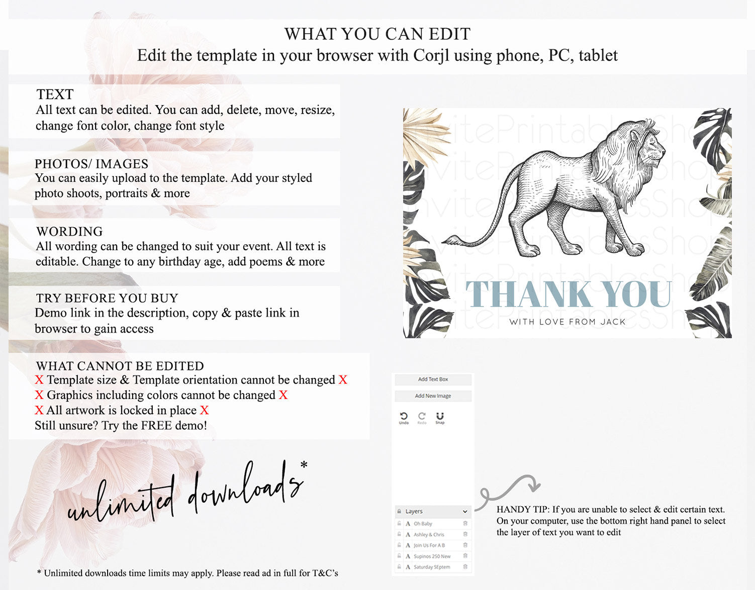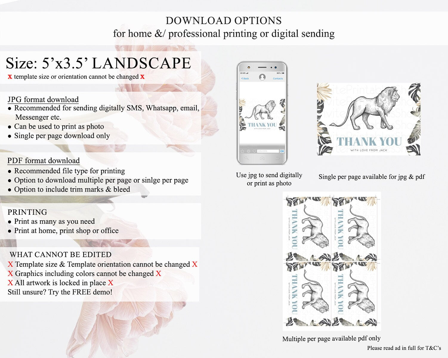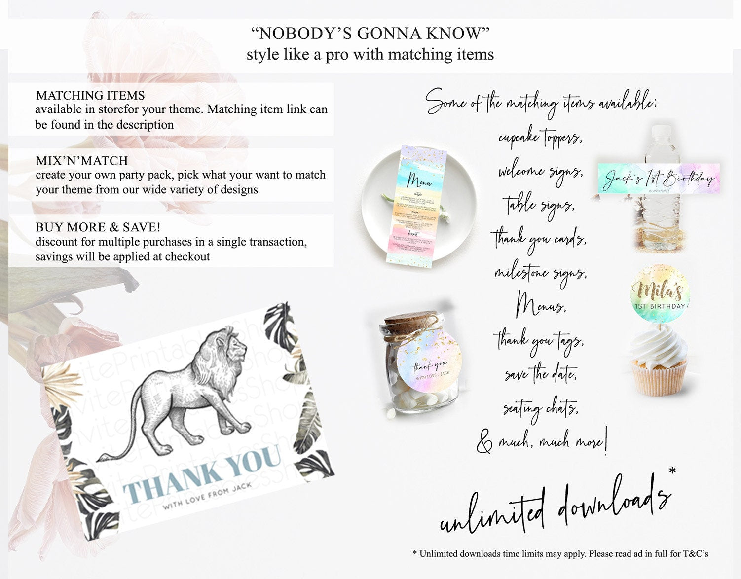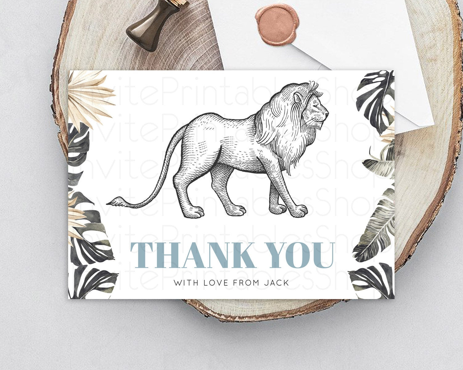 Lion Thank You Lion Thank You Card Lion Party Birthday Thank You Card Safari Lion Cards Dried Palm Fern Lion Teacher Thank You Cards D10807