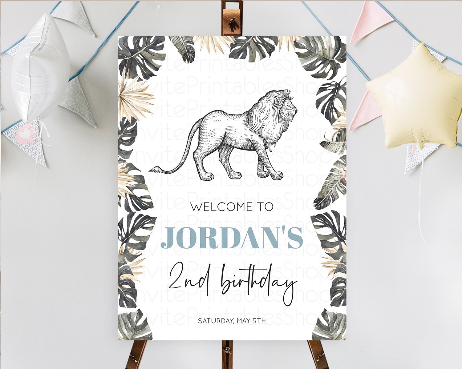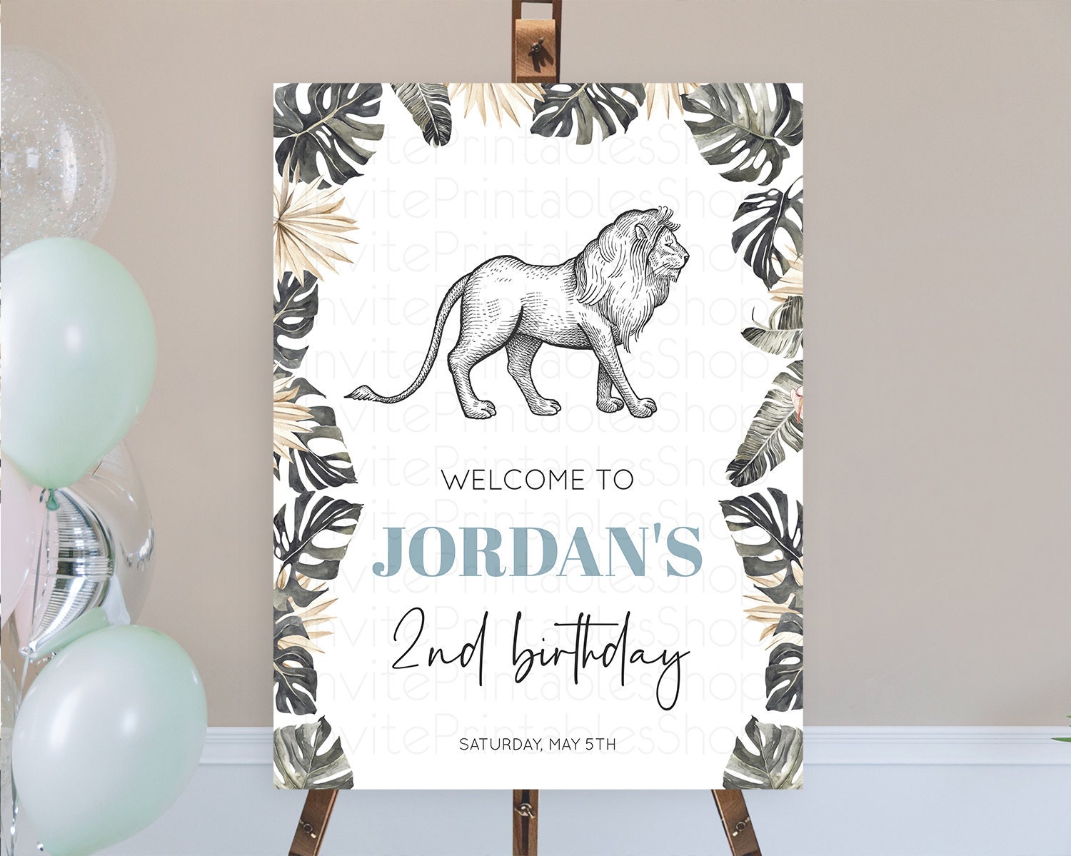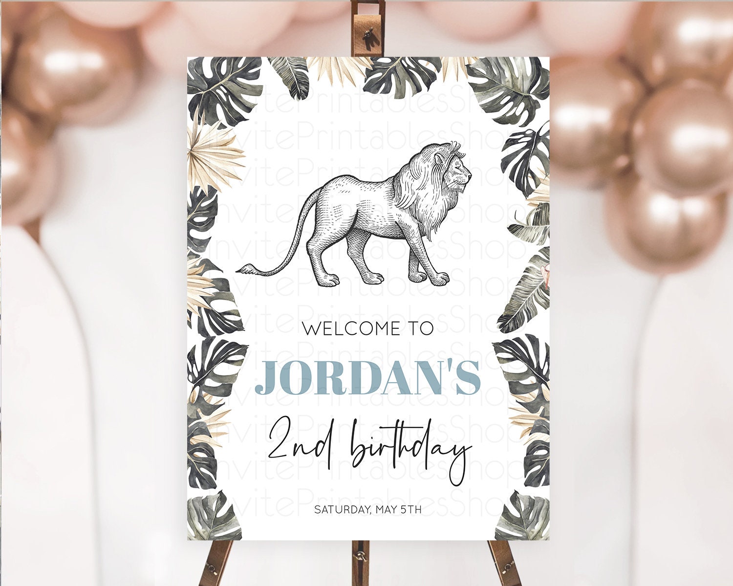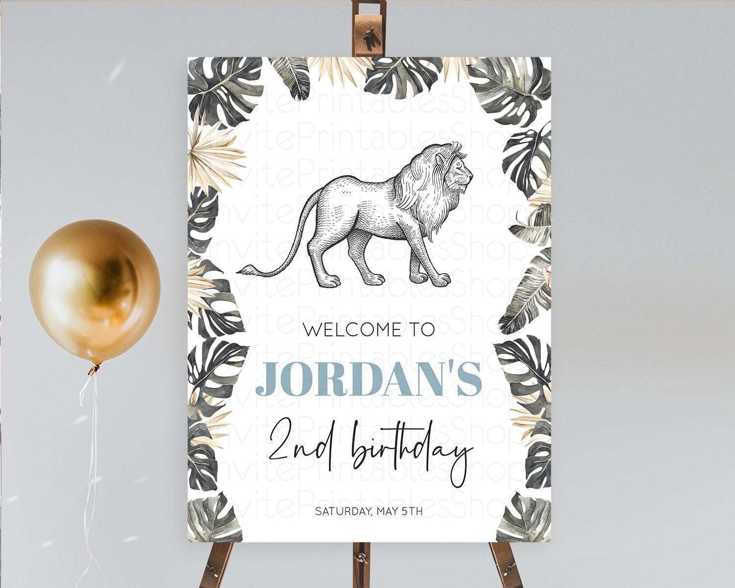 Lion Welcome Sign Lion Welcome Board Lion Party Welcome Poster Dried Palm Fern Safari Party Decor Lion First Birthday Welcome Sign D10807