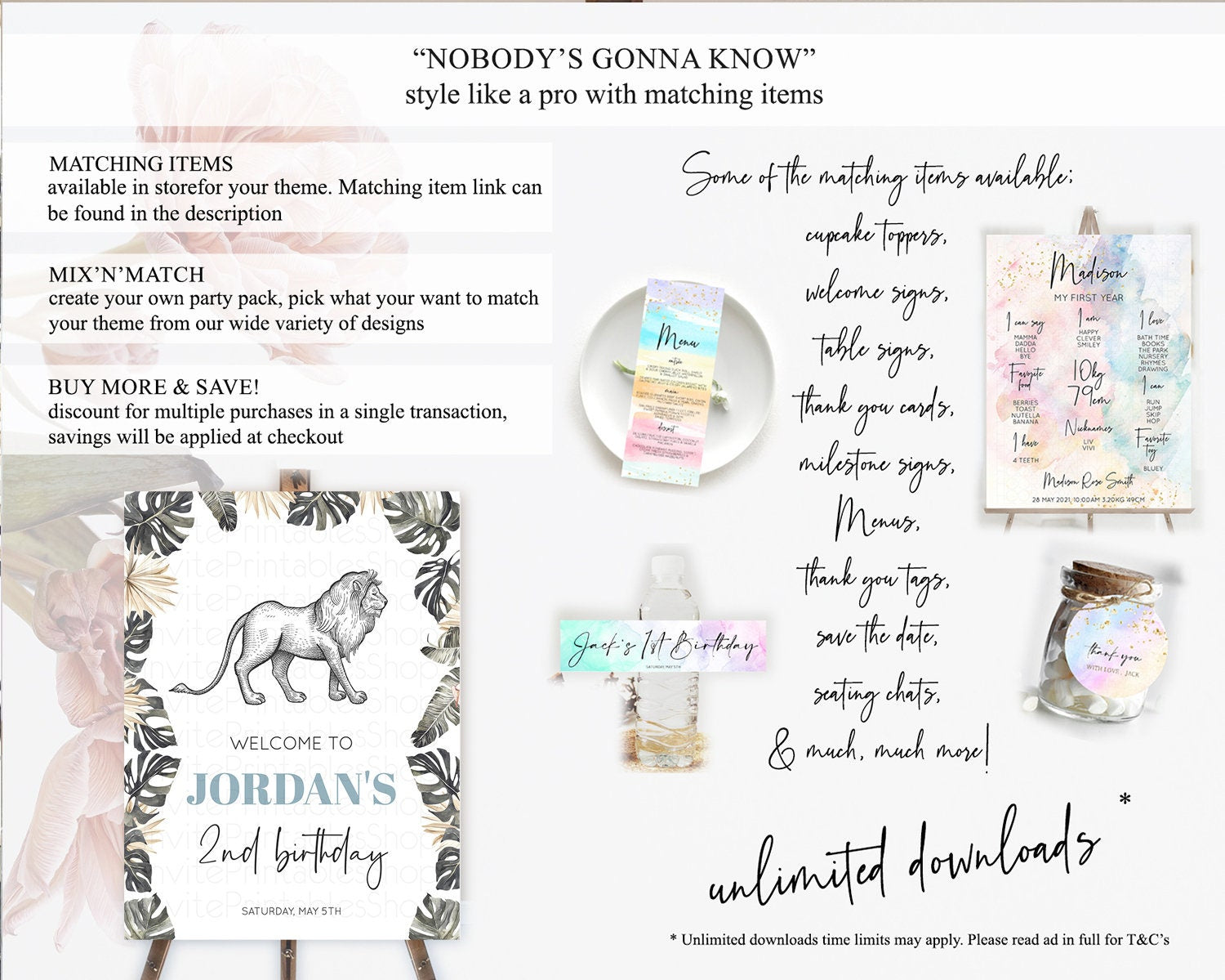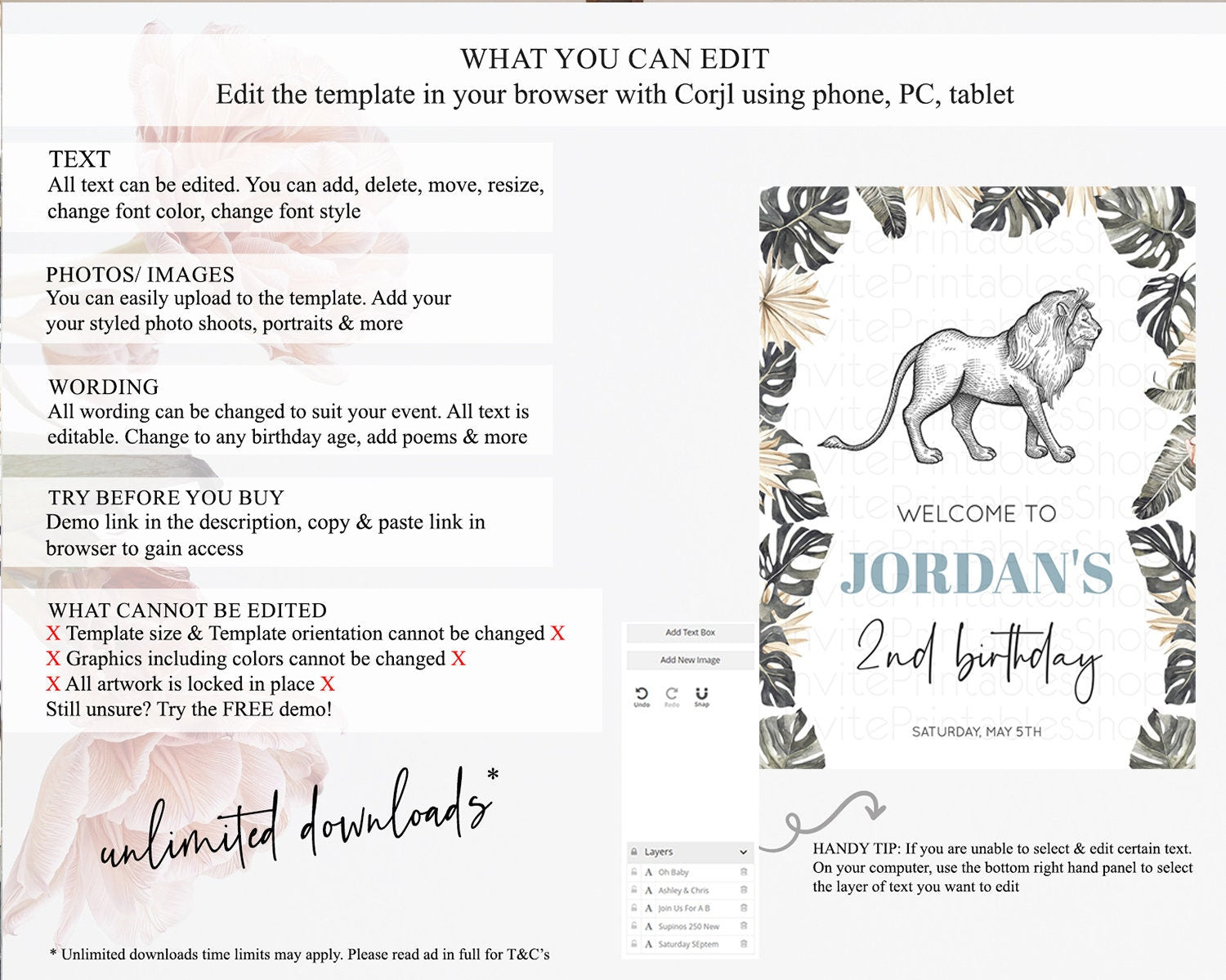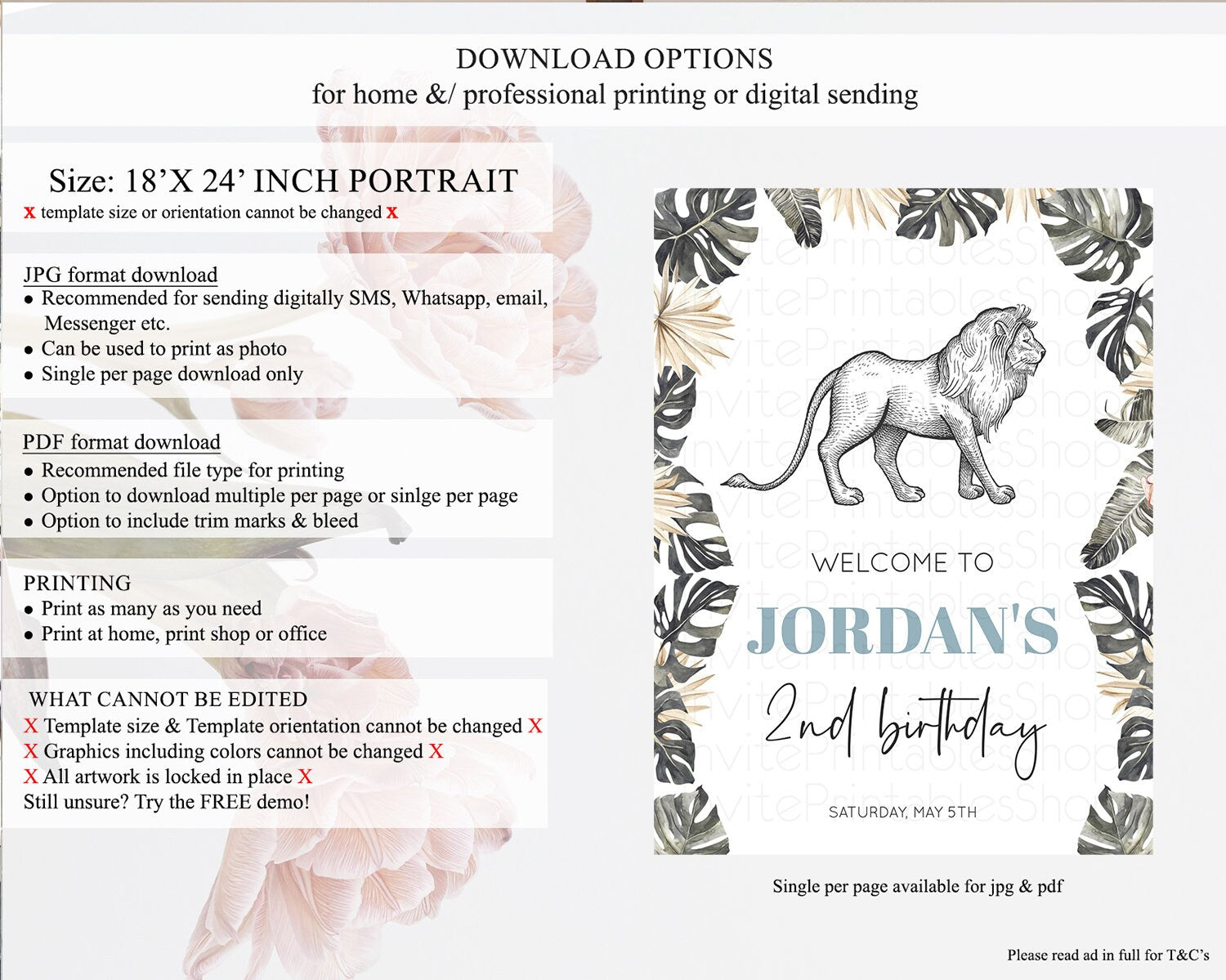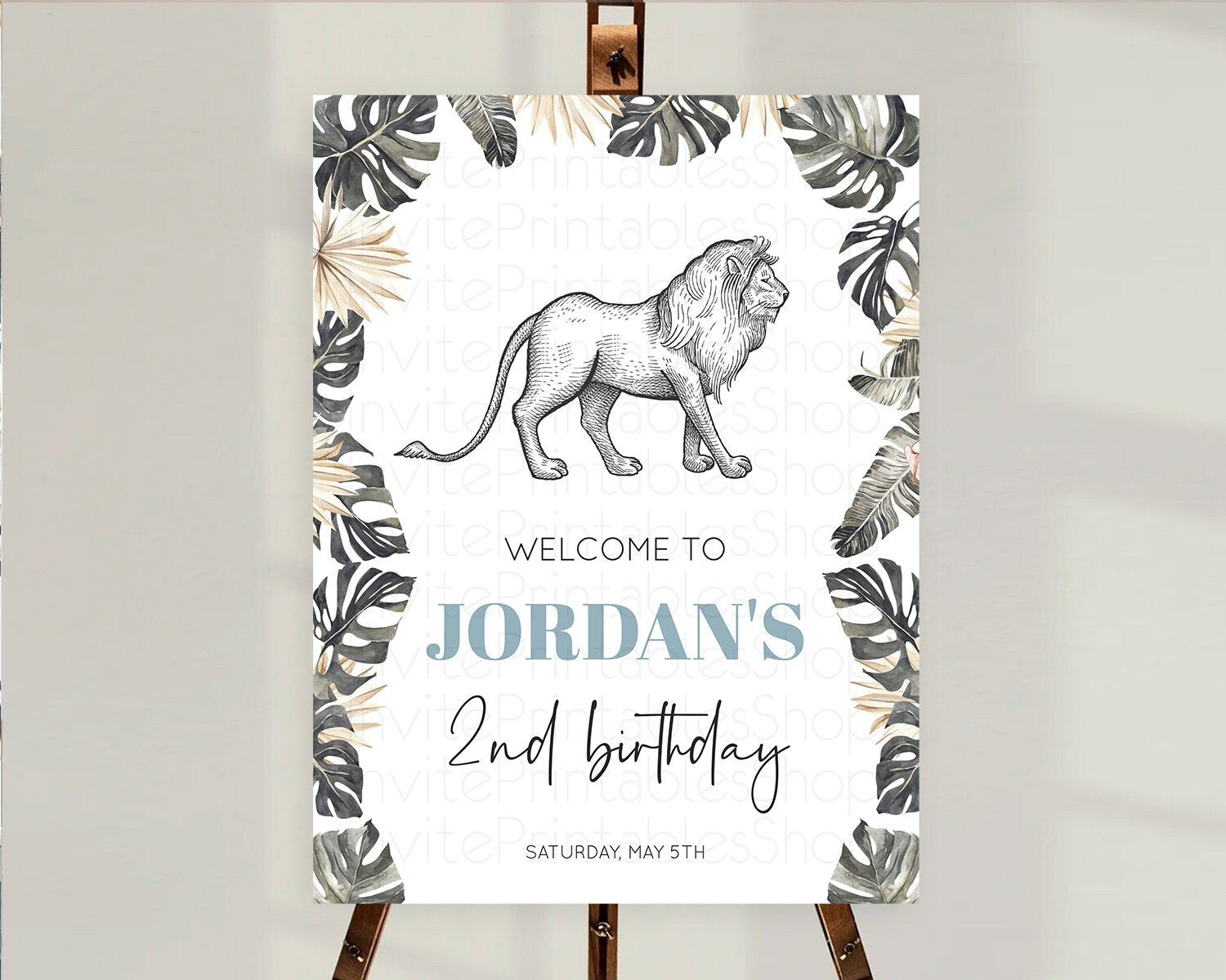 Lion Welcome Sign Lion Welcome Board Lion Party Welcome Poster Dried Palm Fern Safari Party Decor Lion First Birthday Welcome Sign D10807