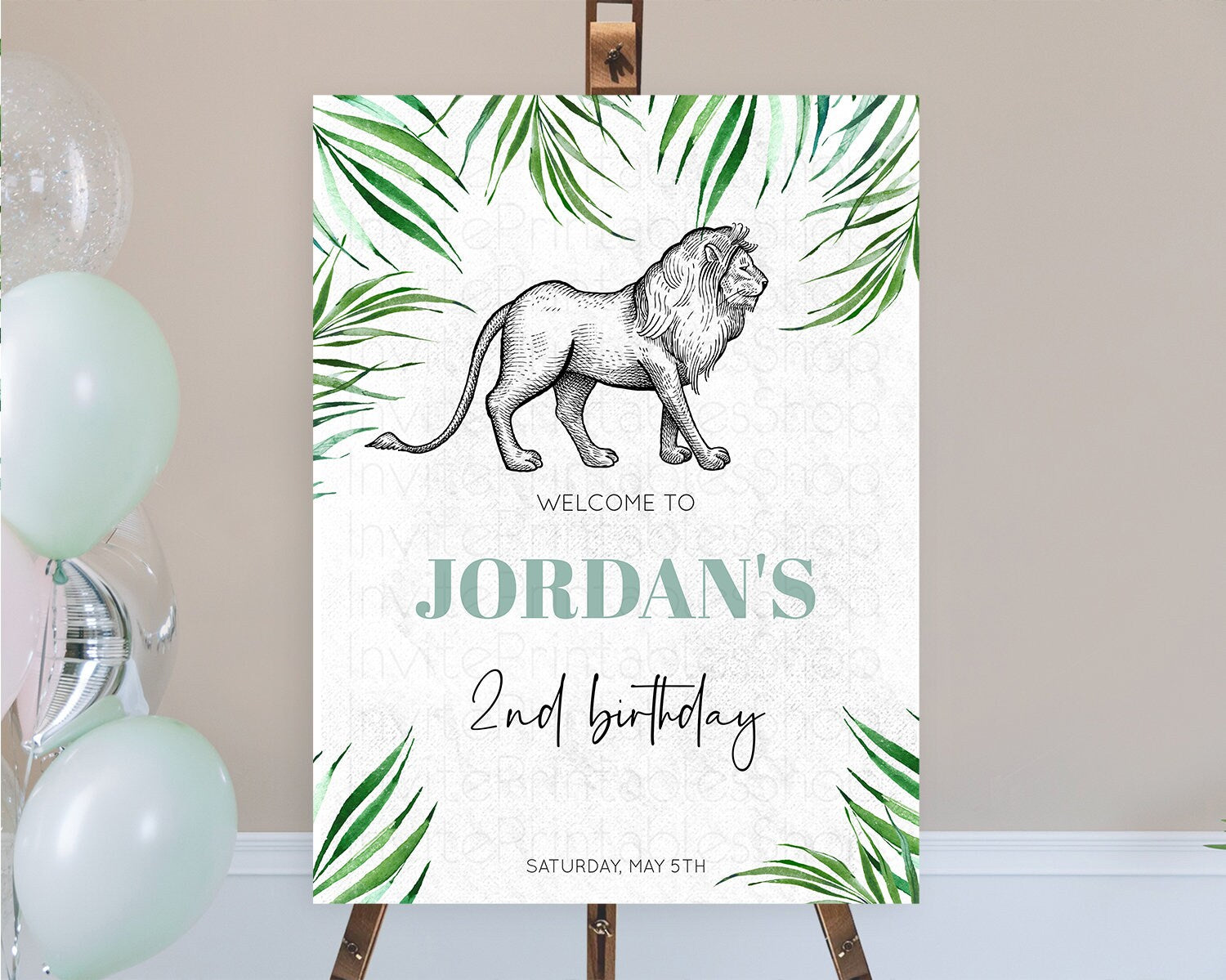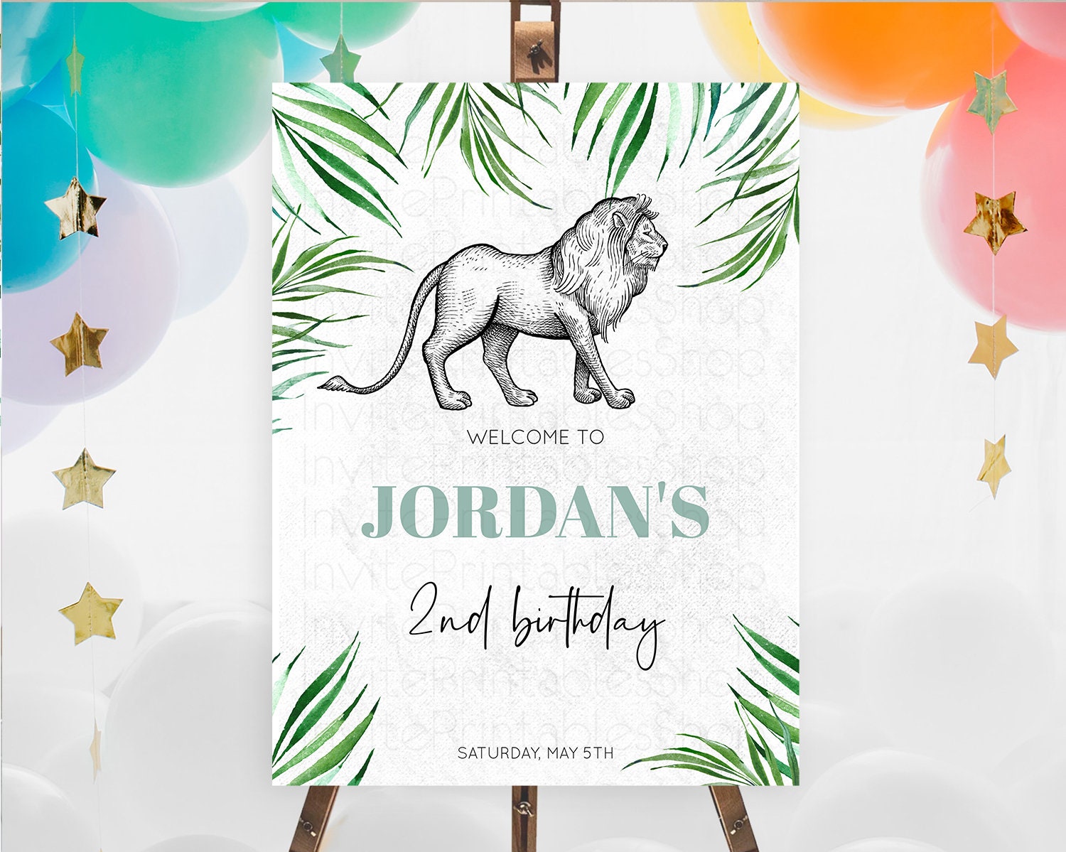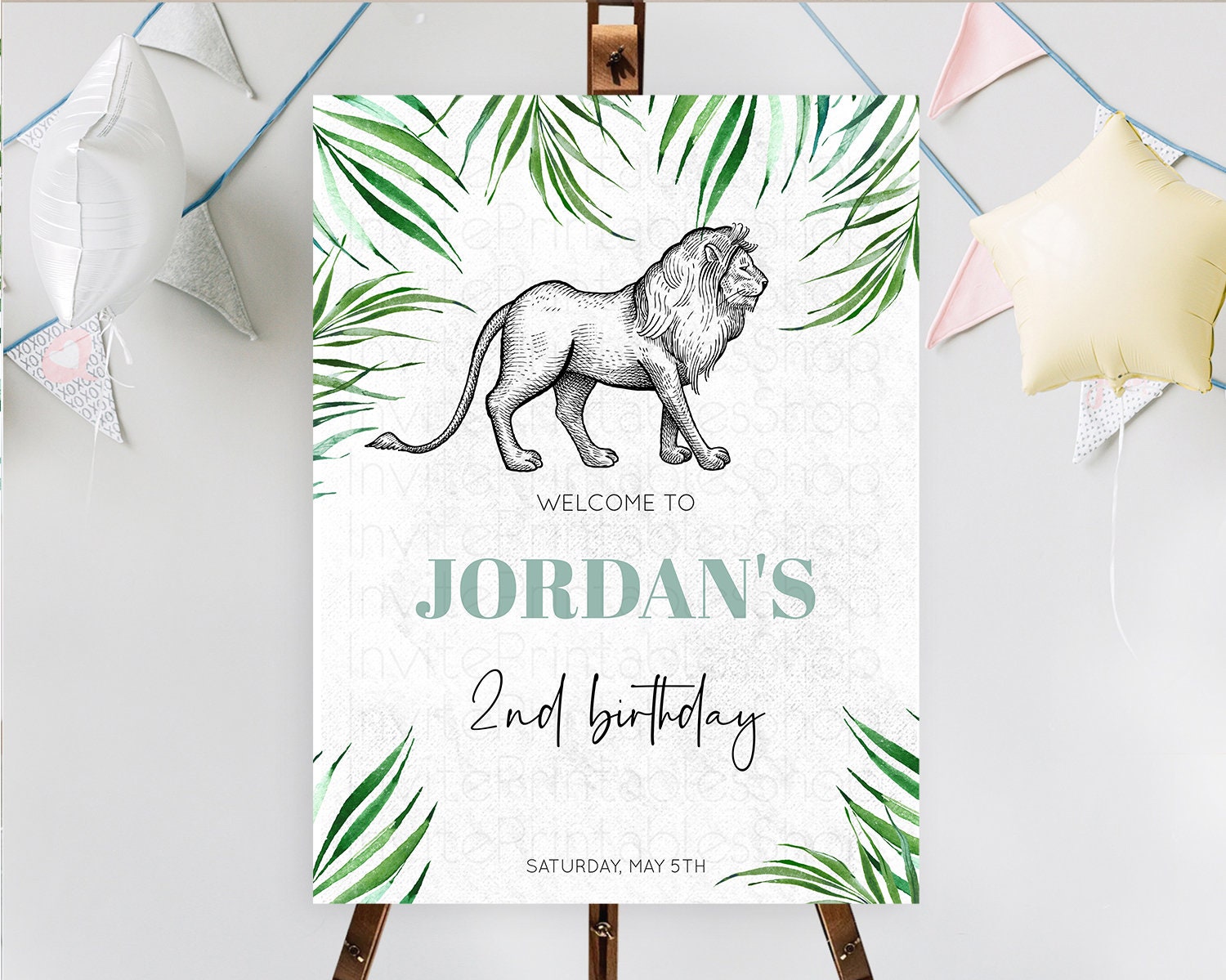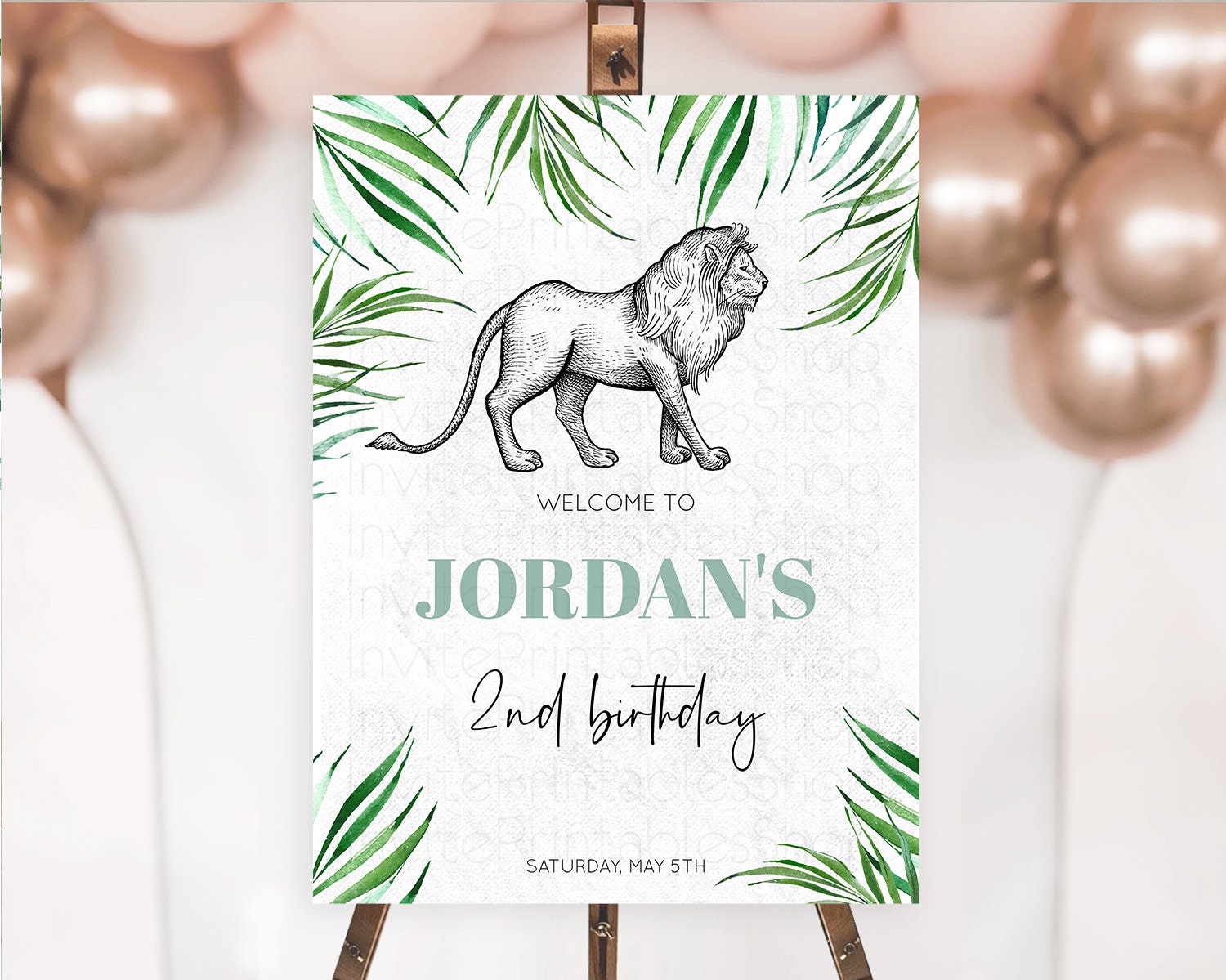 Lion Welcome Sign Lion Welcome Board Lion Party Welcome Poster Dried Palm Fern Safari Party Decor Lion First Birthday Welcome Sign D10845