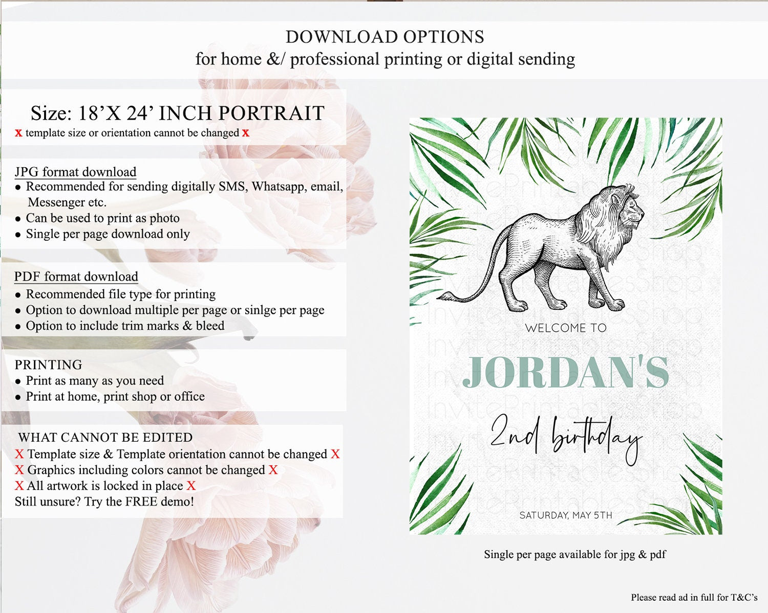• Template size & orientation cannot be changed. Please use the demo link to confirm this product suits your needs.