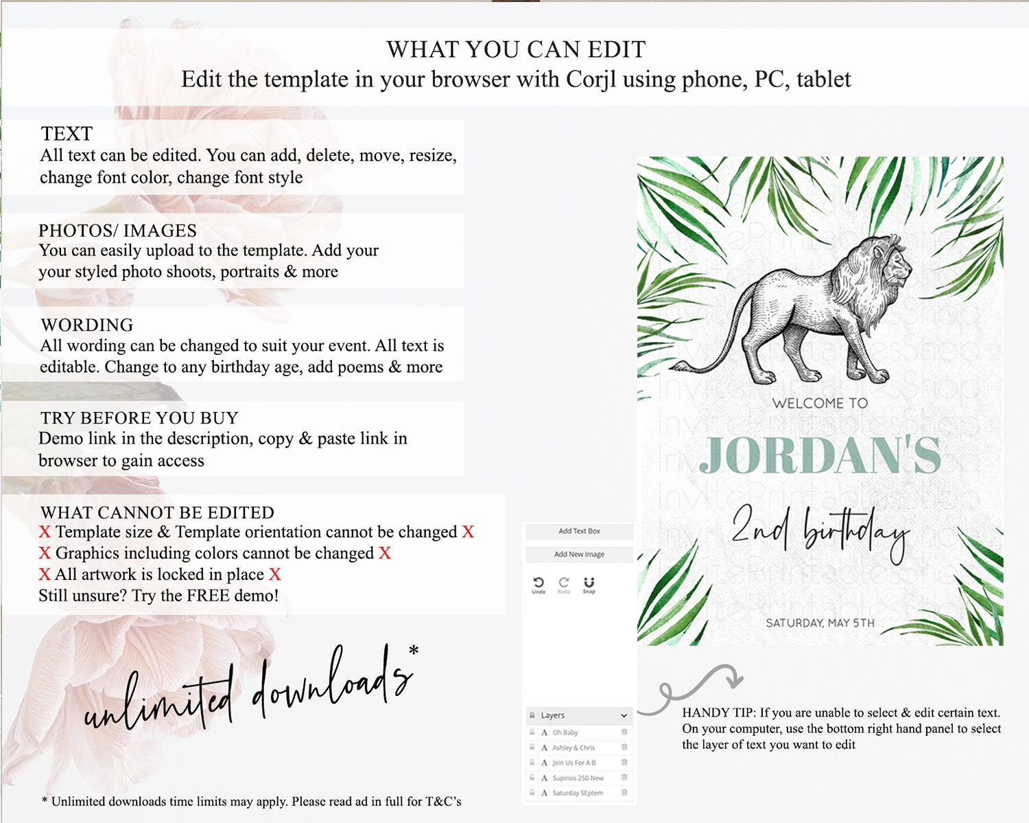 • After purchase, Corjl emails your editing link. Allow up to 15 minutes for delivery.