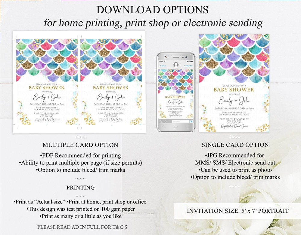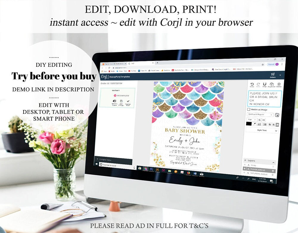 Mermaid Baby Shower Invitation Pastel Rainbow Baby Invite Under the Sea Invite Watercolor Baby Shower Invite Glitter Sprinkles Invite 575