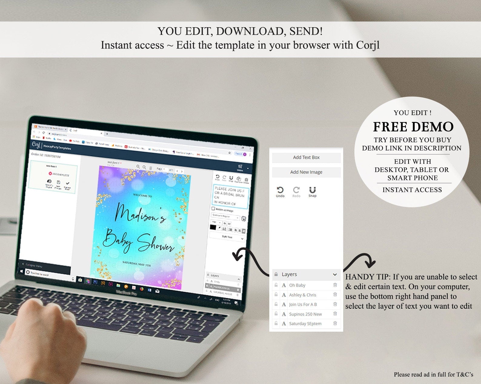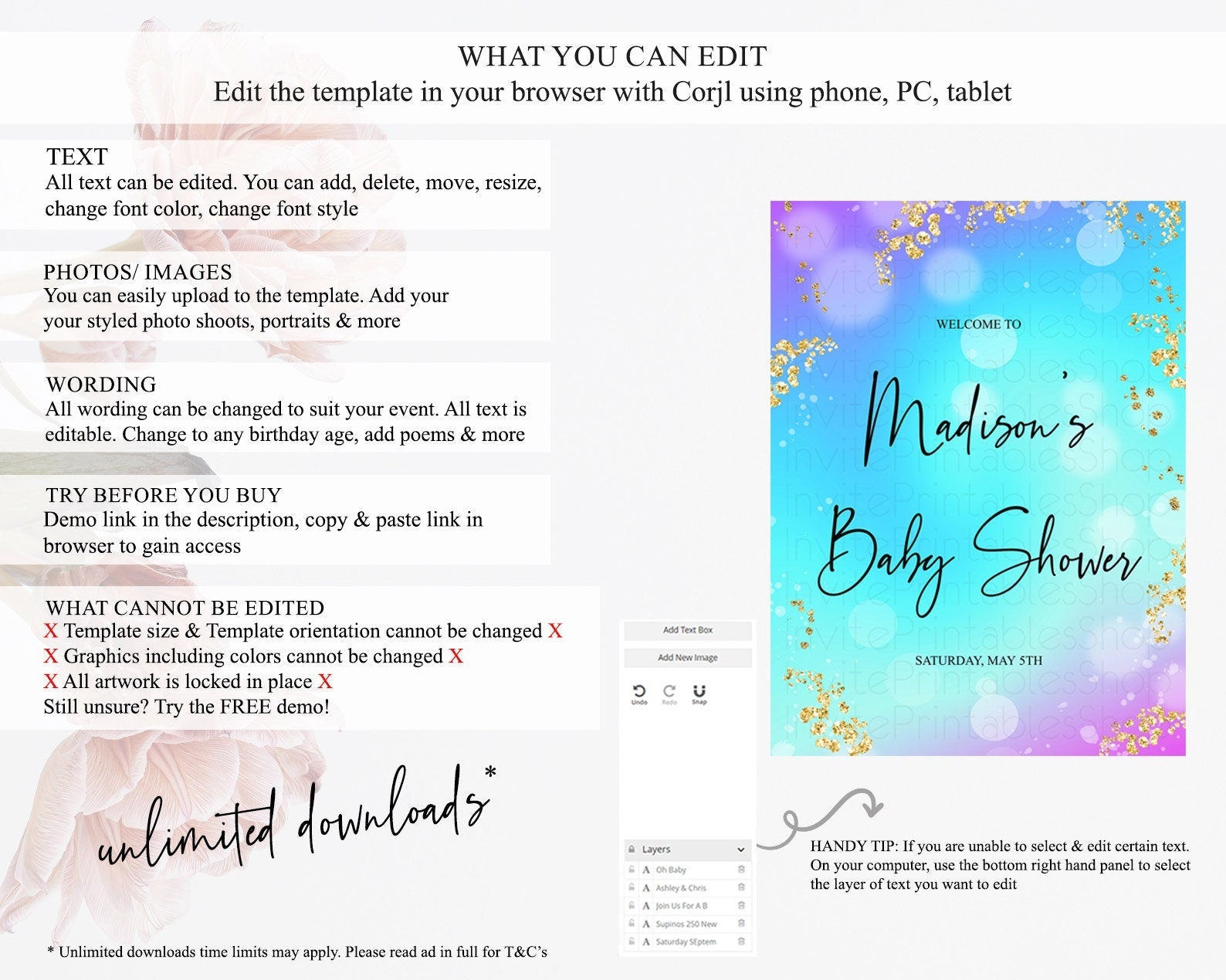 • After purchase, Corjl emails your editing link. Allow up to 15 minutes for delivery.