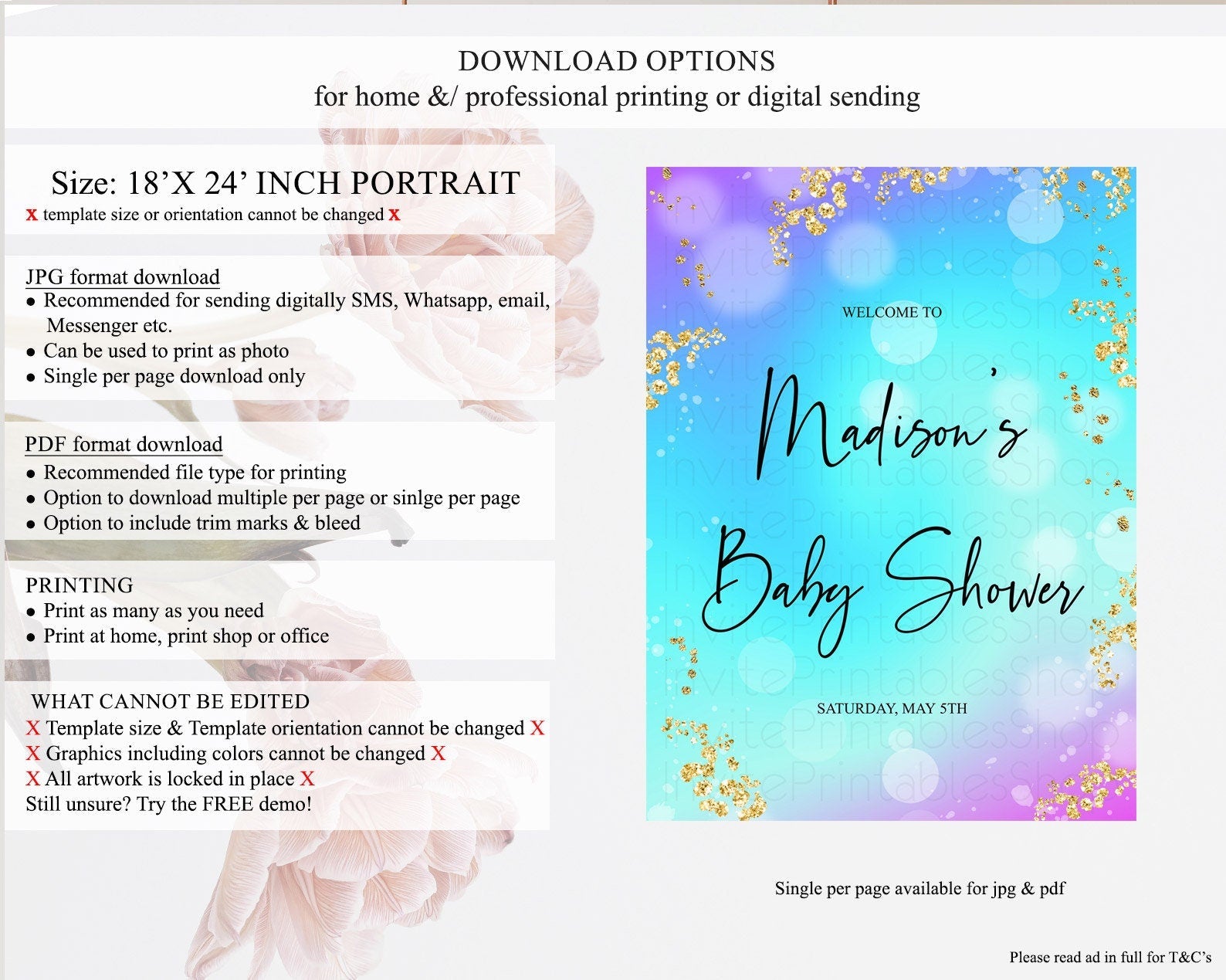 • Template size & orientation cannot be changed. Please use the demo link to confirm this product suits your needs.