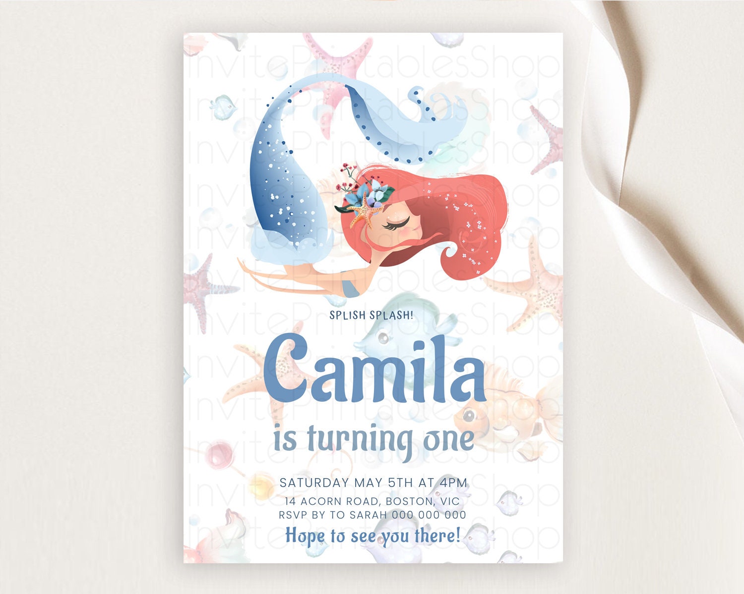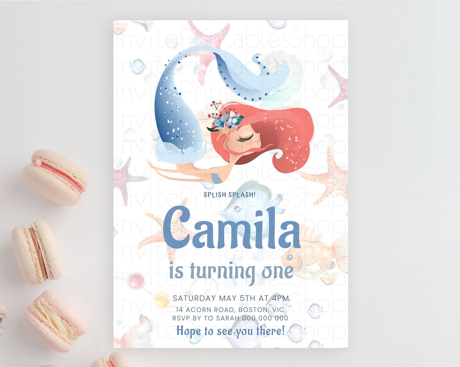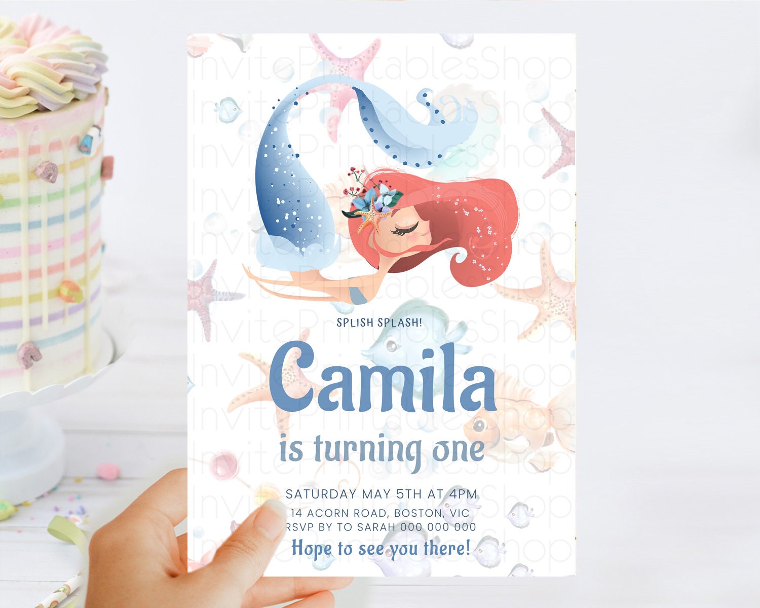 Mermaid Birthday Invitation Mermaid Invitation Rainbow Fish Under The Sea Colorful Pastel Mermaid Pool Party 2nd 1st First Birthday D10119