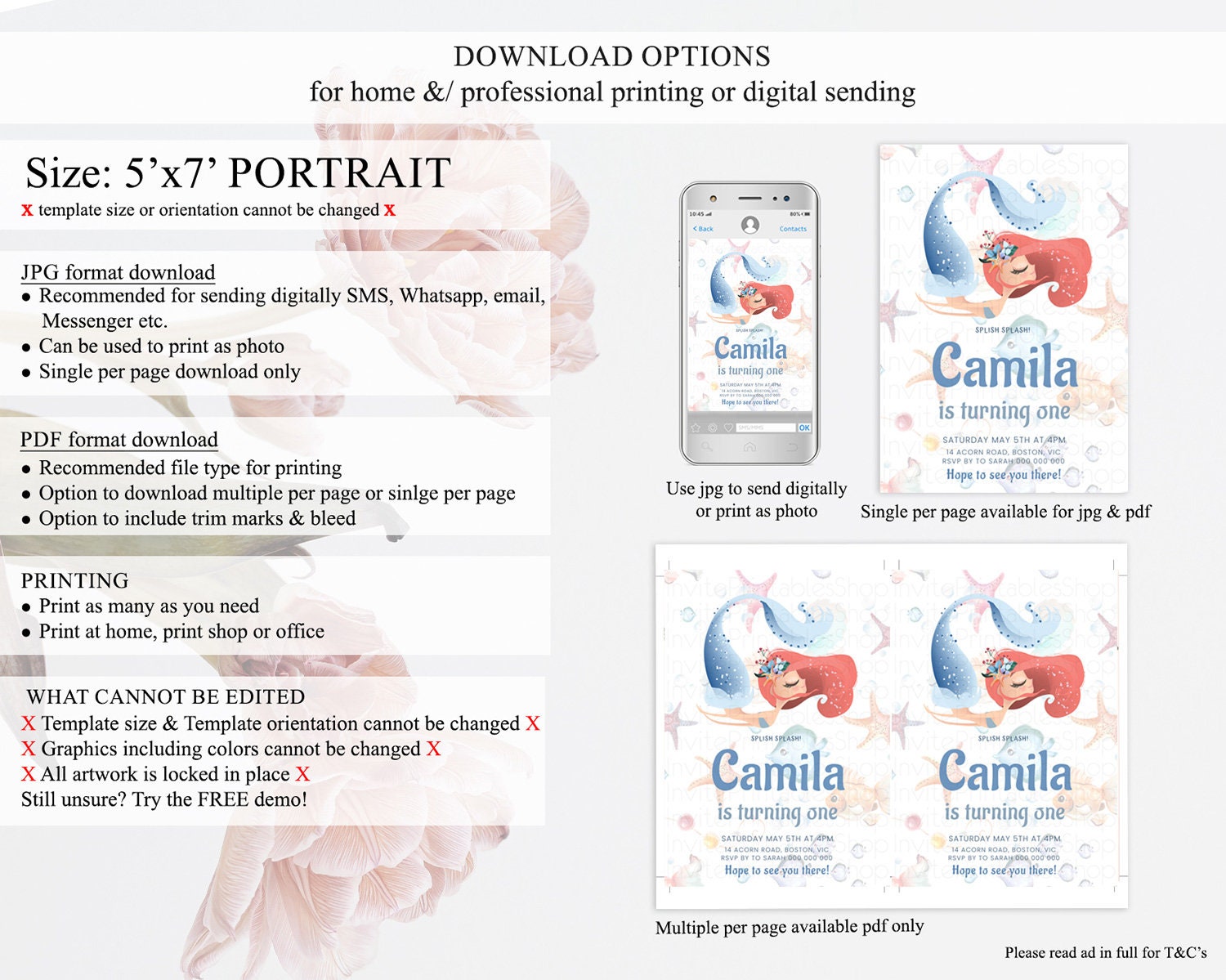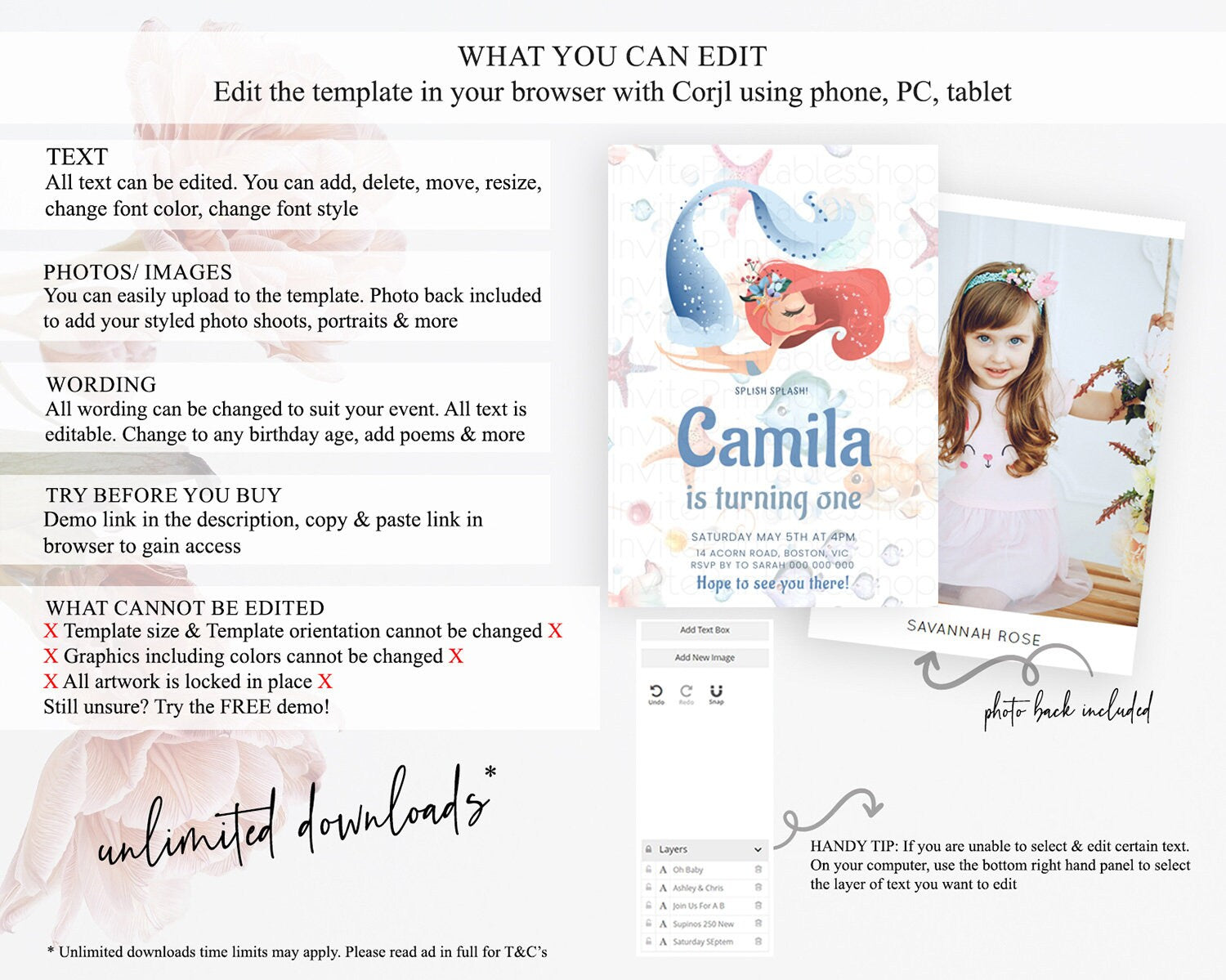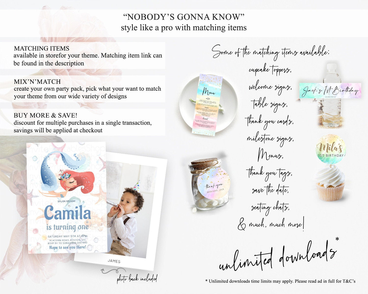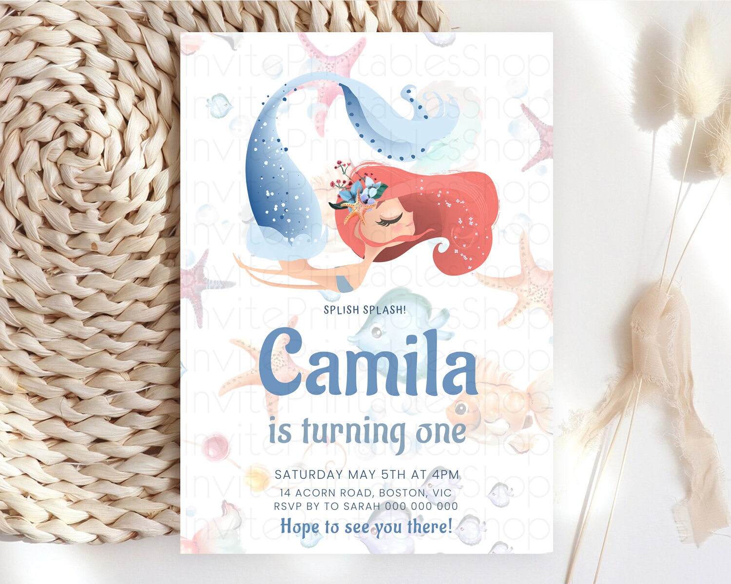 Mermaid Birthday Invitation Mermaid Invitation Rainbow Fish Under The Sea Colorful Pastel Mermaid Pool Party 2nd 1st First Birthday D10119