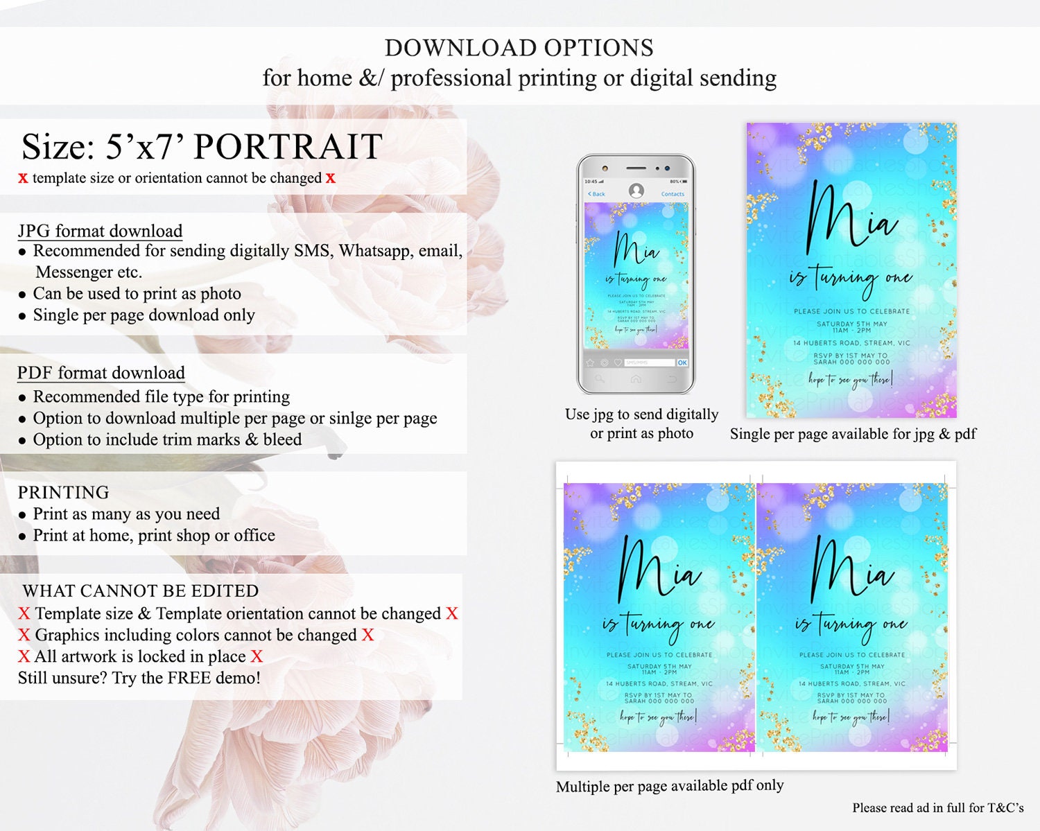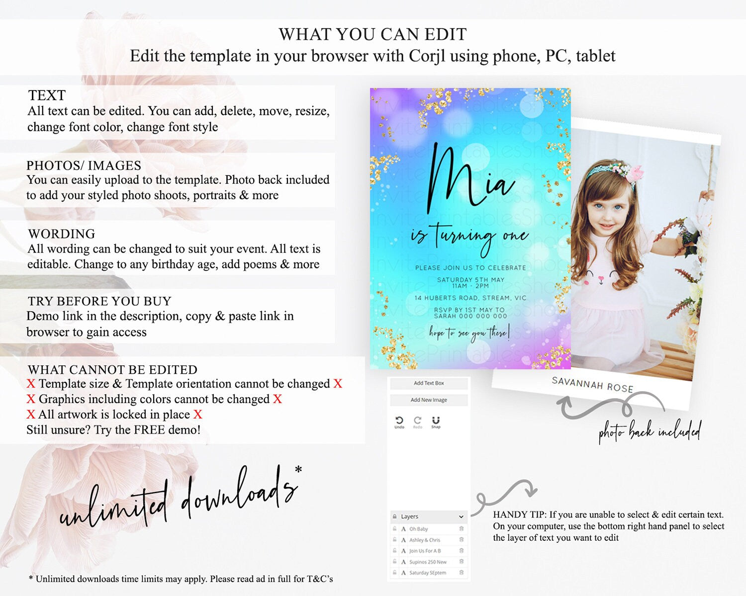 Mermaid Birthday Invitation Mermaid Invitation Rainbow Fish Under The Sea Colorful Pastel Mermaid Pool Party 2nd 1st First Birthday D10573